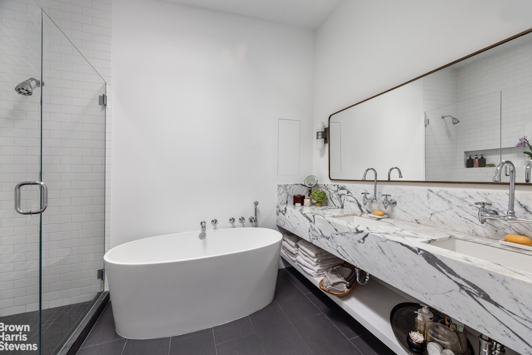 The top floor houses three, sun-drenched bedrooms and a luxuriously appointed bathroom. The WC is accessed separately from the hall for the household’s convenience. The owners have retained exclusive use of the finished basement. It is accessible from the main hallway stairwell and also has its own entrance from the street. It is a large, open rec-room, that could use used any number of ways. It is currently set up as a family room with an exercise area, and a large laundry/storage area. There are additional closets on this level as well. The garden floor is currently used as a 1BR rental. It was renovated, with a new kitchen and bath, in 2021. It is expected to be vacant as of December, 2025.