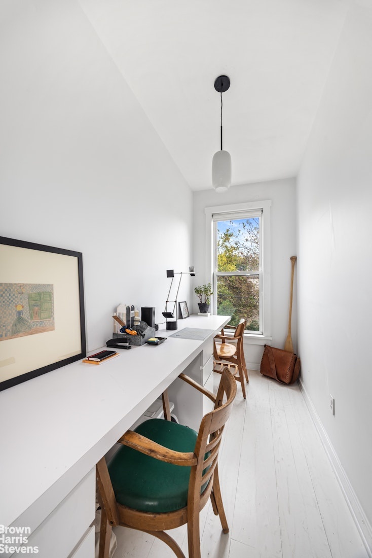 The parlor level is stunning, open, light and airy. It showcases a smart mix of modern design and restored original details. Custom millwork adorns one wall -- offering stylish storage galore. A divine layout, with room for two seating areas and a large dining area. The home’s open kitchen is on the parlor as well. It is expansive with top-of-the-line, stainless steel appliances. A row of rear windows lets the afternoon sun stream in. A wood burning fireplace on this level amps up its charms. There is also a powder room on this level.