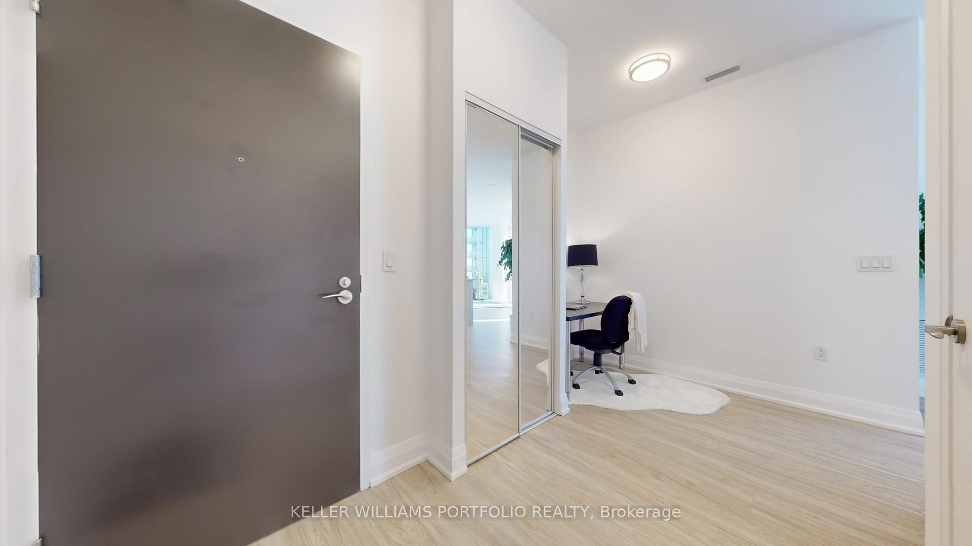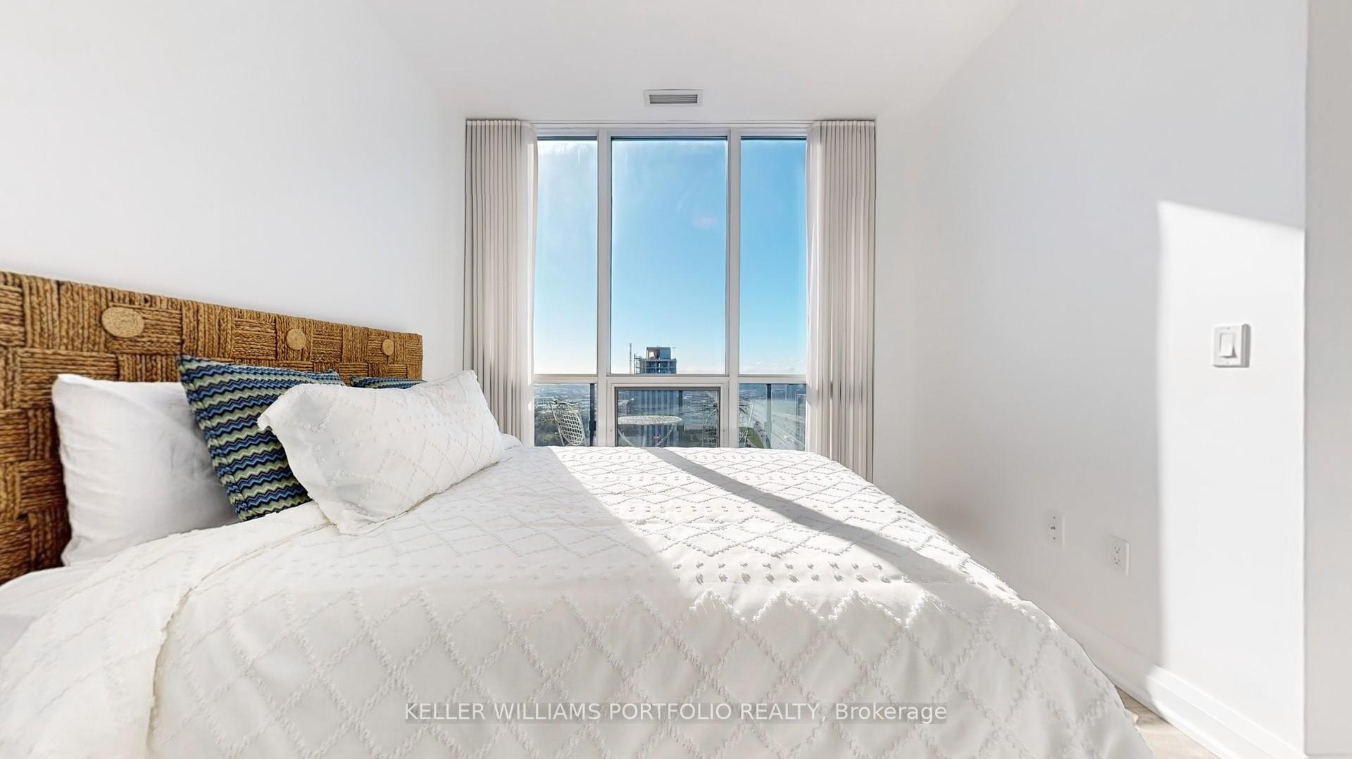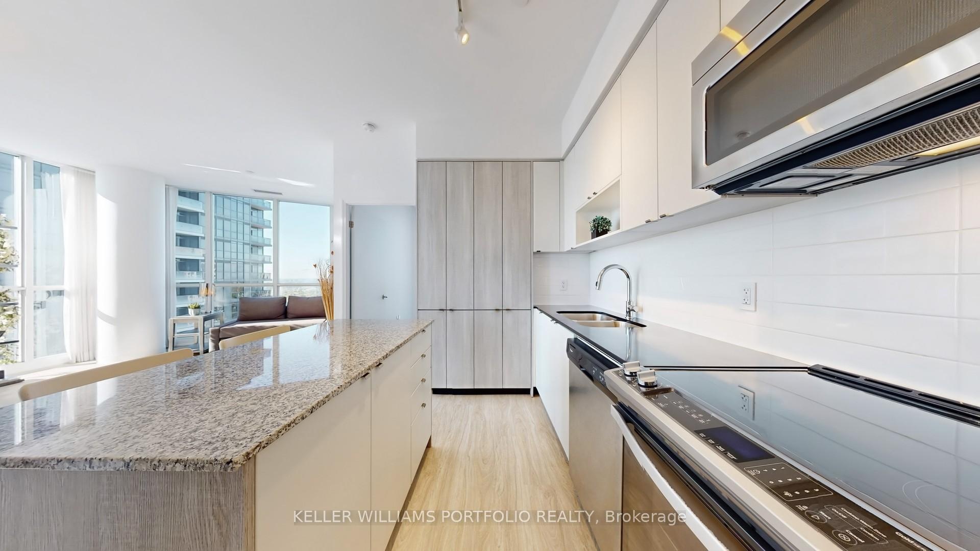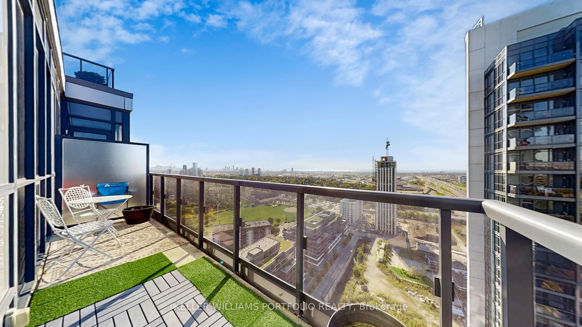 Bright & Modern 2-Bedroom + Study Corner Suite with Fully Upgraded Flooring! Welcome to this sun-filled 28th-floor corner suite at The Triumph at Valhalla, featuring 2 bedrooms, 2 bathrooms, and a separate study. Boasting 9-foot ceilings, floor-to-ceiling windows, and a functional 894 sq ft layout with a 75 sq ft balcony, this suite offers breathtaking south and west views that can't be beat. The split-bedroom design ensures privacy and comfort. The primary bedroom includes a spacious closet and a three-piece ensuite with glass shower, while the second bedroom is generously sized with large windows. The four-piece secondary bathroom features both a bathtub and shower. Luxury vinyl plank flooring flows seamlessly throughout, complementing the ensuite laundry and in-unit alarm system. The open-concept kitchen is a chefs delight, equipped with quartz countertops, stainless steel appliances, a large granite-top island, and abundant pantry storage, creating a sleek, functional space for cooking and entertaining. The living and dining areas are ideal for hosting guests, while the separate study offers a perfect work-from-home solution. Residents enjoy 24/7 concierge service and secure fob access, plus access to extensive amenities across the three-building community, including gyms, indoor pool, hot tub, saunas, party rooms, theatre, guest suites, and a large outdoor terrace with BBQs. Located with quick access to the 401, 427, Gardiner Expressway, Pearson Airport, Sherway Gardens, transit, and local parks, this move-in ready suite combines comfort, convenience, and a vibrant west-end urban lifestyle.
