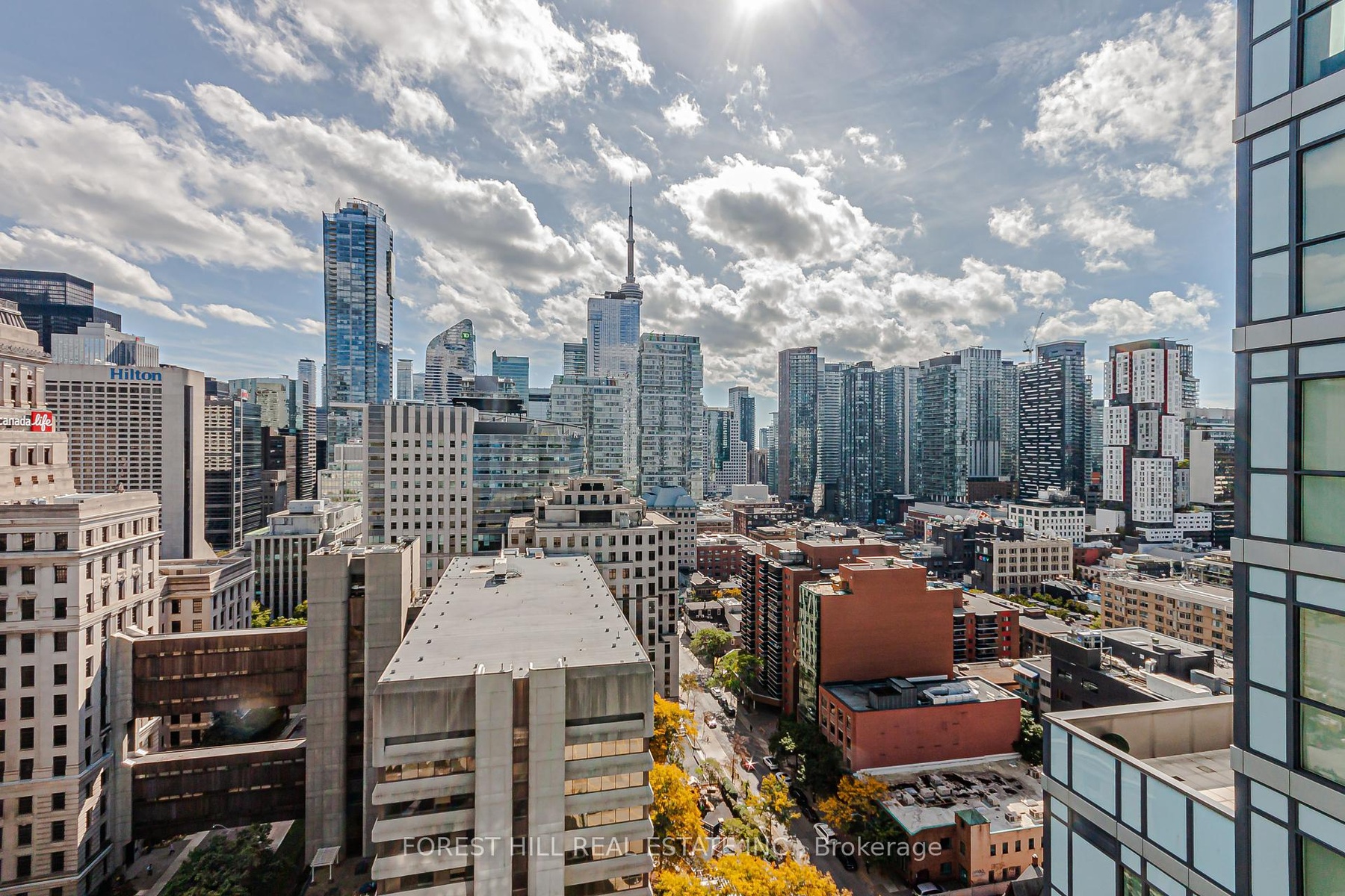 Spacious 1 Bedroom + Den suite with one of the best layouts in the building! Enjoy unobstructed south views from the 22nd floor overlooking the CN Tower and Toronto skyline. Bright, sun-filled living space with 9-ft ceilings, large balcony, and modern finishes.Buid-in closet in the den. Freshly updated and move-in ready. Parking & locker included. Steps to subway, U of T, TMU, AGO, hospitals, and top restaurants. Building amenities: terrace, gym, yoga studio, lounge & party room. Quiet area near U.S. Consulate with limited traffic. Without Parking $2500