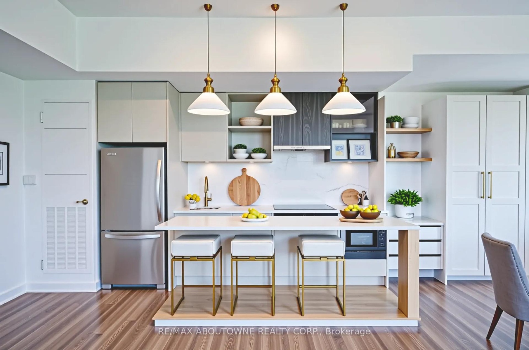 Welcome to this Stunning Corner Unit in North Oakville!Experience luxury living in this spacious 2-bedroom + den, 2-bathroom condo, ideally situated in a prestigious, family-friendly neighbourhood surrounded by lush ravine views. One of the largest suites in the building, this bright and airy home is beautifully appointed with high-end upgrades throughout.Step inside to discover a sun-filled open-concept layout featuring pot lights, floor-to-ceiling cabinetry, quartz countertops, and an island with a breakfast bar perfect for entertaining or enjoying peaceful mornings at home.Enjoy a lifestyle that extends beyond your suite. Residents have access to resort-inspired amenities including a 24-hour concierge, modern fitness centre, rooftop terrace with BBQs and panoramic views, and even a pet spa for your furry companion. Additional conveniences include secure bike storage, visitor parking, and meticulously maintained common areas that feel more like a boutique hotel than a condominium.Located just steps from Fortinos, Starbucks, top-rated restaurants, community centres, and nature trails like 16 Mile Creek, this home offers the perfect balance of urban convenience and natural beauty. Quick access to Highways 403 and 407 makes commuting effortless.Whether your are a young professional, first-time buyer, or looking to downsize in style, this turn-key residence delivers the perfect blend of luxury, comfort, and vibrant Oakville living.