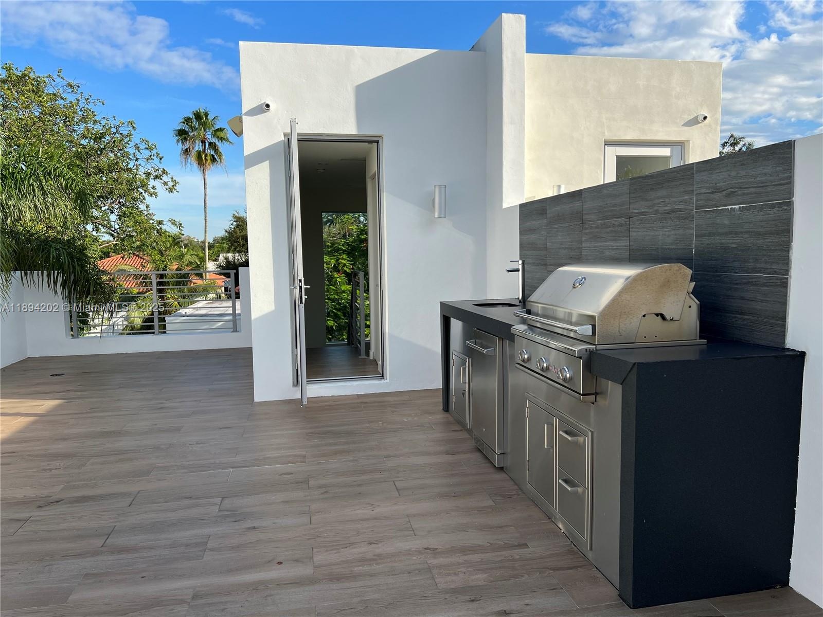 Luxurious Contemporary Living Coconut Grove Townhouse! High-grade designer finishes and open floor plan. This 3 bedroom, 3 bathrooms, 1 car garage and 2 guest spaces has ultra-modern fixtures and floor-to-ceiling impact glass. Beautiful terrace area with pool and lots of space. Private rooftop terrace with a high-end barbecue, wet bar, views of lush landscaping and tropical neighborhood. 2,300 Sq Ft plus Pool Area Terrace and a 950 Sq Ft Rooftop Terrace!