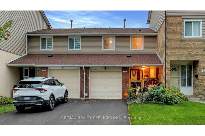 Welcome to 72 Carisbrooke Crt! This fully updated, move-in-ready home is a true must-see! Every inch has been thoughtfully designed for modern living, comfort & style. Step into a warm, welcoming entrance with elegant tile flooring leading to a hallway featuring a custom built-in bench with coat hooks & storage perfect for family life. The main level offers a desirable open-concept layout with neutral wide plank laminate flooring throughout, sun-filled living & dining areas with California shutters, & a stunning remodeled kitchen designed for entertaining. Enjoy custom 2-tone pine cabinetry, granite countertops, s/steel appliances, backsplash, under-cabinet lighting, pantry, & charming beadboard ceilings. A convenient 2-piece washroom completes this level. Upstairs, discover 3 spacious bedrooms with beautiful bamboo flooring, upgraded light fixtures, & large closets offering plenty of storage. The spa-inspired bathroom is the perfect retreat with a luxurious jetted soaker tub & a separate stand-up shower. The finished basement adds versatile living space, ideal for a family room, gym, or home office. It also features a separate laundry room with stacked washer & dryer & a laundry tub for added convenience. Outdoors, enjoy beautifully landscaped front & back yards designed for year-round enjoyment. The backyard features a large deck, a covered area for outdoor cooking, a built-in live-edge bar, gas hook-up for your BBQ, & 5 additional electrical outlets surrounding the deck perfect for hosting, entertaining, or simply relaxing in your private oasis. This home also includes a 1-car garage & a long driveway. Located in a well-managed, updated complex with new asphalt & great amenities including an outdoor pool, party/meeting room, & visitor parking. Maintenance fees include internet, cable, water, exterior maintenance & building insurance for truly worry-free living! Close to parks, schools, shopping & transit. Dont miss your chance to call this gem home! See Tour!