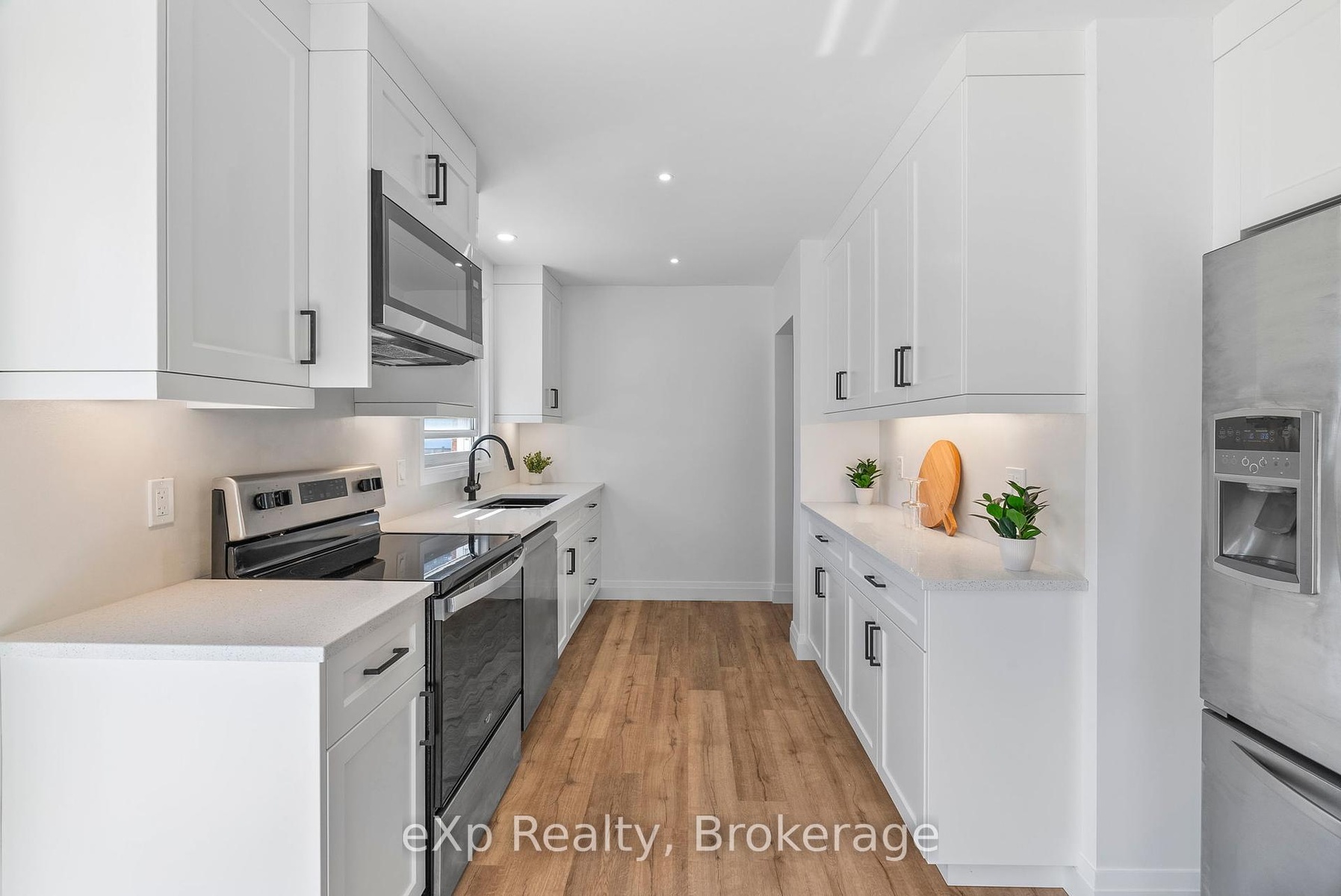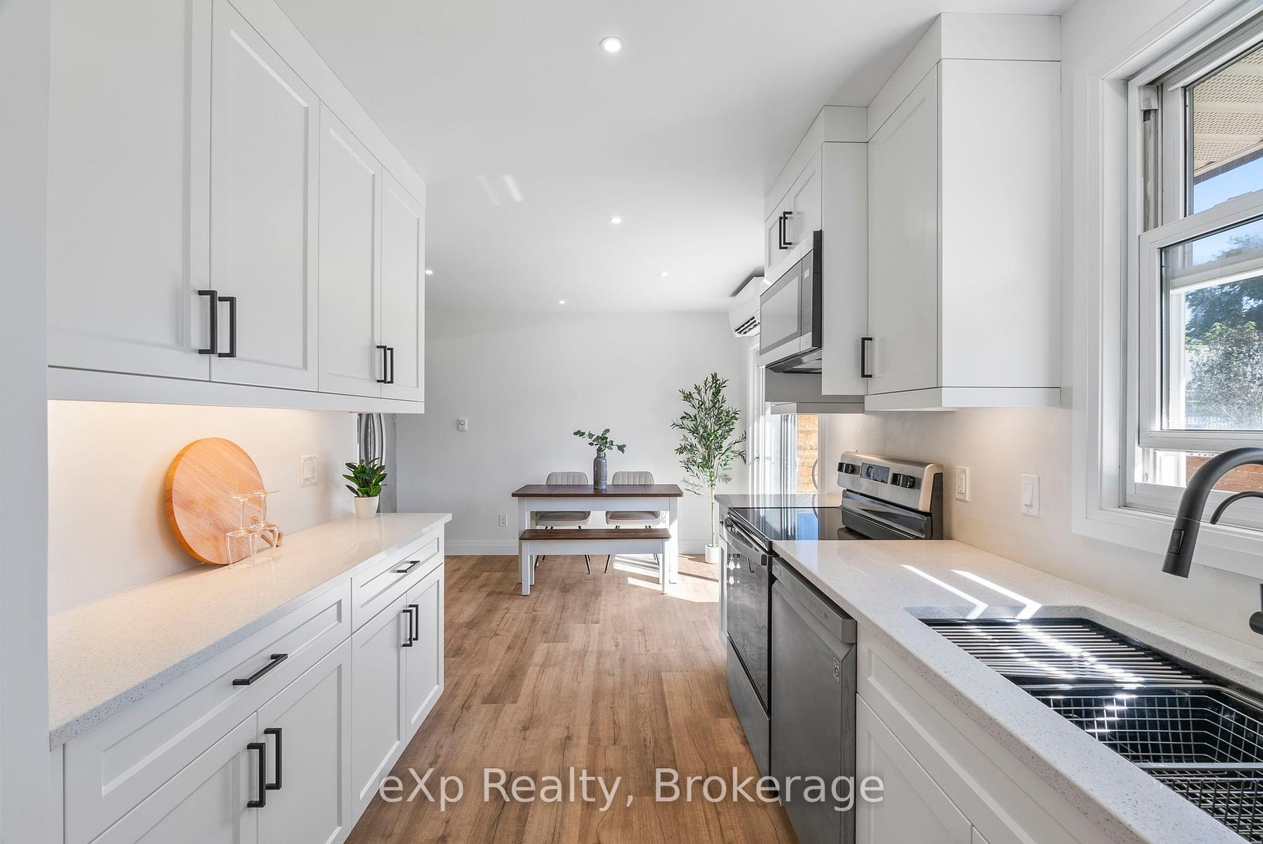 This stunning, fully renovated, 3+1 Bedroom bungalow offers the perfect blend of modern design and functional living. This home is ideal for families, downsizers, or anyone seeking a turnkey property! From the moment you arrive, you'll appreciate the clean curb appeal and welcoming entry. Step inside to a bright and airy main floor, where large windows fill the space with natural light. The living area features a striking modern shiplap fireplace, creating a cozy yet contemporary focal point for the space. The brand new kitchen is sure to impress, boasting quartz countertops, sleek cabinetry, and plenty of counter space and storage for everyday living and entertaining. Gracefully enter and exit onto the massive, new, back deck through the sliding doors off the Dining area. Downstairs, the fully finished basement has been thoughtfully redesigned and opened up to create a large, versatile living area. Thanks to oversized windows, the lower level feels bright and inviting perfect for a family room, media space, home office, or guest suite. Enjoy the convenience of an attached garage with direct access into the home ideal for bringing in groceries or avoiding the weather. Every detail in this home has been updated with care, including electrical, plumbing, flooring, lighting, trim, paint, Bathrooms, Kitchen, 3 exterior doors, garage door, deck, landscaping and new Living Room window. Just move in and enjoy worry-free living in a beautifully refreshed home!