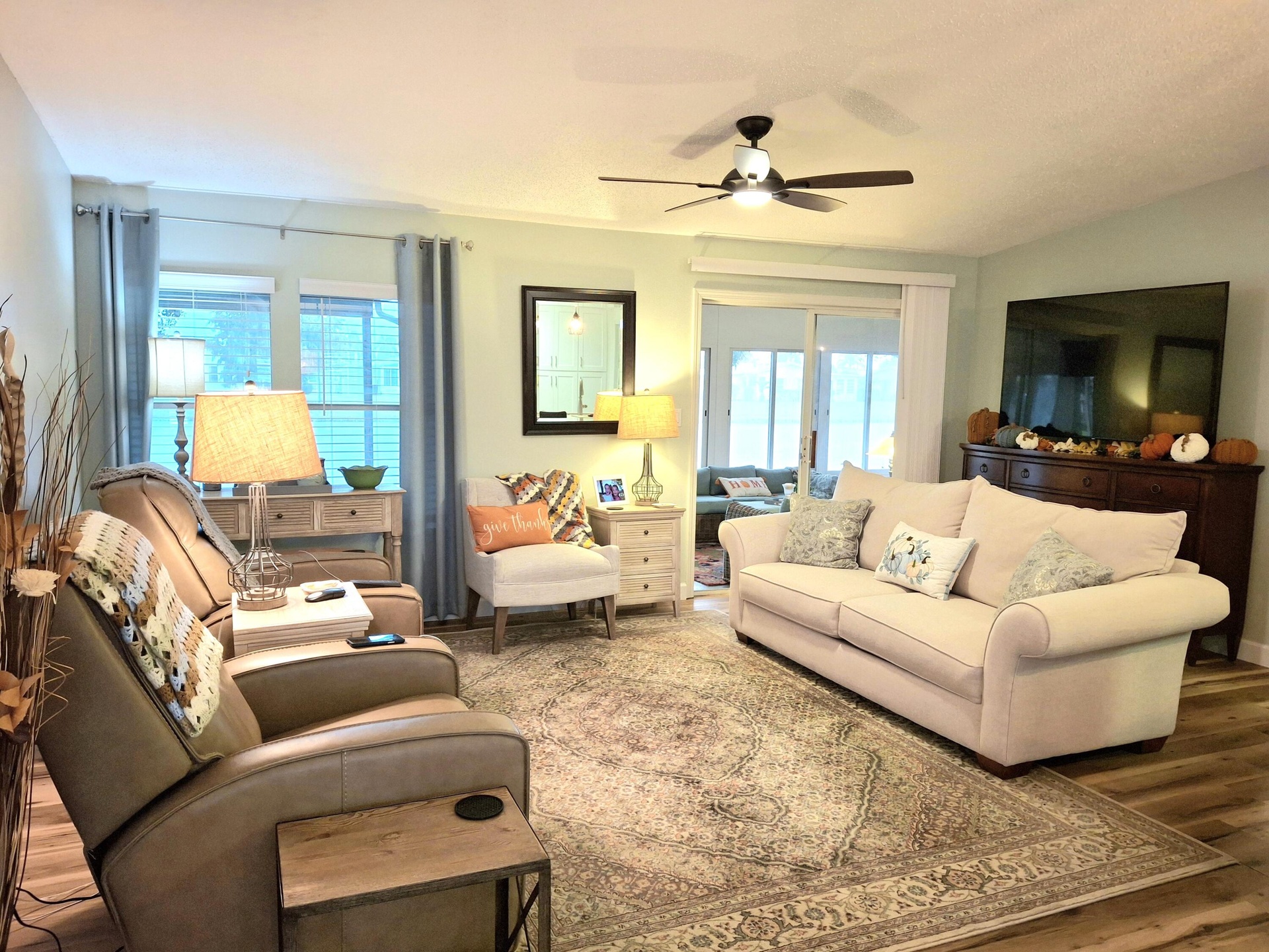 Immaculate water view garage home with two beds & two baths. 2021 Roof, LVP flooring, & kitchen remodel with quartz countertops. Refrigerator 2019, 2025 new dishwasher, WH, and disposal. New AC approx. 2020. Extra large lanai to soak up the view of the water. Partially remodeled baths with porcelain tile in the primary bath. This home won't disappoint! Shows just like the photos. HOA includes internet, trash, and cable plus access to all the amenities. Move right in and enjoy all that Savanna Club has to offer. 18-hole golf course, an on-site restaurant, on-site theater, 3 clubhouses, 3 exercise centers, pickleball, tennis, bocce, shuffle board, corn hole, and so much more. Numerous clubs and events are available to keep you as active. Hospital, doctors & beaches are all within minutes.