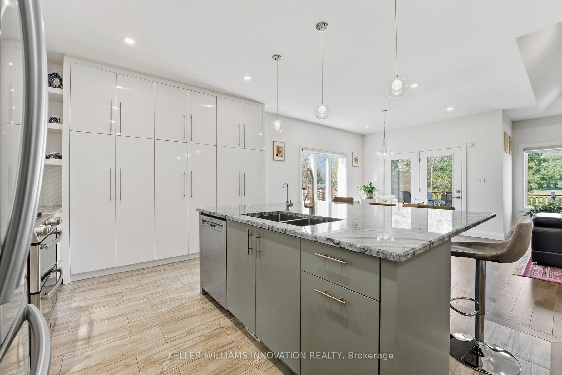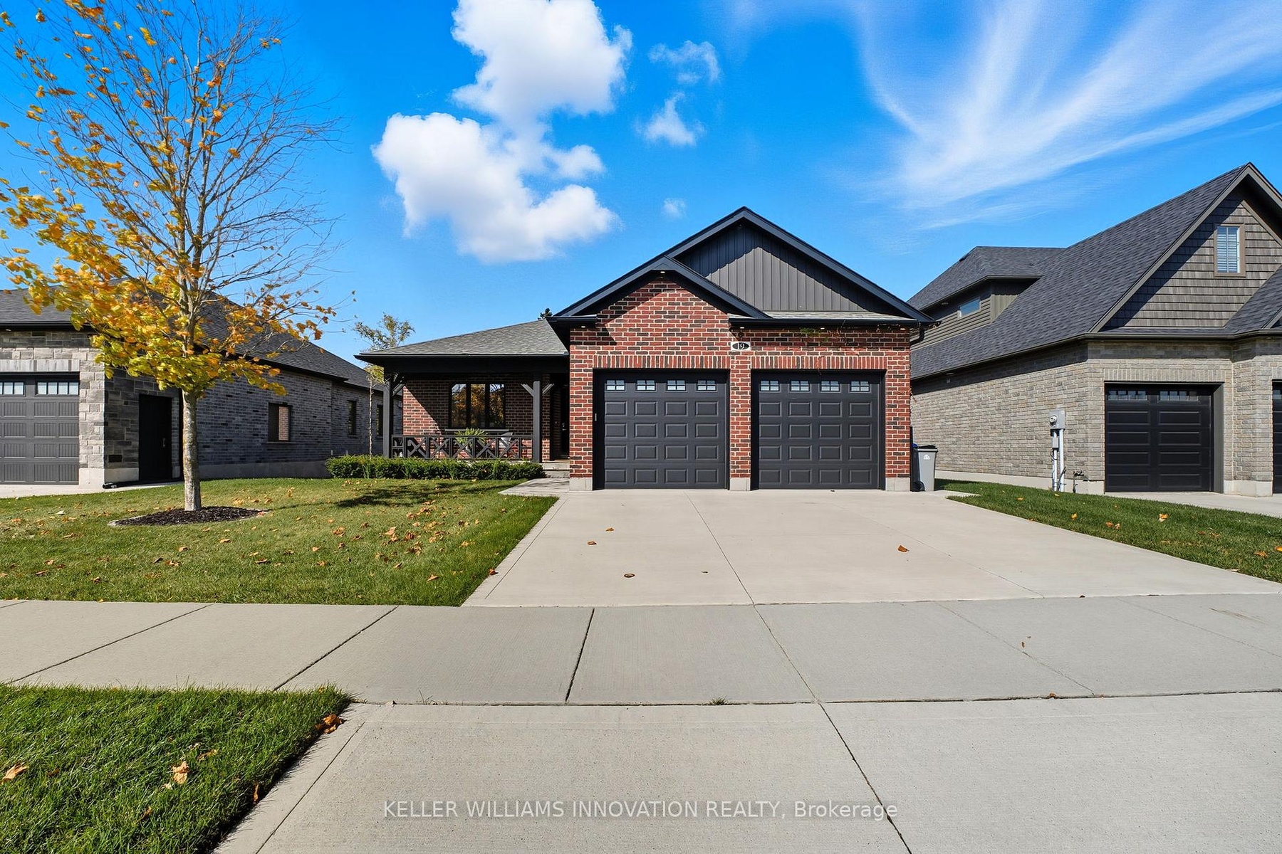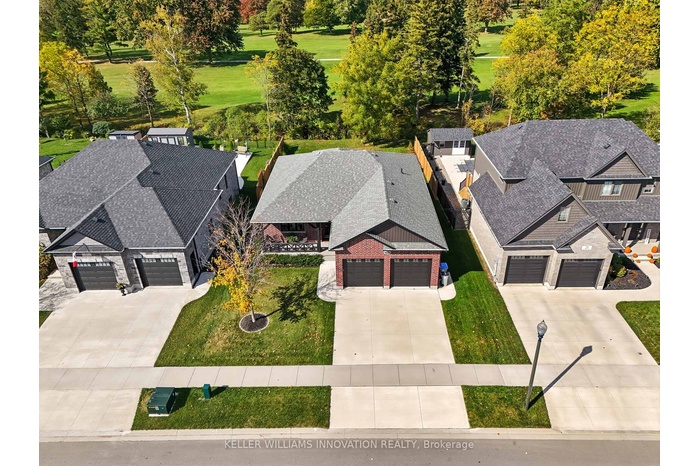 Welcome to 19 Gilmer Crescent, Listowel - Backing Onto the Golf Course! This beautifully maintained home, built in 2019, offers the perfect blend of modern design and everyday comfort all while enjoying scenic views of the golf course from your own backyard. Step out onto the stunning two-tier deck, complete with an awning, ideal for entertaining or relaxing in style. Inside, you'll find a bright and spacious main level featuring hardwood flooring, a tray ceiling in the living room, and a cozy gas fireplace. The modern kitchen is a showstopper with flat panel cabinets offering ample storage, granite countertops, a stylish backsplash, and an oversized island with seating for four. The primary bedroom includes a large walk-in closet and a spa-like ensuite bathroom with double sinks, abundant storage, floor-to-ceiling tile, and a walk-in shower. Main-floor laundry adds convenience to daily living. The fully finished basement offers even more living space, with a generous rec room, two additional bedrooms, a full bathroom, and oversized windows that let in plenty of natural light. Throughout the home, bright neutral walls and pot lights enhance the modern, airy feel. This home is complete with a charming front porch and a double car garage.
