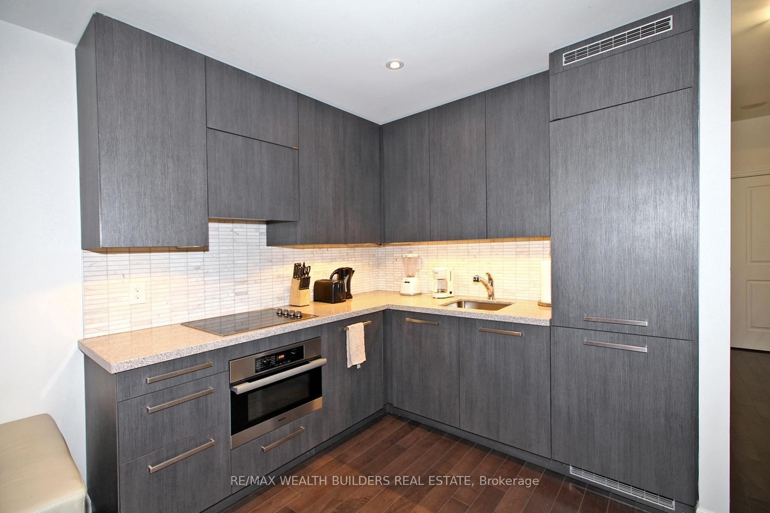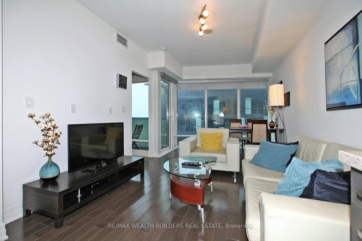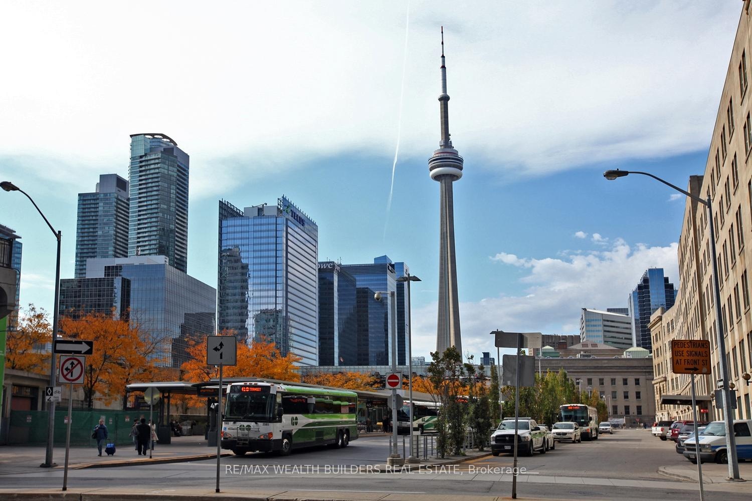 Move-in ready for December 1st! This beautifully upgraded 1-bedroom + den suite is perfectly situated in the heart of Torontos vibrant St. Lawrence Market, just steps from the Financial District, Union Station, and some of the citys most iconic landmarks, shops, and restaurants. The unit features rich hardwood flooring throughout, two luxurious full bathrooms, a spacious walk-in closet, and a large den with sliding doors that can easily function as a second bedroom or private office. Enjoy stunning city views along with the convenience of an included parking spot and locker. Tenant only pays hydro. Don't miss this incredible opportunity to live in one of Torontos most sought-after neighbourhoods.