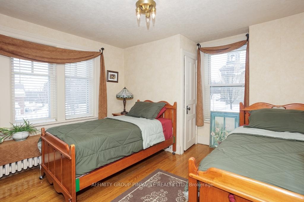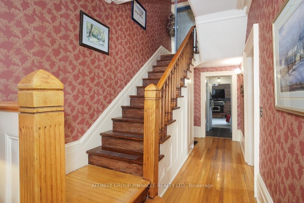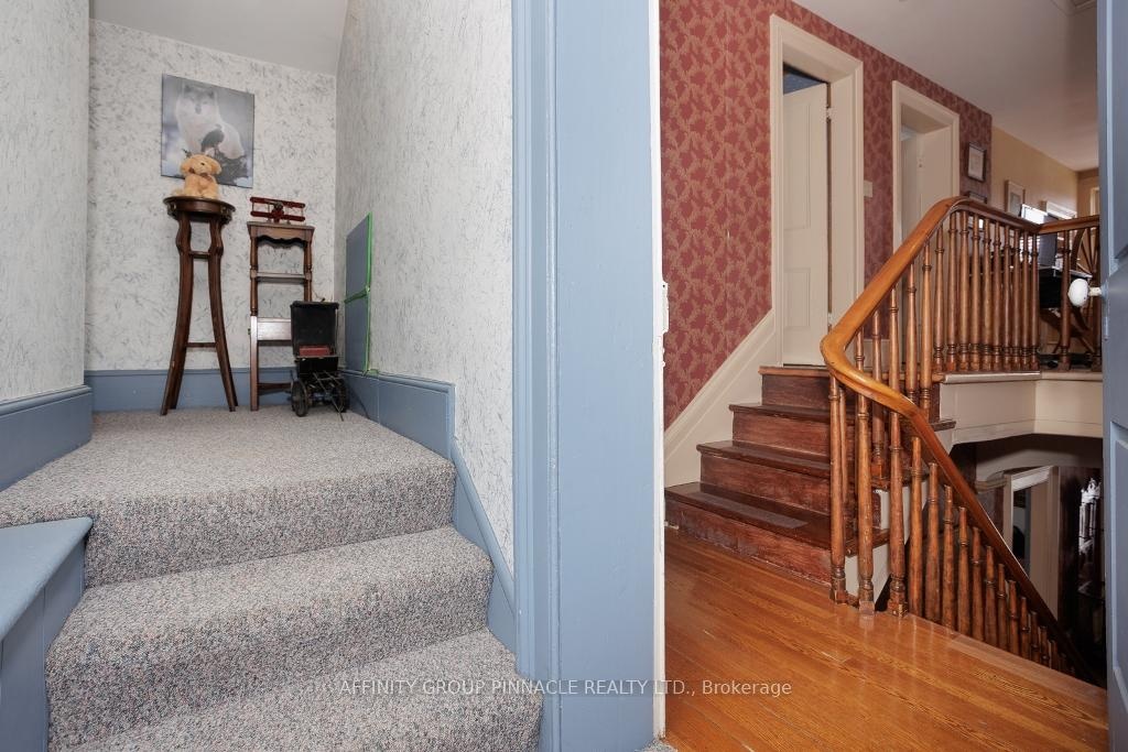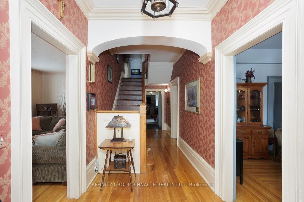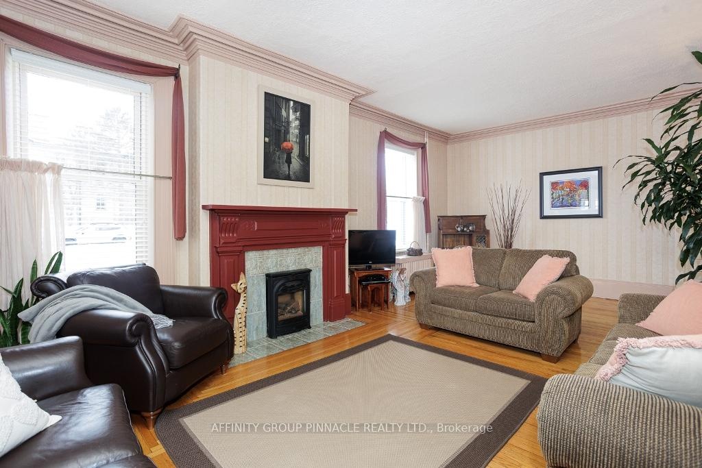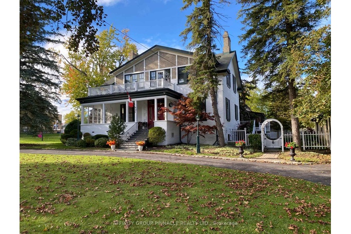 Welcome to 22 Francis Street, one of Lindsay/s most iconic and elegant residences. Built in 1856, this stately white brick home exudes timeless charm and sophisticated curb appeal, offering the ultimate in both luxury and comfort. Resting atop a generous corner lot in Lindsay's desirable North Ward, this historic property features 5 spacious bedrooms, 4 bathrooms, and wonderfully, grand living spaces with 11 ceilings. This home features one the most beautiful verandahs and as you enter the home into a gracious foyer and front hall that set the tone for the entire home. The sun-filled principal rooms include an exceptional living room with a cozy natural gas fireplace, a formal dining room with a stunning Victorian Era fireplace, ideal for entertaining. The kitchen conveniently adjoins the dining room and is connected to the rear of the home by a main floor laundry room & a bright sun/mudroom with access to the back deck and mature yard. An elegant grand staircase graces the front of the home, and a second staff/serving staircase at the rear which is a wonderful feature from a bygone era. The family room offers even more space to relax and includes access to a charming enclosed sunroom and private rear entrance complete with it's own driveway. Above the family room is a two-bedroom suite with private staircase, providing an in-law suite, guest quarters, or even income opportunity. Among the many additional features are:, Detached brick garage, large Circular driveway plus second driveway at west entrance, boiler furnace (2024), Wall-mounted A/C units for seasonal comfort, High basement ceilings and deep-set windows which are rare for a home of this era, Beautiful mature trees and a large, private yard and much more. The home is situated in the North Ward, directly beside historic City Hall, and just a short walk from Alexandra School, Ross Memorial Hospital, and downtown shops and amenities. Don't wait for your chance to own one of Lindsay's most distinctive homes.