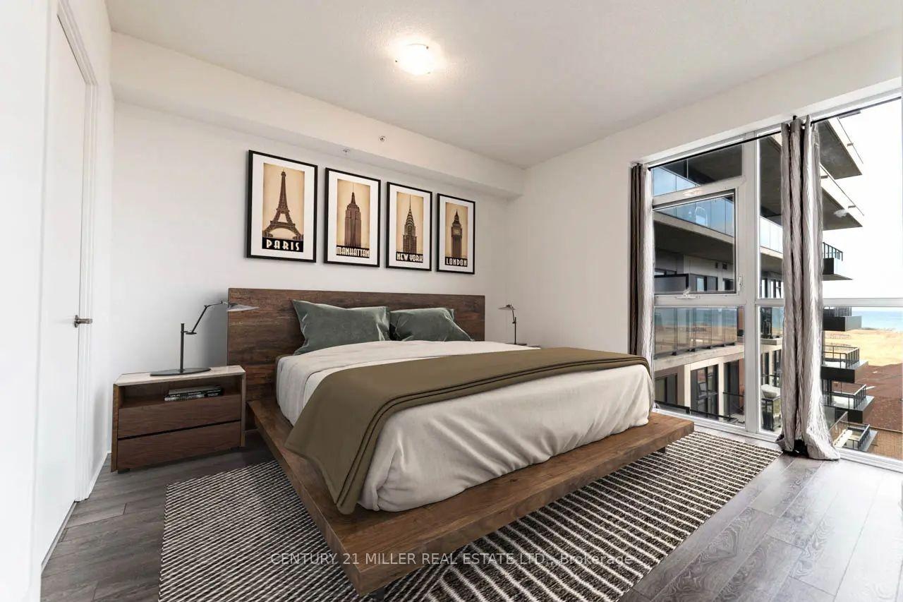 Welcome to the sought-after Waterview Condominiums, another exquisite project by LJM Developments. Take a stroll along the lakeshore, stop in at the Oliveboard Charcuterie and Wine Bar and one of the many other local amenities; it's a short walk from your new condo! Enjoy a twenty-foot wide balcony with space for a table and clear views of Lake Ontario with the towering skyscrapers and CN Tower in Toronto lining the horizon. Spacious is an understatement; this condo unit includes 1,001 square feet consisting of two bedrooms with water views, a den to work from home and a central living room with balcony access. Whether you want space for guests, family, friends, or to simply give you options, this is a perfect choice. This unit has been virtually staged for your viewing pleasure.