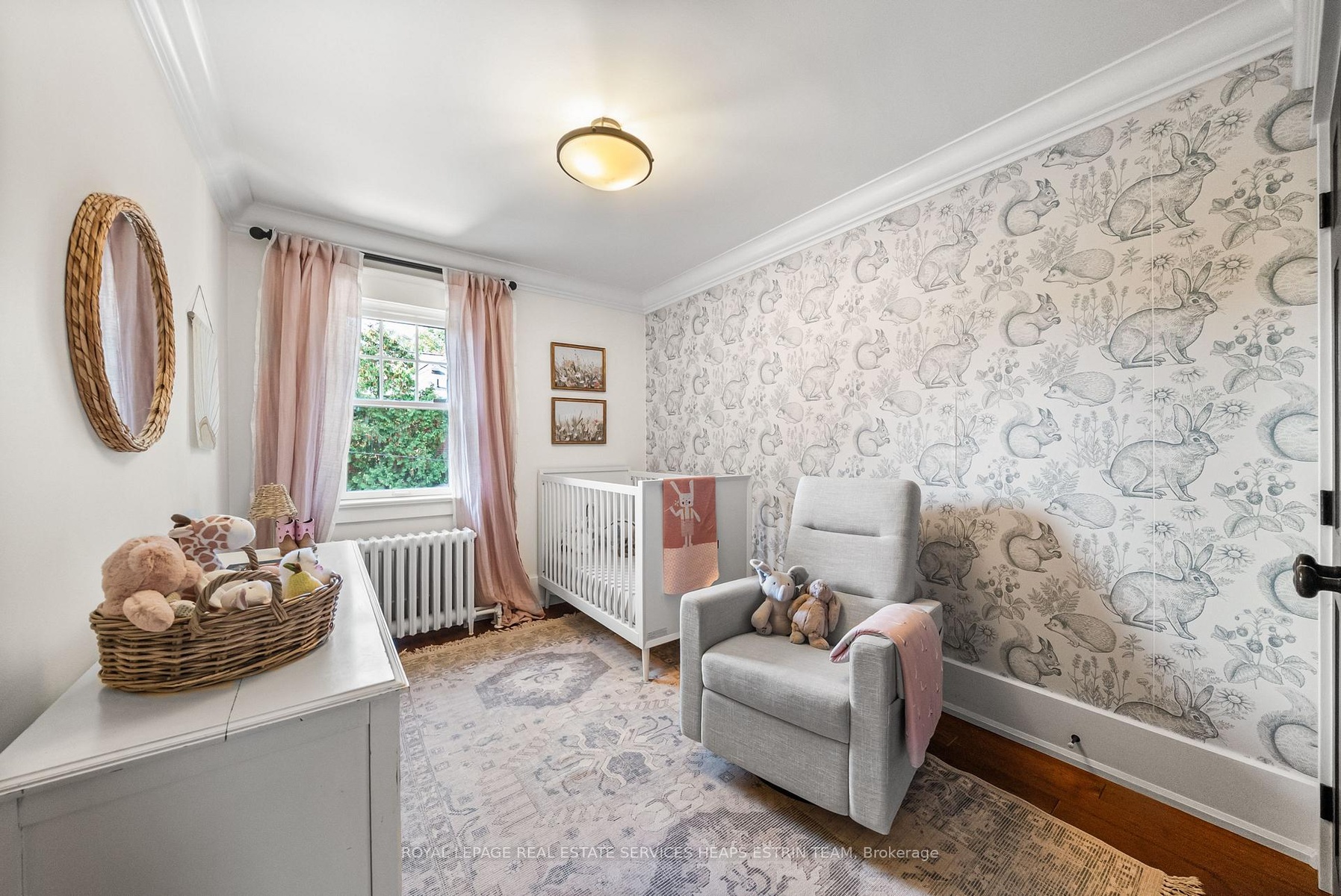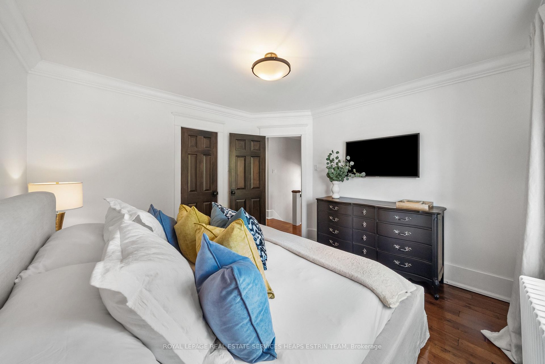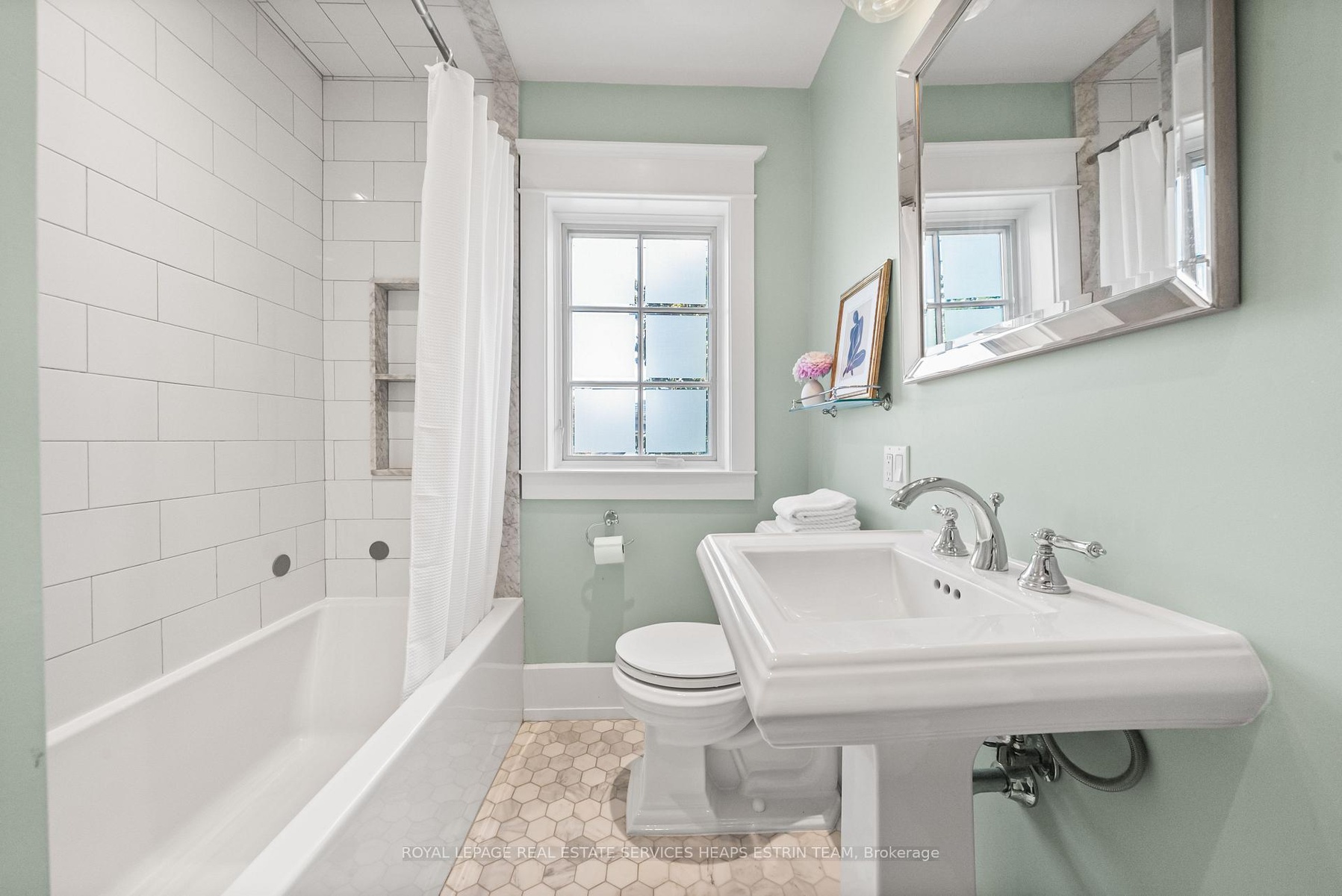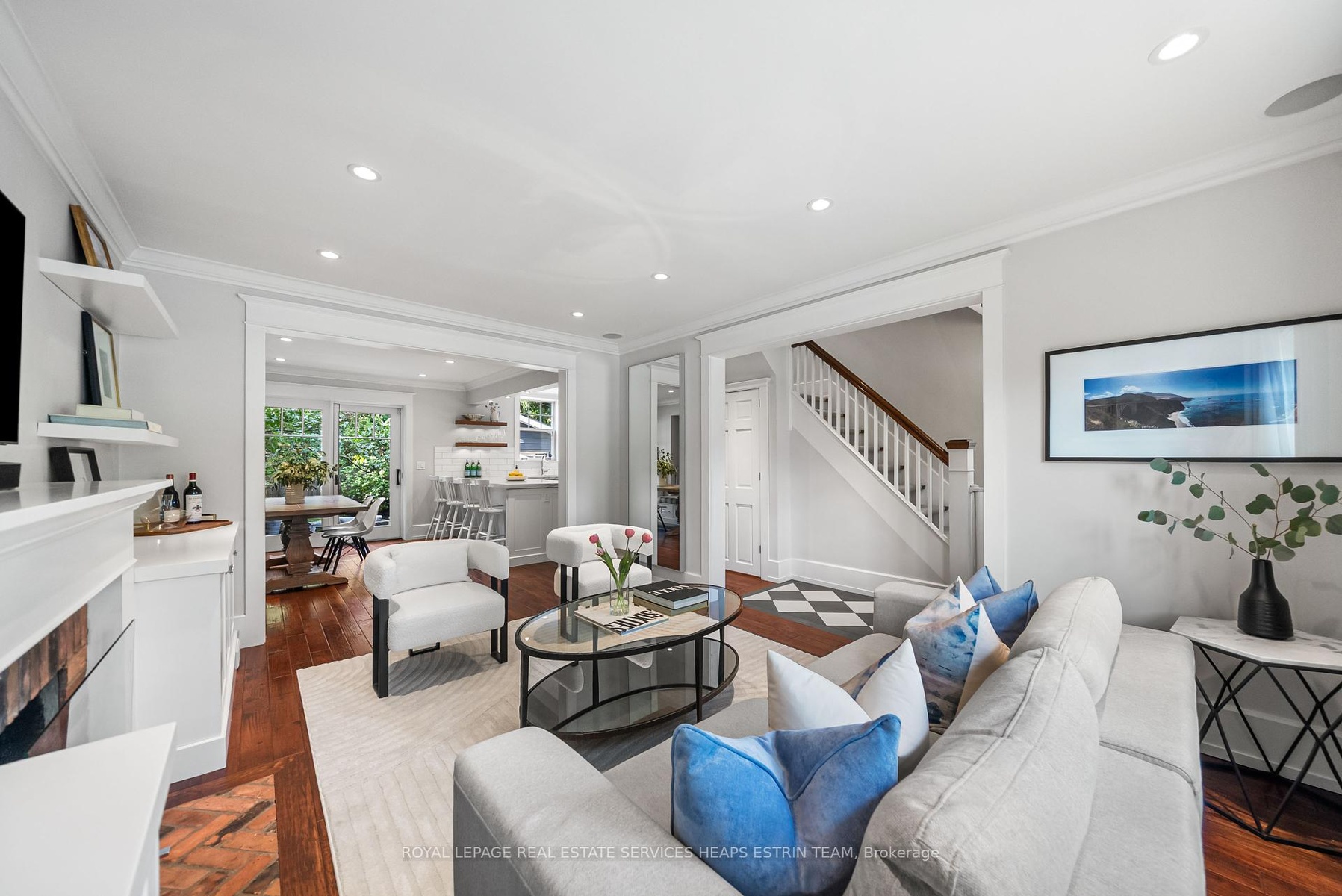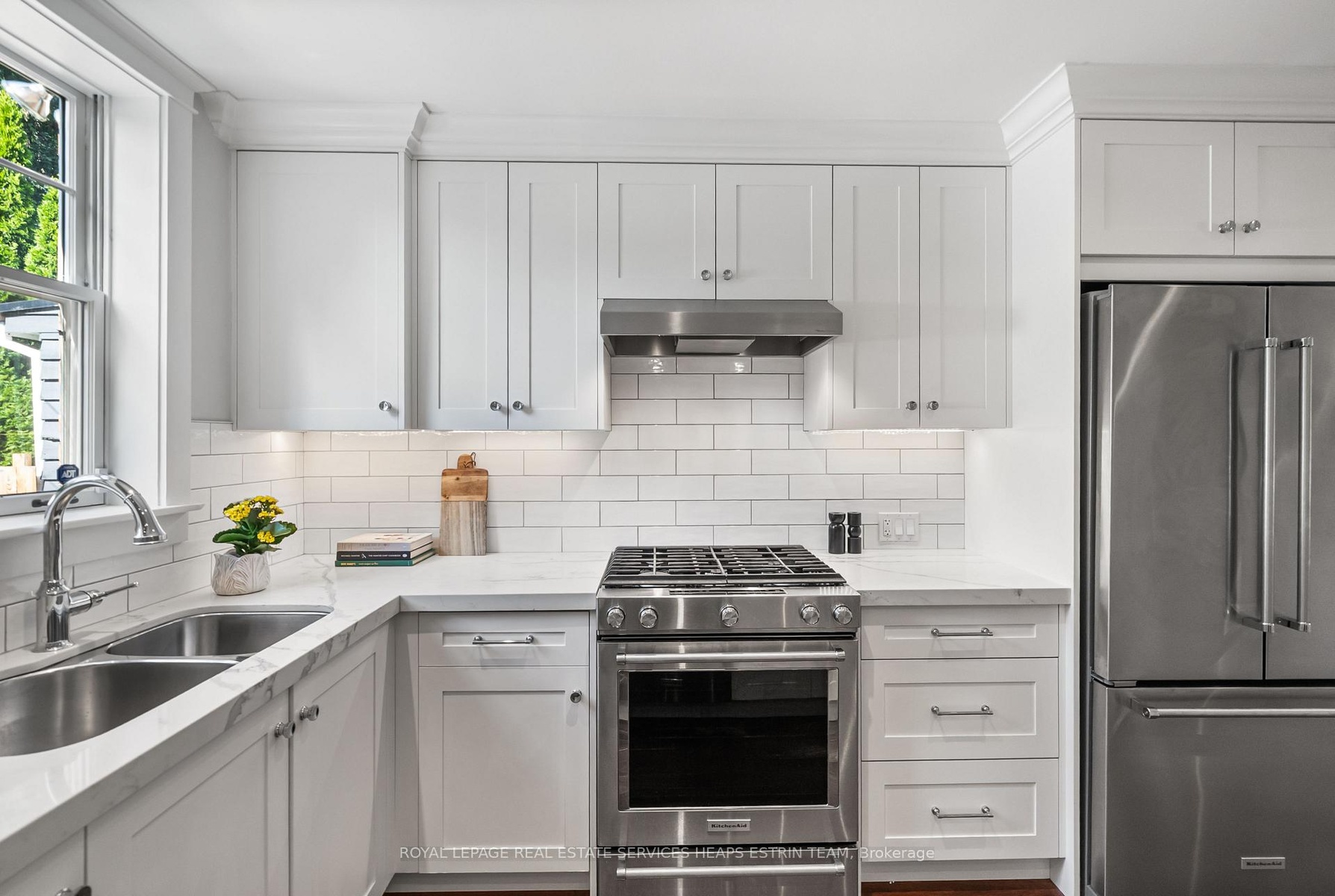 Welcome to 256 Rumsey Road - a classic red brick beauty in South Leaside, fully renovated and full of charm! Every detail radiates warmth, quality and style - from the open-concept main floor to the private garden and rare detached garage. A perfect blend of tradition and modern living in the Bessborough School District.This home features a stunning custom kitchen by Olympic Kitchens with quartz counters, high end appliances and a large breakfast bar that opens to the dining area. A built-in banquette with storage and a gorgeous custom coffee station elevate the living experience, and the sunny west exposure brightens the entire space. The second floor features three well-proportioned bedrooms with hardwood floors and good closet space, including a large primary bedroom with room for a king-size bed. The gorgeous marble-clad four-piece bathroom features heated floors and custom cabinetry. Downstairs, the lower level offers a spacious recreation room with pot lights, an additional bedroom currently setup as an office, and a renovated three-piece bath with heated floors. Laundry and storage are located here as well, plus a convenient separate side door entrance. Enjoy privacy and relaxation in the peaceful backyard, fully fenced in with space to lounge, dine and play. The oversized detached garage is a bonus, outfitted with built-in shelves and a heating system of its own. In district for the coveted Bessborough Elementary School and Leaside High School, and within close proximity to private schools, the shops of Bayview Avenue, the ravine, bike trails, Evergreen Brick Works, TTC and downtown, this turnkey gem awaits!