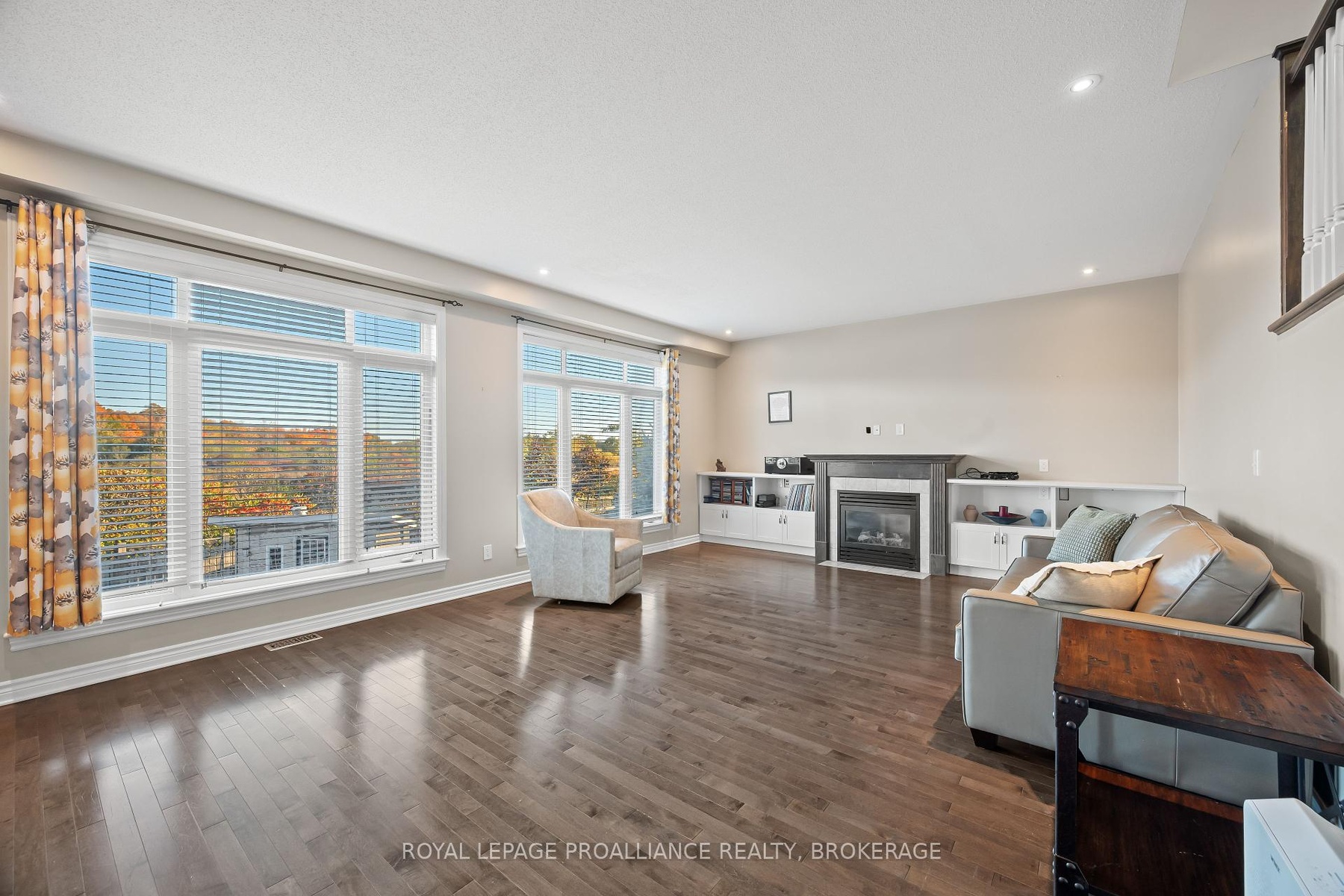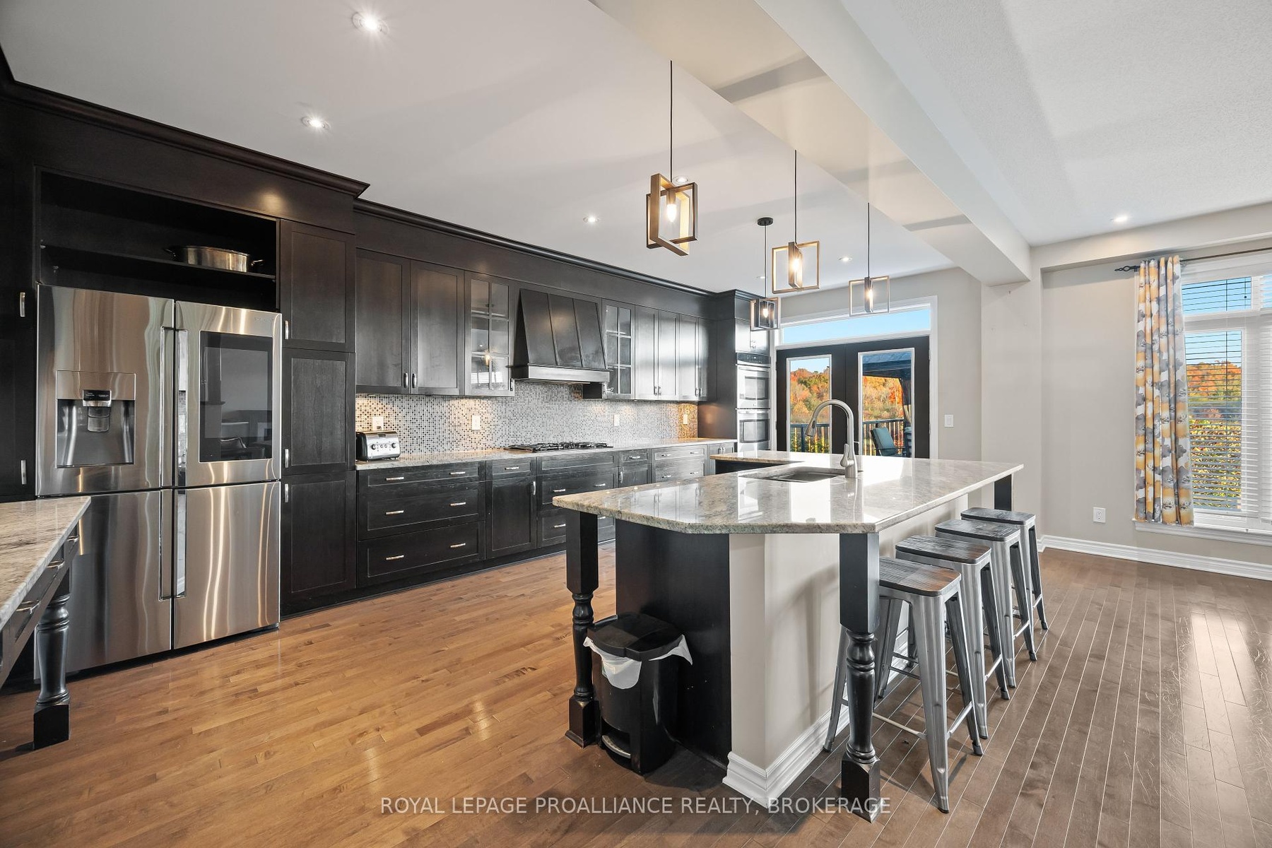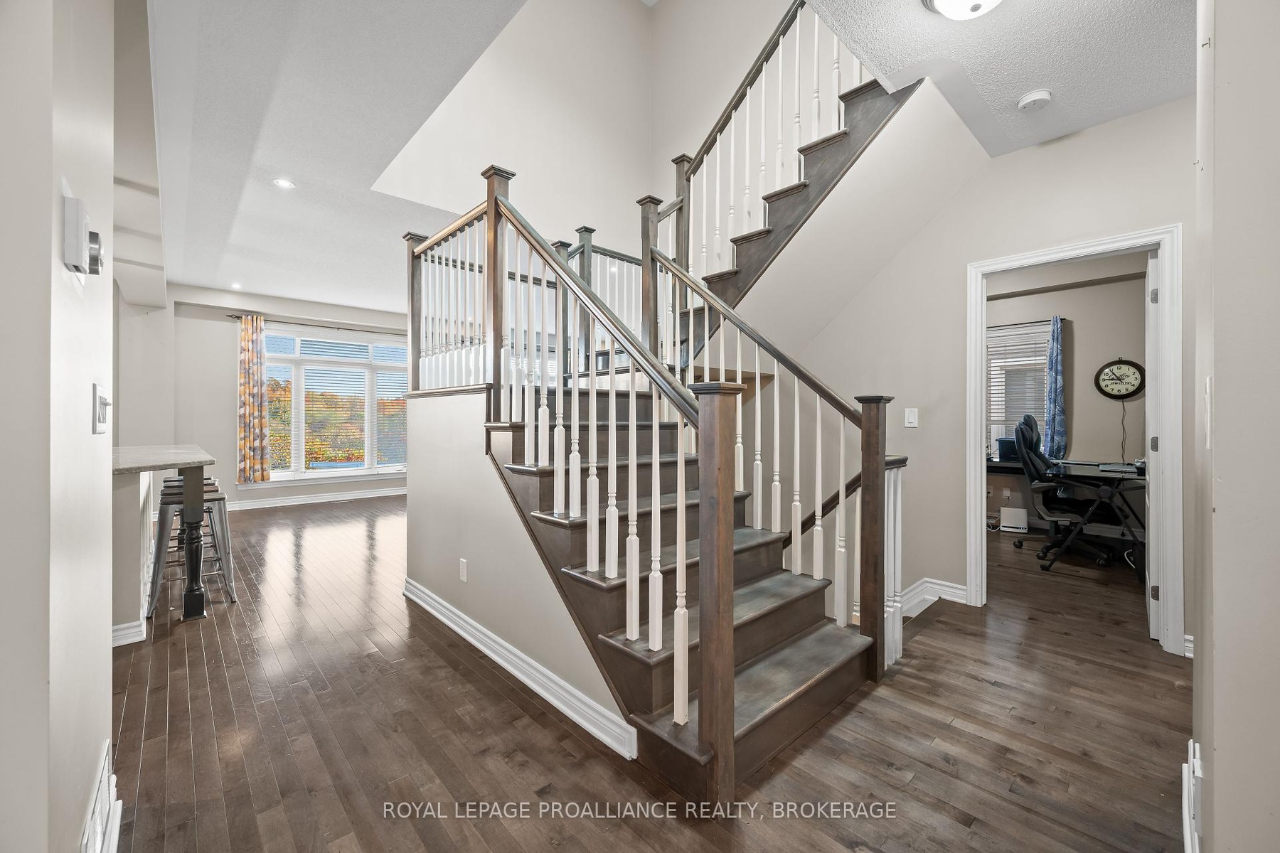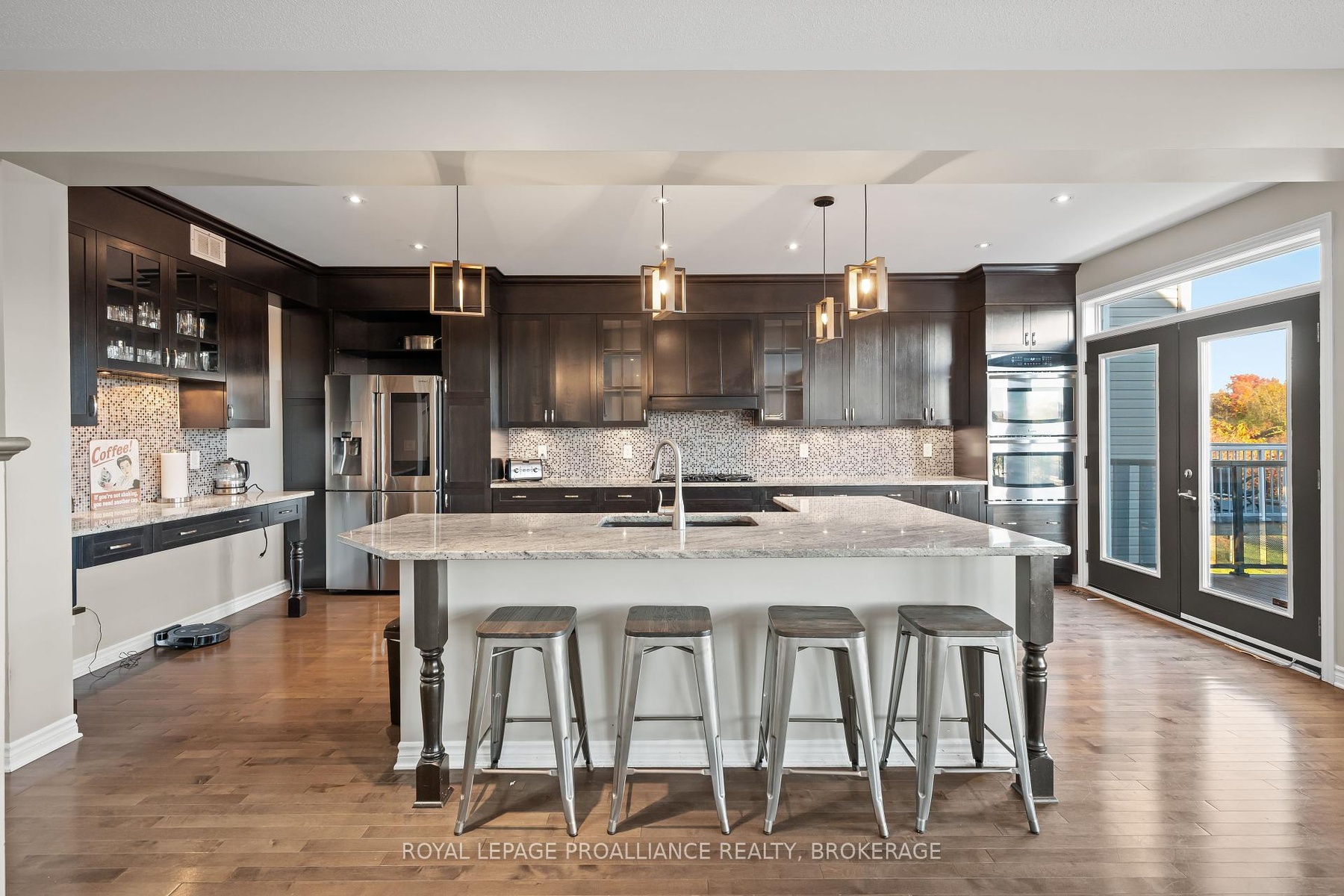 Welcome to this stunning, over 3000 sq ft Tamarack Oxford Model on the highly desirable East End street of Fieldstone Drive. Step into the main floor to find hardwood flooring throughout, an open foyer with adjacent living & dining space combination, an office/den, inside entry to the double garage & a 2pc bathroom. The beautiful open concept kitchen with maple cabinetry, granite countertops, a large kitchen island connected to the massive living room with large windows, a gas fireplace & sliding glass doors to the elevated balcony overlooking the Greenwood Park trail & Butternut Creek. The upstairs also hosts hardwood throughout, 3 large bedrooms, one with walk-in closet & a 4pc ensuite, 2nd floor laundry, another 4pc bath, & finally the primary with 5pc ensuite with his & hers sinks, soaker tub, tiled shower & ample closet space. The fully finished walk-out basement with laminate flooring has a large rec room, an additional 3pc bath with ceramic tile flooring, a games room doubling as a bonus bedroom or office, utility room & storage space. The fully fenced backyard features interlocking brick, a kidney shaped in ground salt water & heated pool along with a pool shed. This beautiful home is located just a few minutes from CFB Kingston and all other east end amenities, & is arguably one of the most fully loaded homes in the area.