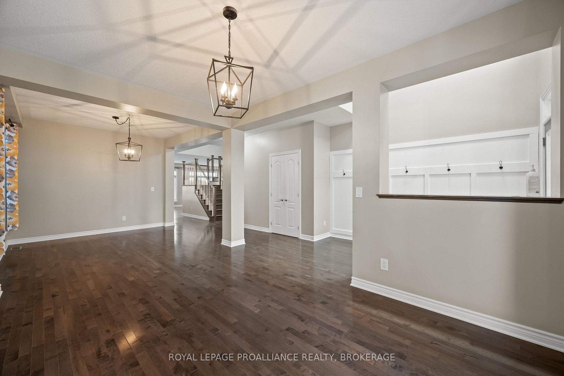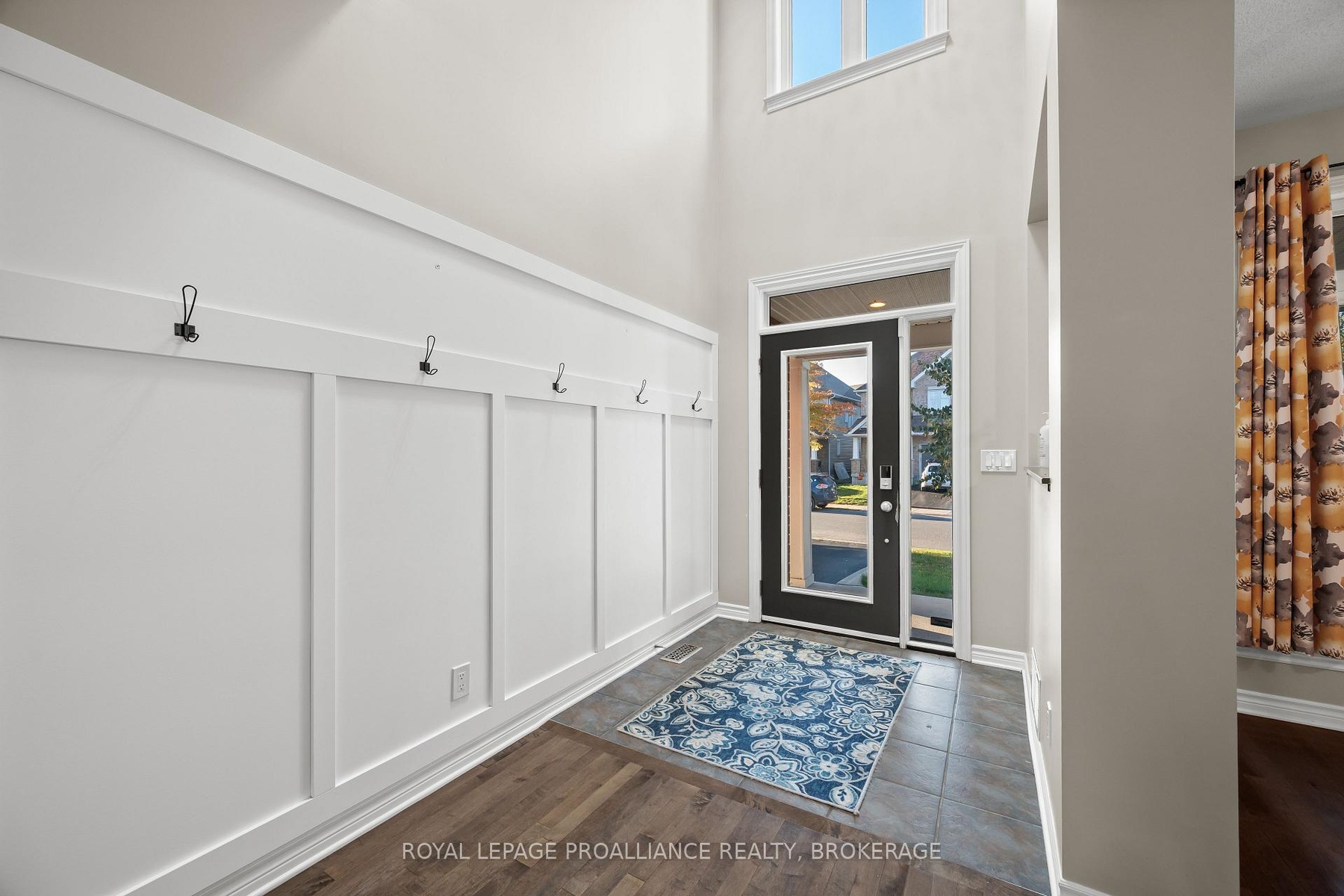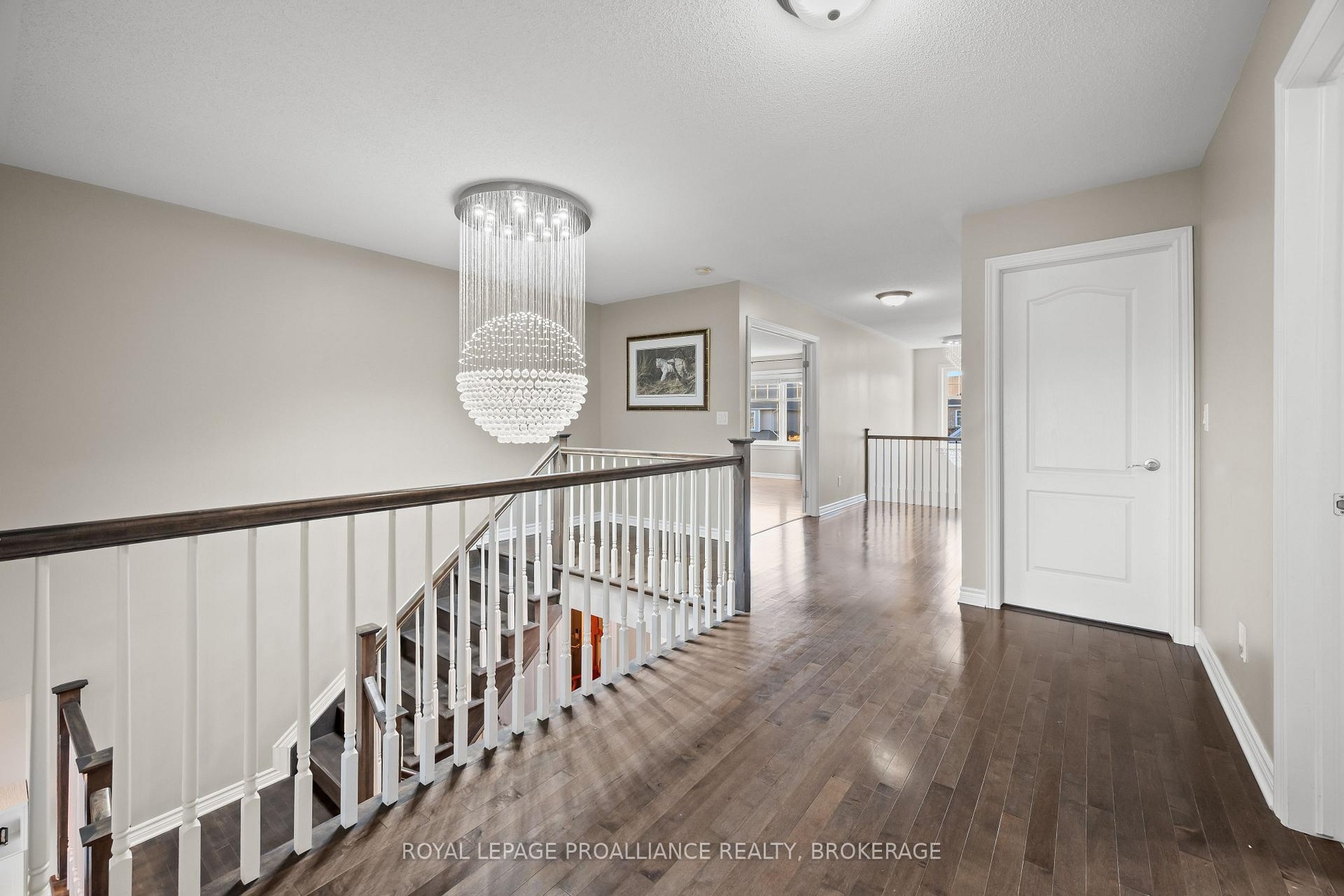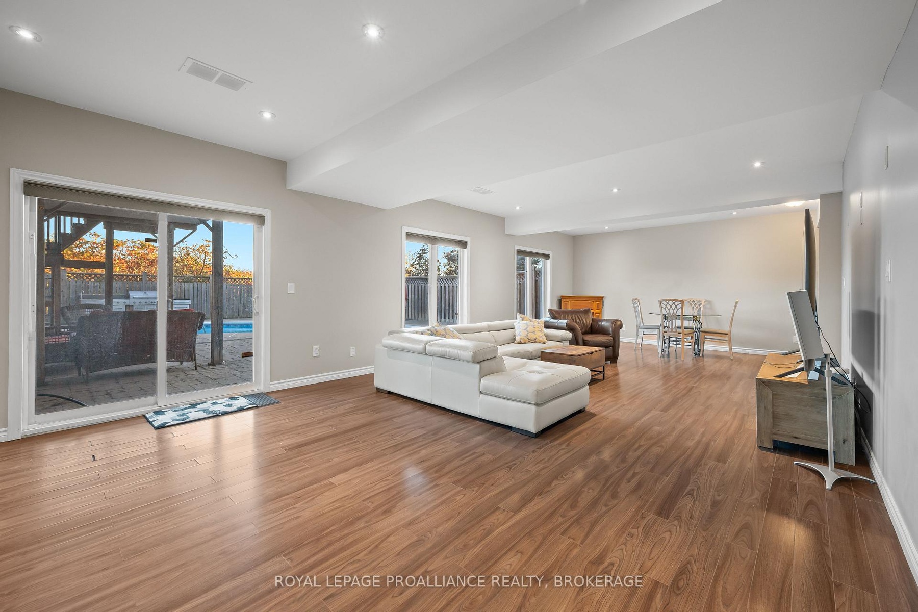 Welcome to this stunning, over 3000 sq ft Tamarack Oxford Model on the highly desirable East End street of Fieldstone Drive. Step into the main floor to find hardwood flooring throughout, an open foyer with adjacent living & dining space combination, an office/den, inside entry to the double garage & a 2pc bathroom. The beautiful open concept kitchen with maple cabinetry, granite countertops, a large kitchen island connected to the massive living room with large windows, a gas fireplace & sliding glass doors to the elevated balcony overlooking the Greenwood Park trail & Butternut Creek. The upstairs also hosts hardwood throughout, 3 large bedrooms, one with walk-in closet & a 4pc ensuite, 2nd floor laundry, another 4pc bath, & finally the primary with 5pc ensuite with his & hers sinks, soaker tub, tiled shower & ample closet space. The fully finished walk-out basement with laminate flooring has a large rec room, an additional 3pc bath with ceramic tile flooring, a games room doubling as a bonus bedroom or office, utility room & storage space. The fully fenced backyard features interlocking brick, a kidney shaped in ground salt water & heated pool along with a pool shed. This beautiful home is located just a few minutes from CFB Kingston and all other east end amenities, & is arguably one of the most fully loaded homes in the area.