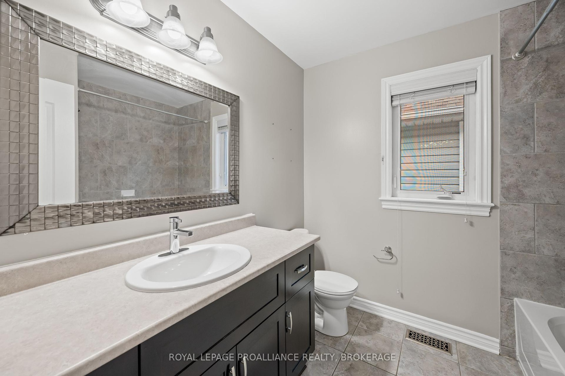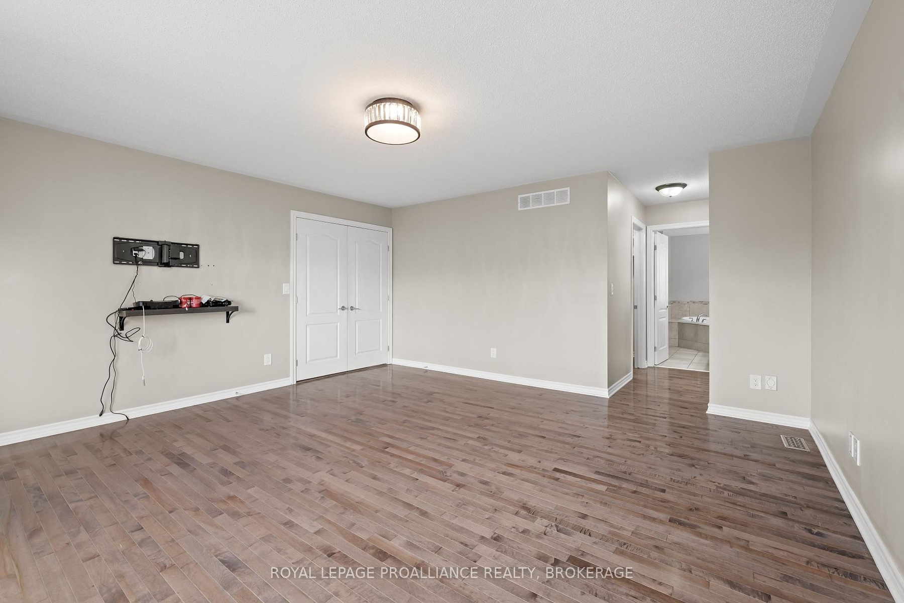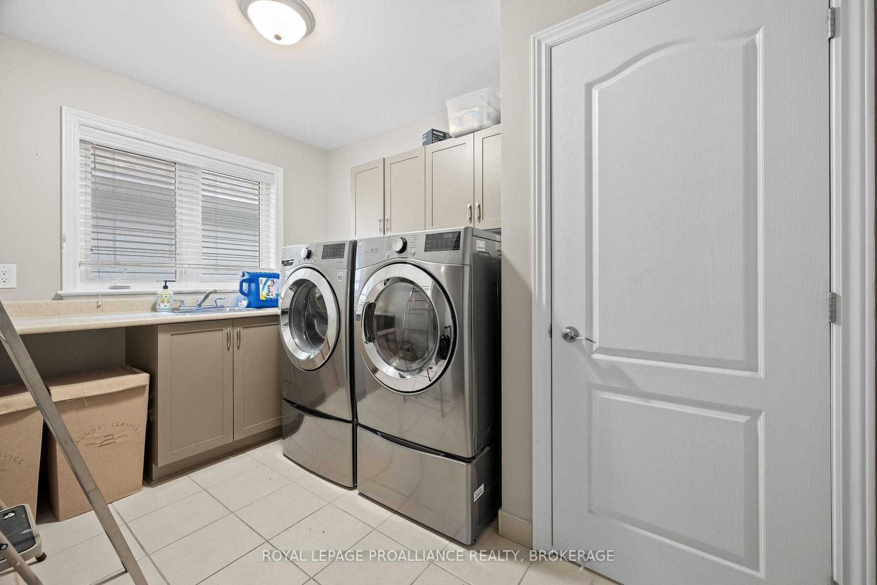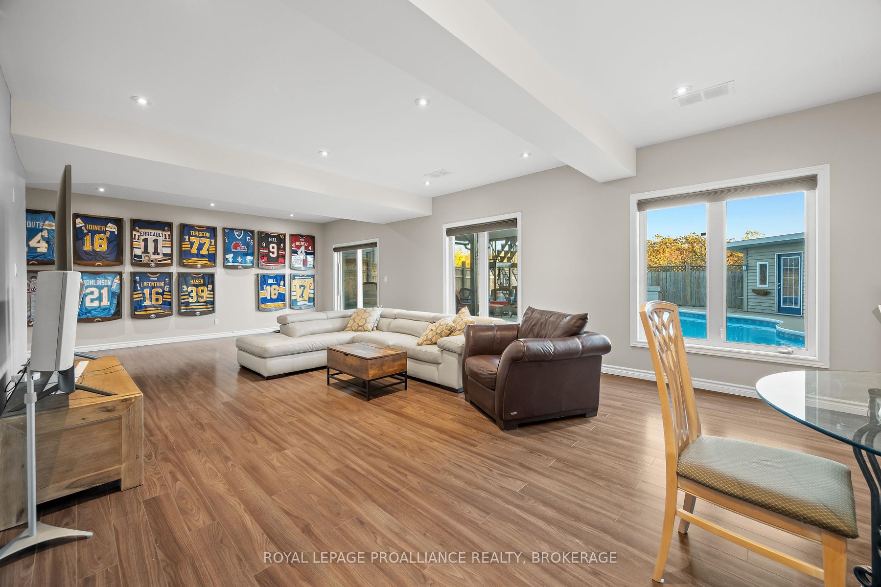 Welcome to this stunning, over 3000 sq ft Tamarack Oxford Model on the highly desirable East End street of Fieldstone Drive. Step into the main floor to find hardwood flooring throughout, an open foyer with adjacent living & dining space combination, an office/den, inside entry to the double garage & a 2pc bathroom. The beautiful open concept kitchen with maple cabinetry, granite countertops, a large kitchen island connected to the massive living room with large windows, a gas fireplace & sliding glass doors to the elevated balcony overlooking the Greenwood Park trail & Butternut Creek. The upstairs also hosts hardwood throughout, 3 large bedrooms, one with walk-in closet & a 4pc ensuite, 2nd floor laundry, another 4pc bath, & finally the primary with 5pc ensuite with his & hers sinks, soaker tub, tiled shower & ample closet space. The fully finished walk-out basement with laminate flooring has a large rec room, an additional 3pc bath with ceramic tile flooring, a games room doubling as a bonus bedroom or office, utility room & storage space. The fully fenced backyard features interlocking brick, a kidney shaped in ground salt water & heated pool along with a pool shed. This beautiful home is located just a few minutes from CFB Kingston and all other east end amenities, & is arguably one of the most fully loaded homes in the area.