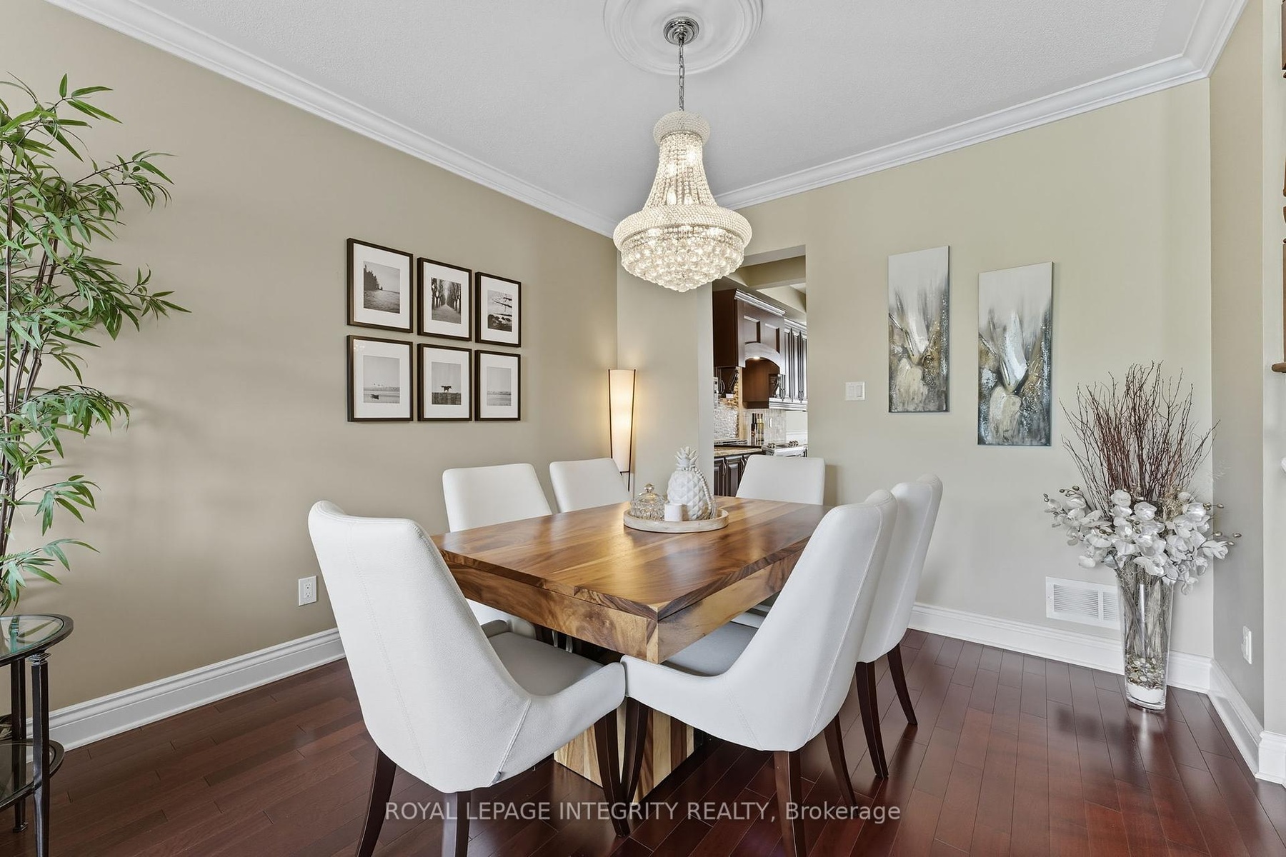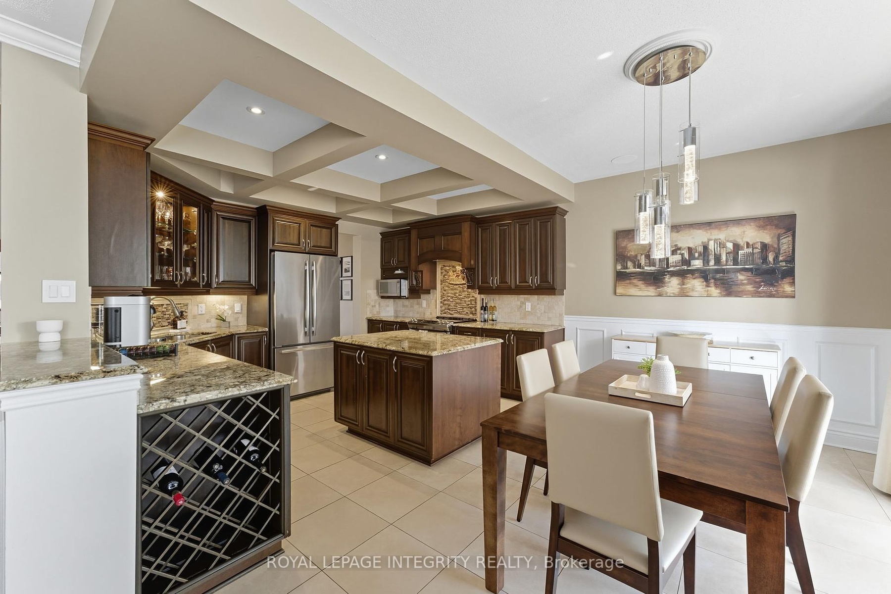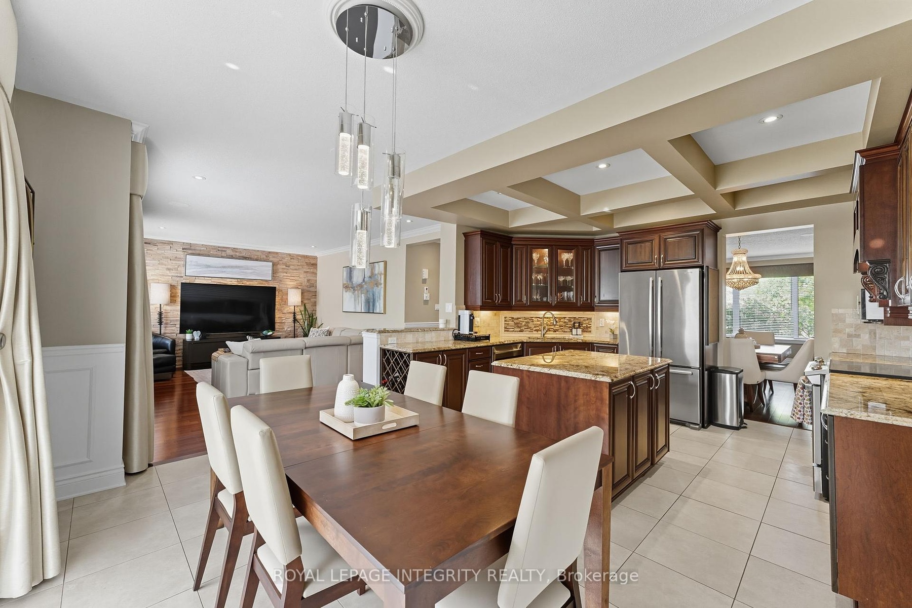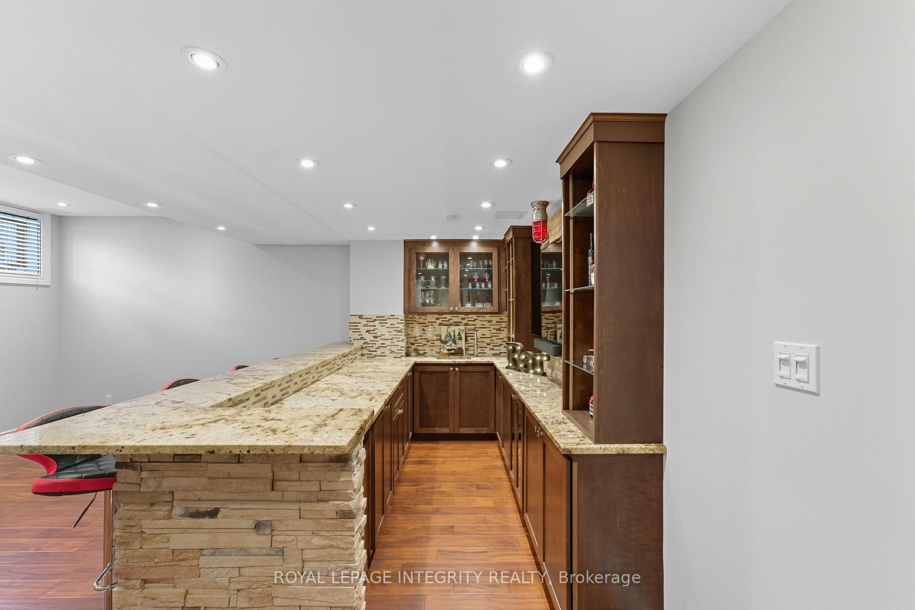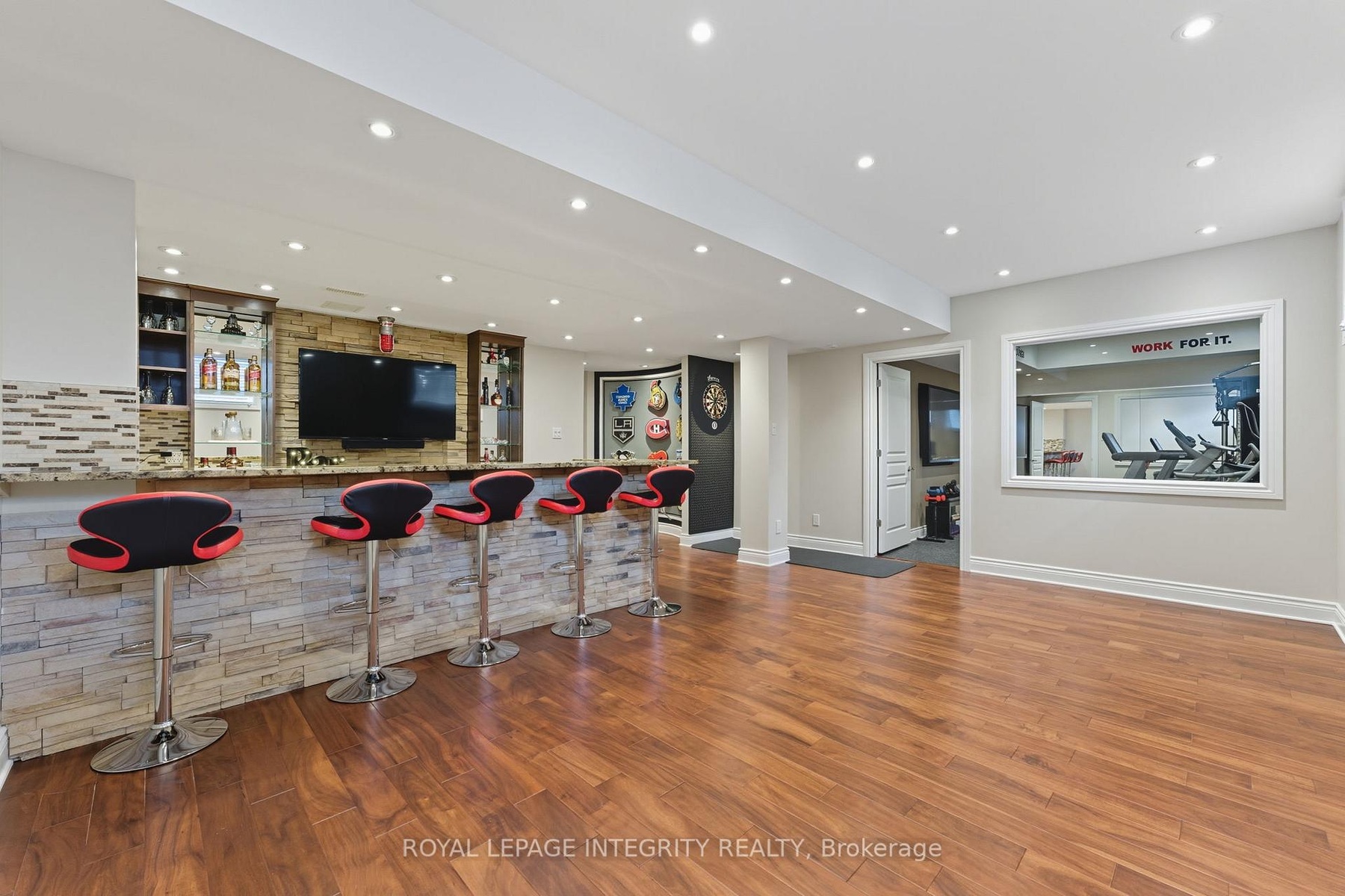 Exceptional 4-bedroom, 4-bath home with over $250k in upgrades offers over 2,900 sq ft of thoughtfully designed living space, combining elegance, comfort, and sophisticated craftsmanship at every turn. Beautiful front landscaping sets the stage from the moment you arrive, leading to an interior with a spiral staircase crowned by a crystal chandelier. 9 ft ceilings, rich Brazilian cherry hardwood floors, granite surfaces, custom millwork including wainscoting and crown moulding, and a built-in sound system create an atmosphere of elevated living, complemented by abundant potlights throughout. The family room, anchored by a gas fireplace with cultured stone surround, flows seamlessly into the kitchen, featuring a coffered ceiling, large granite island, and solid wood cabinetry - a perfect space for entertaining or daily family life. The primary bedroom is a private retreat, offering a walk-in closet and a spa-inspired 5-piece ensuite with a glass shower, soaker tub, and double sinks. Three additional bedrooms are spacious and bright, while the upper-level laundry with cabinetry adds convenience. The fully finished lower level with 9-foot ceilings unveils a grand entertaining haven, showcasing a custom granite and cultured stone bar, private gym, full bathroom with a large glass shower, workshop area, and extensive storage. Step outside to a sun-filled, resort-style backyard. A heated saltwater pool sits at the heart of the space, framed by custom interlocking stonework, with an expansive pavilion-style covered patio providing the perfect setting for summer gatherings. Southern exposure and lush landscaping envelop the property in warmth and serenity, creating a luxurious private oasis. Additional features include an irrigation system and celebright soffit lighting, showcasing the care and attention to detail evident throughout this remarkable property. Located steps from scenic walking trails surrounding a large pond. 24hr irrevocable on all offers.