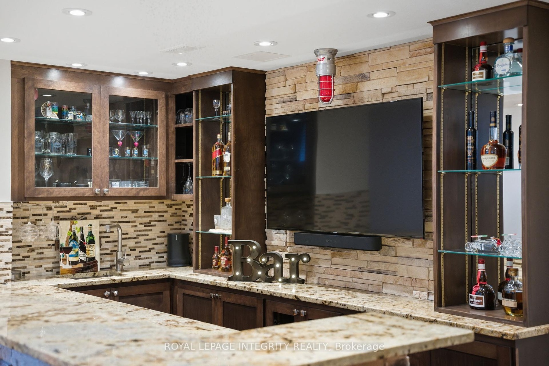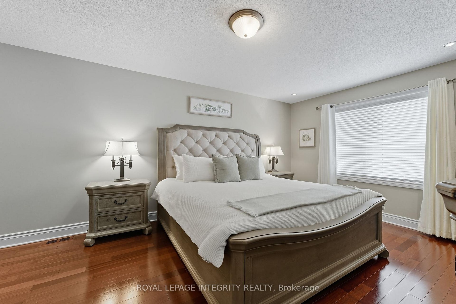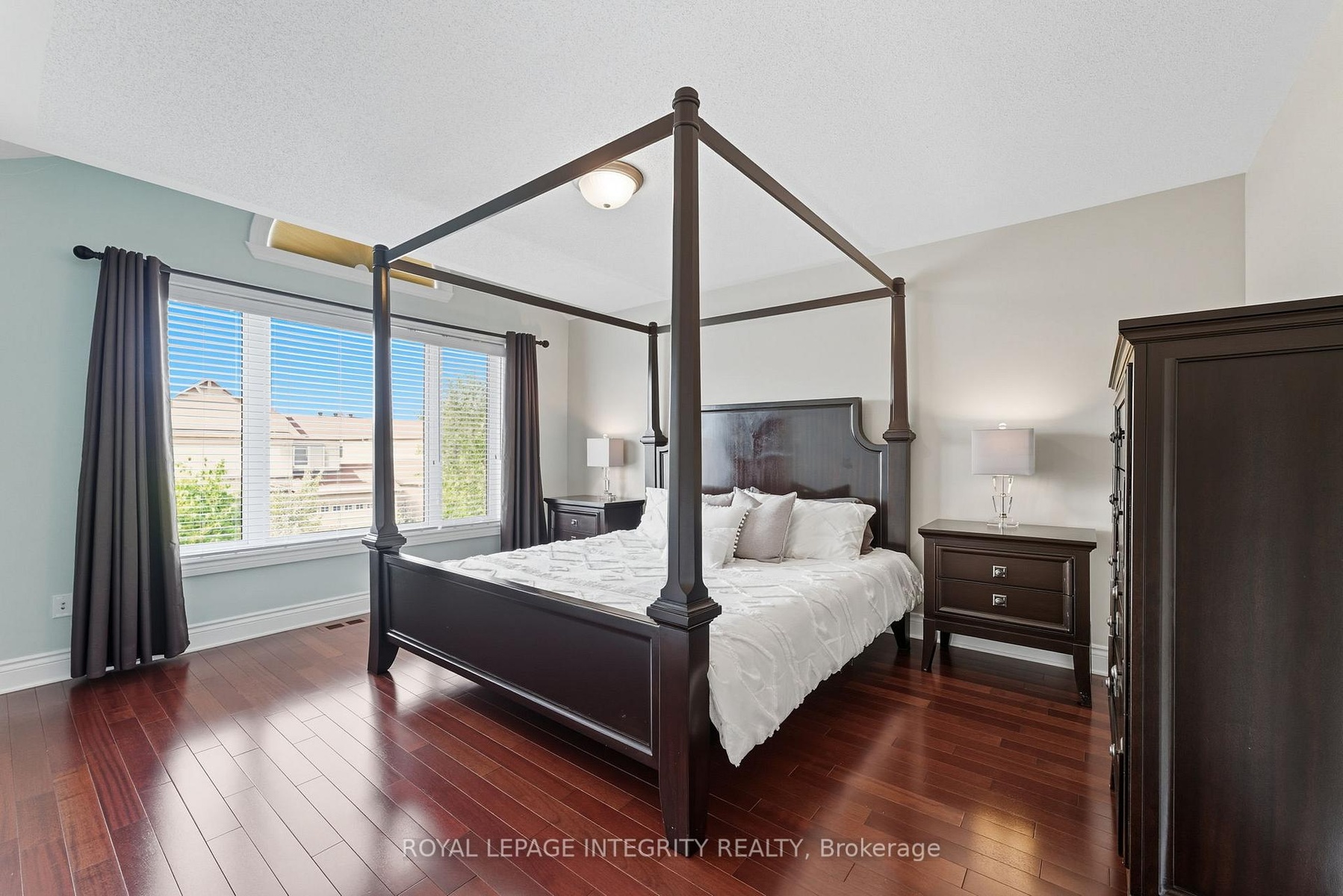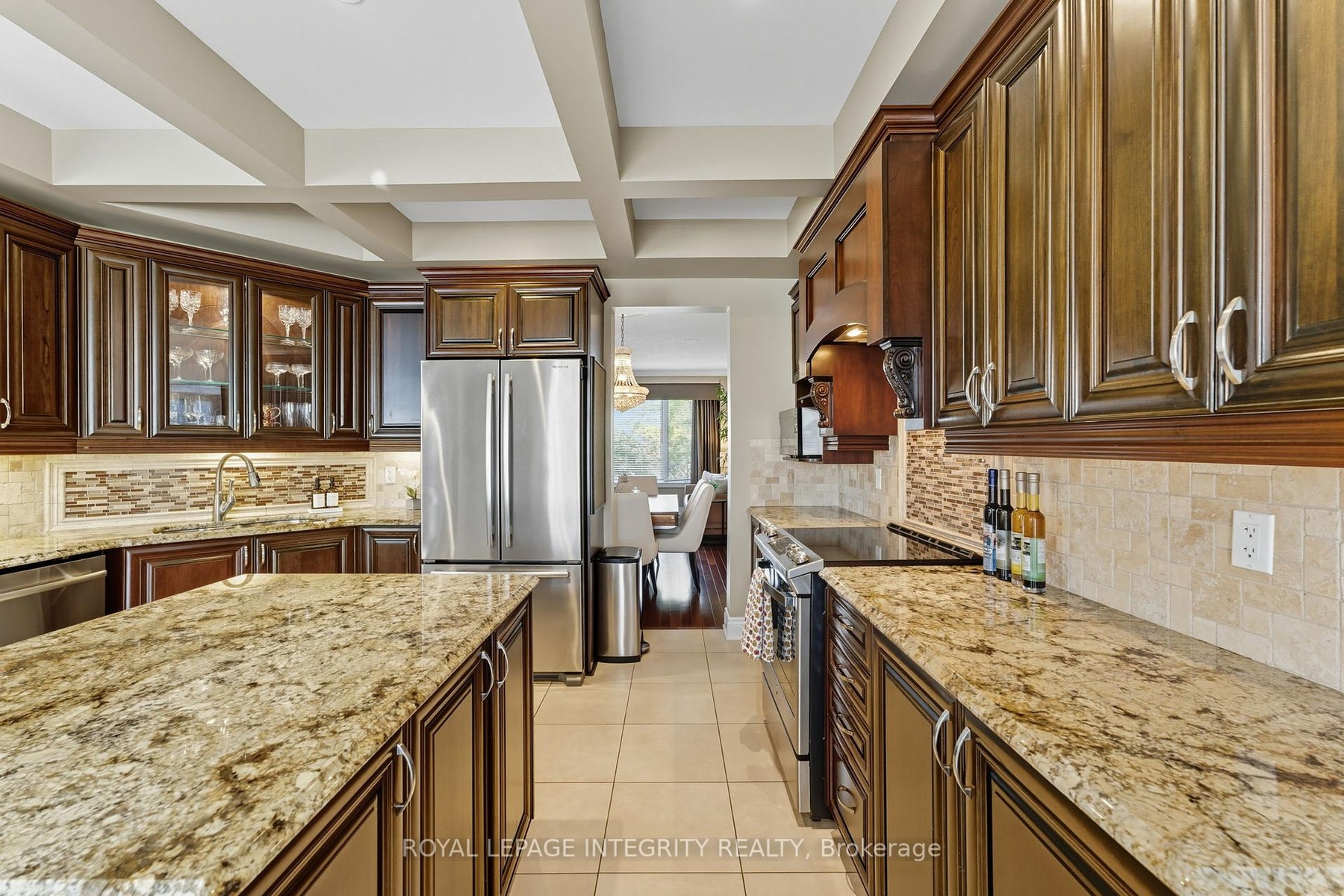 Exceptional 4-bedroom, 4-bath home with over $250k in upgrades offers over 2,900 sq ft of thoughtfully designed living space, combining elegance, comfort, and sophisticated craftsmanship at every turn. Beautiful front landscaping sets the stage from the moment you arrive, leading to an interior with a spiral staircase crowned by a crystal chandelier. 9 ft ceilings, rich Brazilian cherry hardwood floors, granite surfaces, custom millwork including wainscoting and crown moulding, and a built-in sound system create an atmosphere of elevated living, complemented by abundant potlights throughout. The family room, anchored by a gas fireplace with cultured stone surround, flows seamlessly into the kitchen, featuring a coffered ceiling, large granite island, and solid wood cabinetry - a perfect space for entertaining or daily family life. The primary bedroom is a private retreat, offering a walk-in closet and a spa-inspired 5-piece ensuite with a glass shower, soaker tub, and double sinks. Three additional bedrooms are spacious and bright, while the upper-level laundry with cabinetry adds convenience. The fully finished lower level with 9-foot ceilings unveils a grand entertaining haven, showcasing a custom granite and cultured stone bar, private gym, full bathroom with a large glass shower, workshop area, and extensive storage. Step outside to a sun-filled, resort-style backyard. A heated saltwater pool sits at the heart of the space, framed by custom interlocking stonework, with an expansive pavilion-style covered patio providing the perfect setting for summer gatherings. Southern exposure and lush landscaping envelop the property in warmth and serenity, creating a luxurious private oasis. Additional features include an irrigation system and celebright soffit lighting, showcasing the care and attention to detail evident throughout this remarkable property. Located steps from scenic walking trails surrounding a large pond. 24hr irrevocable on all offers.