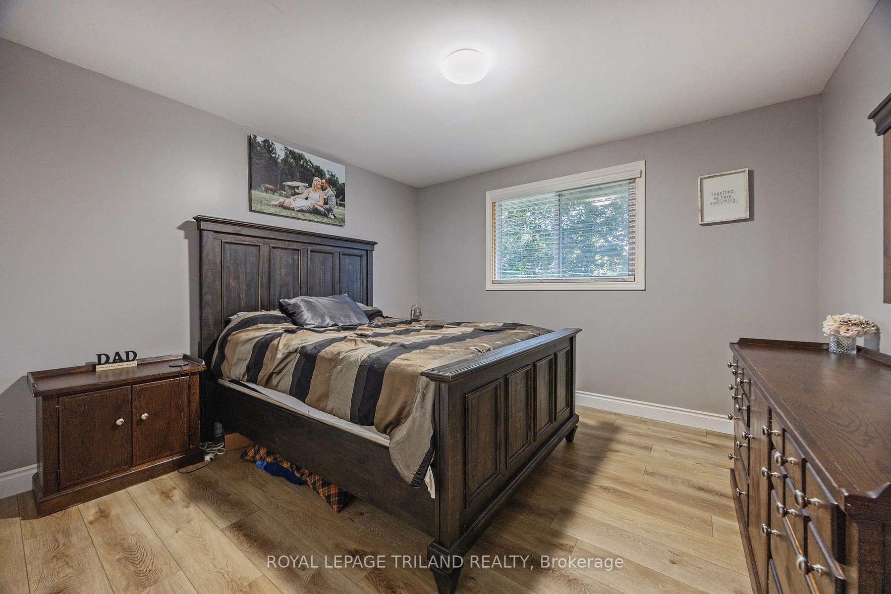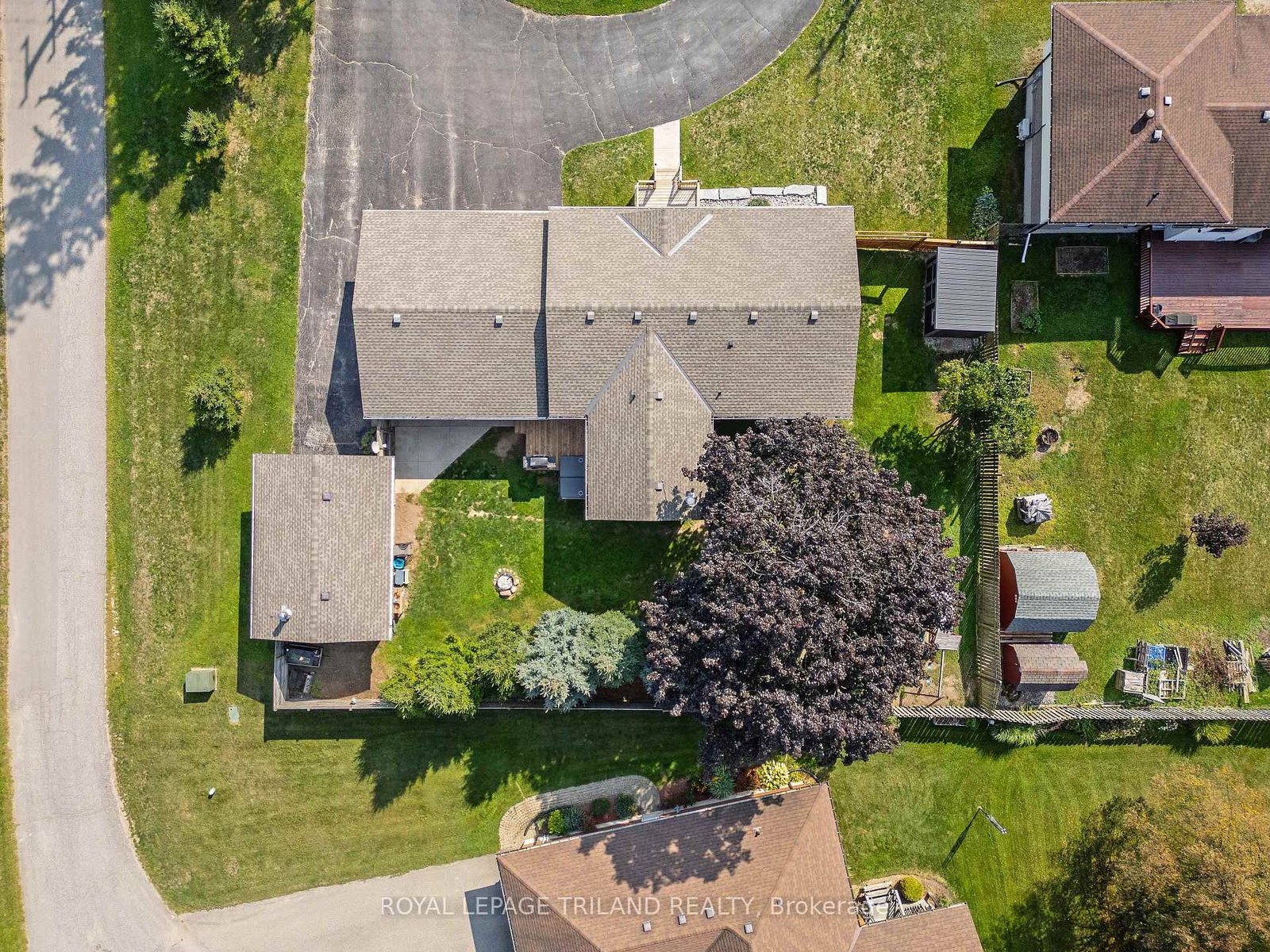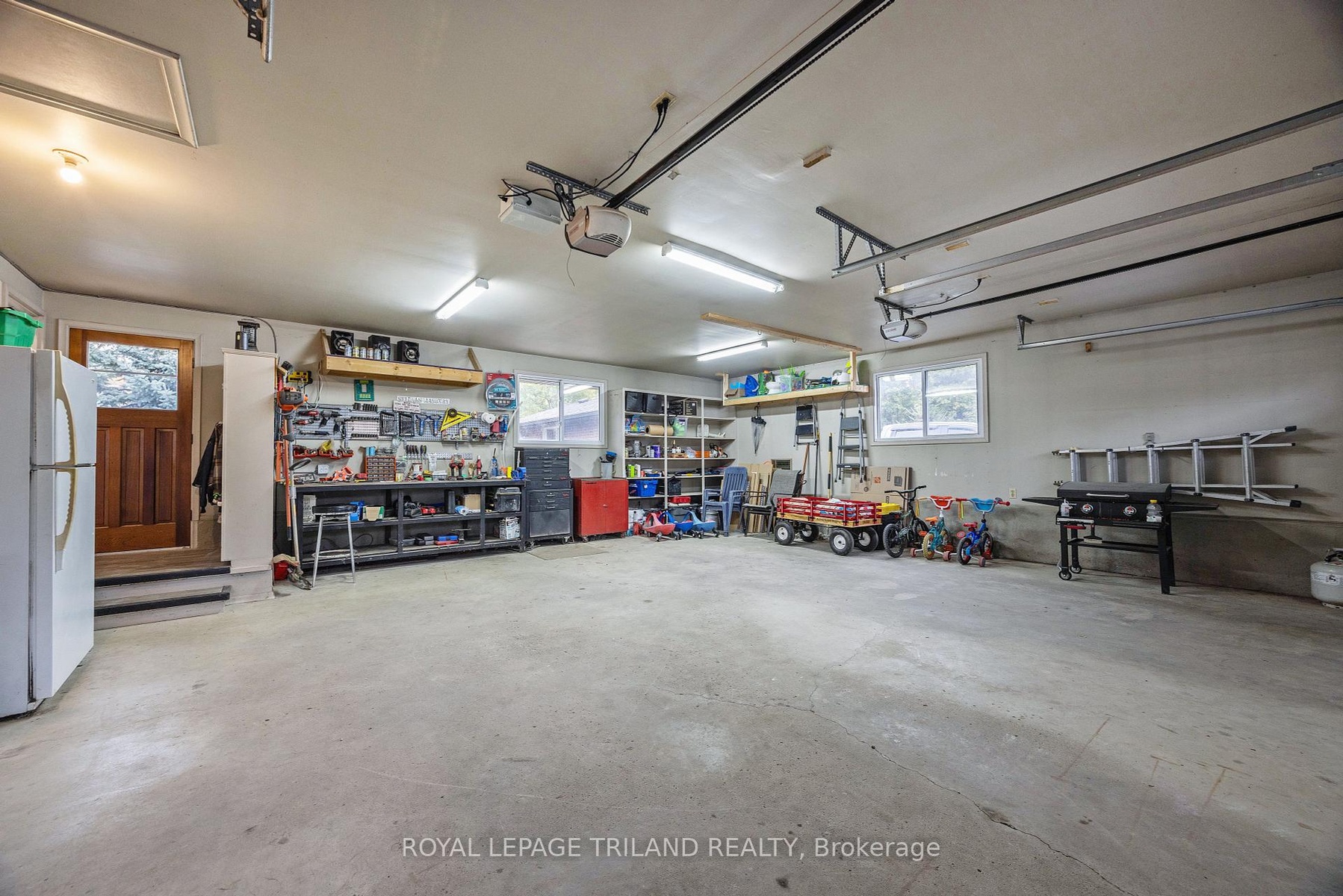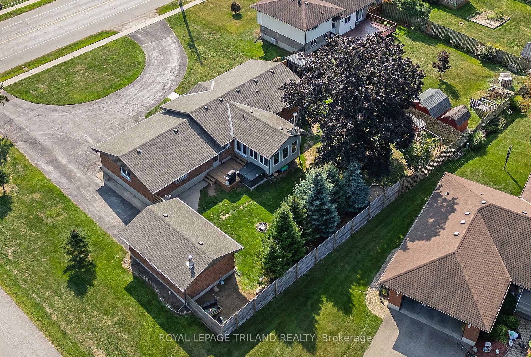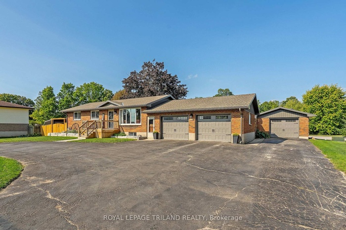 The home you have been waiting for!!!! This Fabulous Brick Bungalow sits on a double corner lot. Boasting, a paved semi-circle driveway, a huge double attached garage 27x24, plus a single detached garage, workshop or man cave 15x22 with 60 AMP service. The home features a country size Eat-in Kitchen with Granite Counter Tops 2024 and a very large Pantry. On top of this a Good Sized Living Room and Bonus Sun Room looking out over a Deck 2025 complete with Hot Tub and Landscaped Backyard featuring lots of Mature Trees and a New Shed 2025. Downstairs we have a Full Basement reno 2020, with a 40 by 12 Rec Room, Large Bathroom with Walk-in Glass Shower, Huge Laundry Room with Countertops and a 4th Bedroom or Office, Loads of Storage. On top of all this we have Garage Doors 2017, Furnace 2017, Windows 2018, Roof 2019, AC 2020, Siding, Soffit, Fascia and Eavestrough 2022, Owned Water Heater 2023, Lorex Security System 2024, Generator Plug and if that's not enough Permanent Christmas / Exterior Lighting 2024. Don't Miss This Opportunity to Own a Beautiful Property and a Quiet Lifestyle in the Village of Ailsa Craig. See this one First!!!!