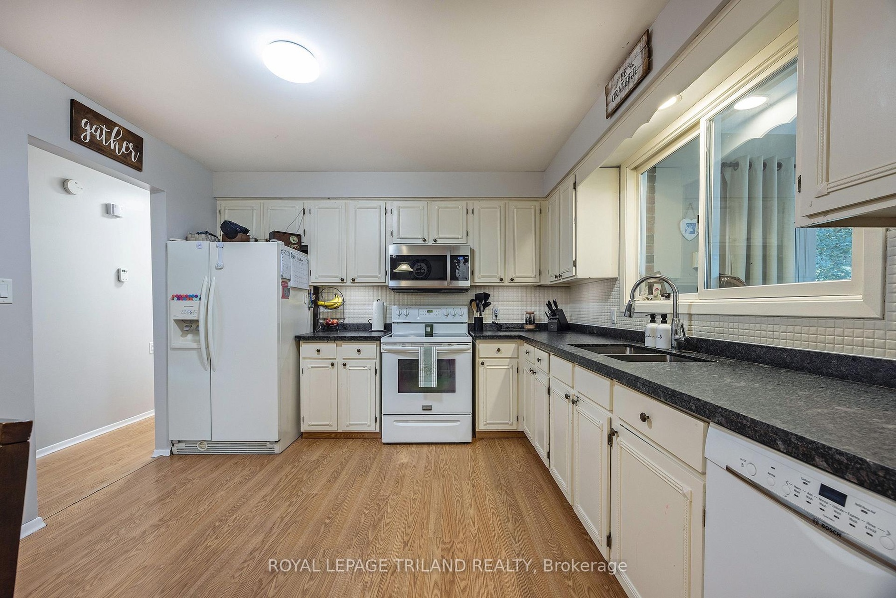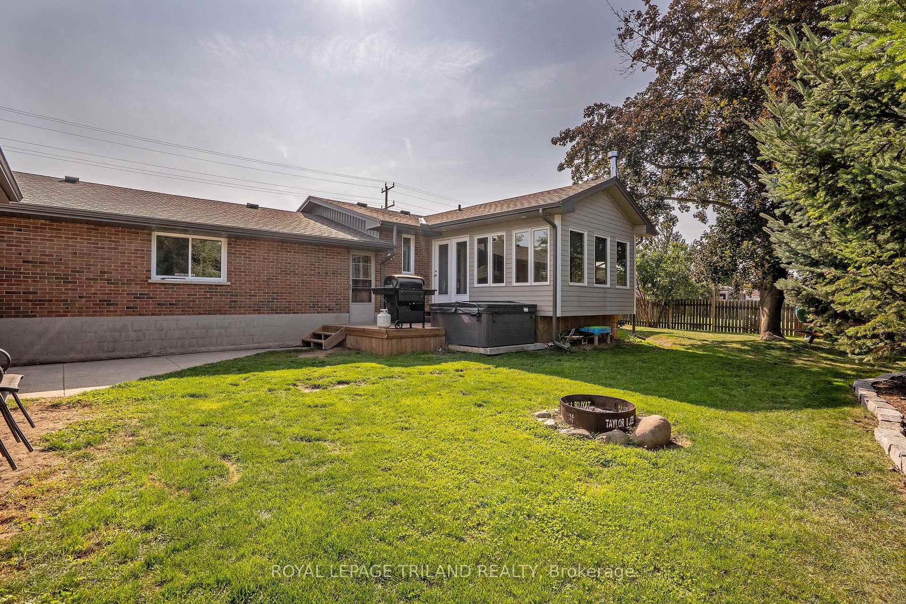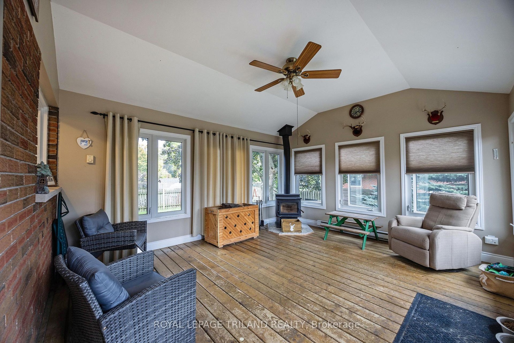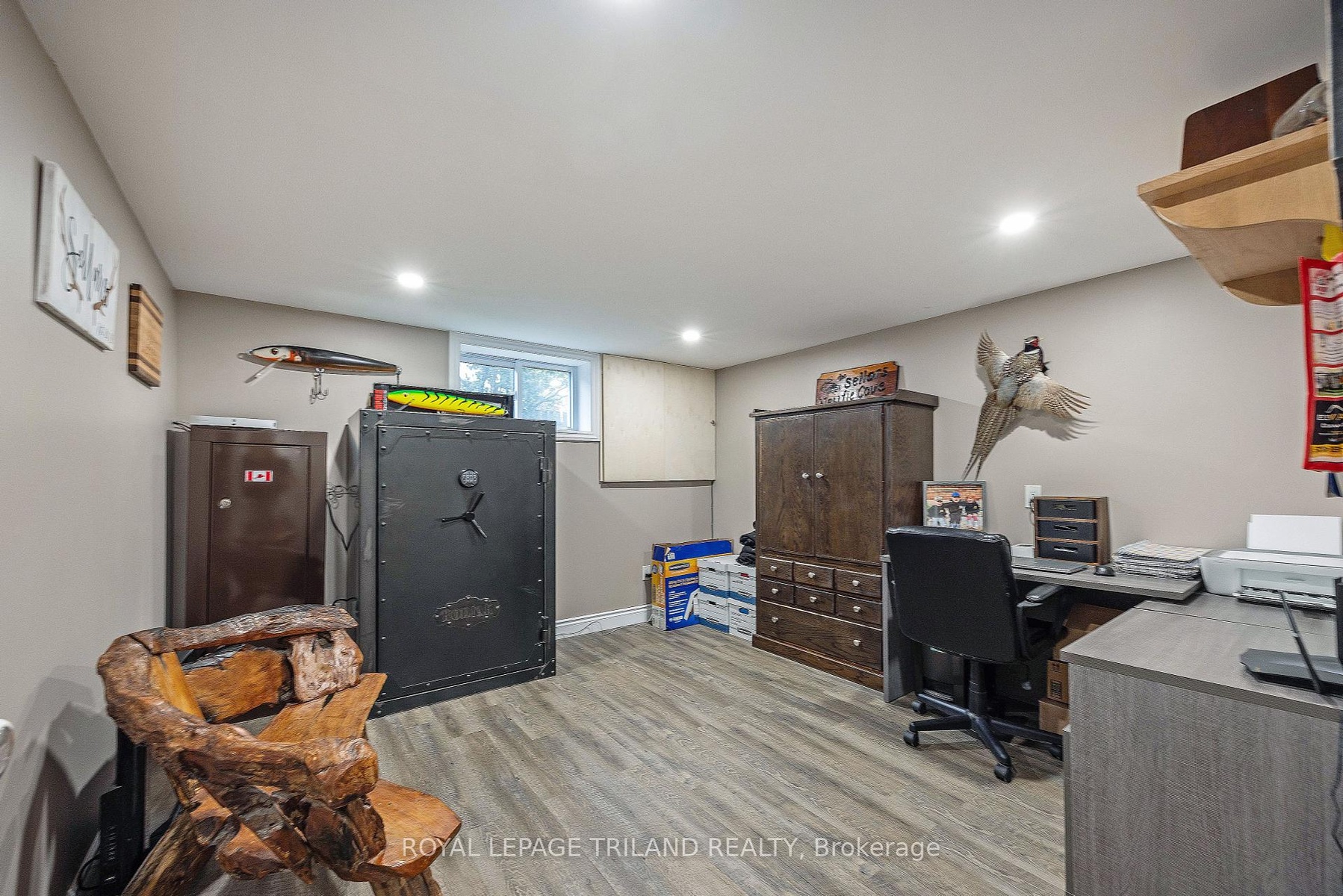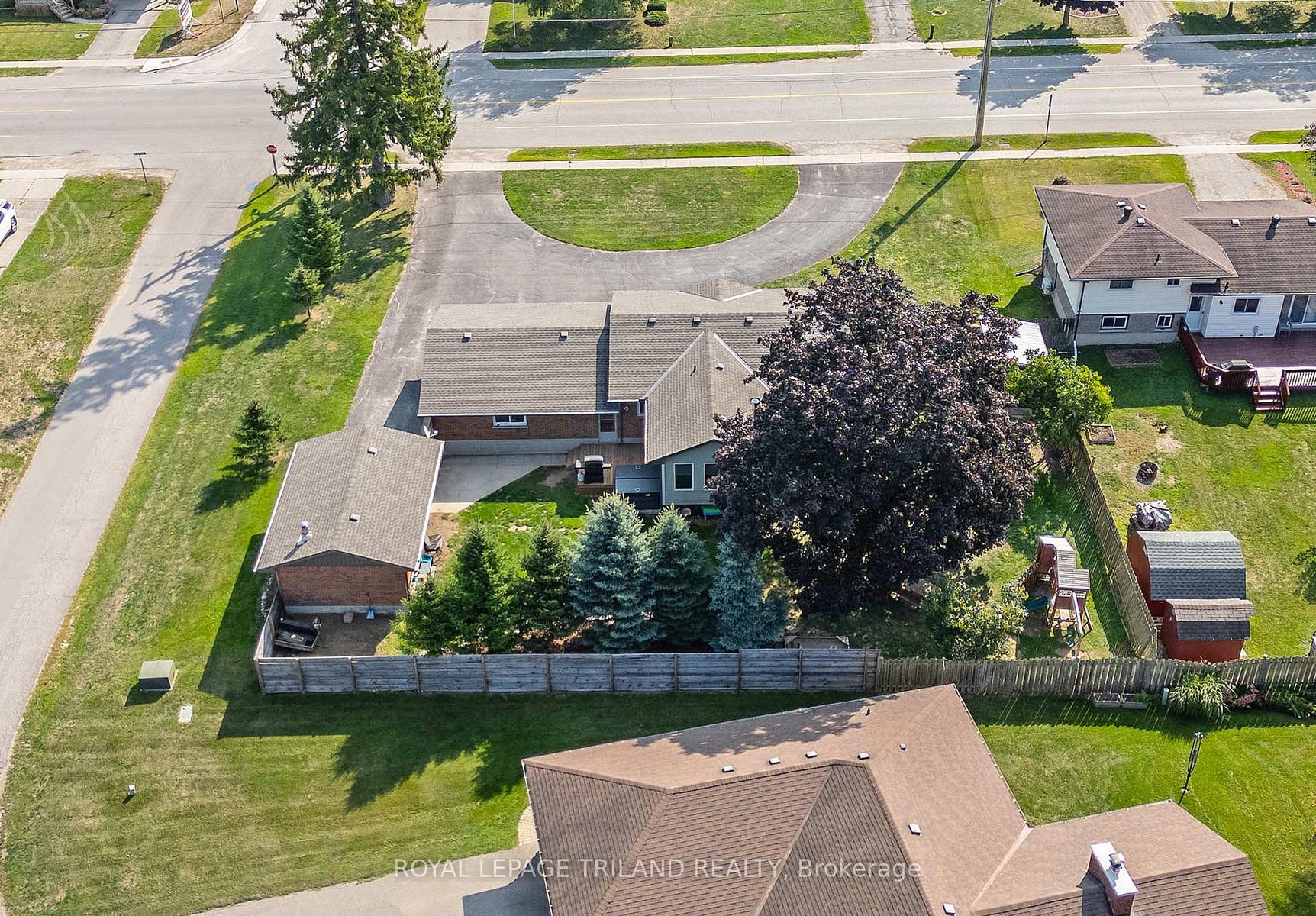 The home you have been waiting for!!!! This Fabulous Brick Bungalow sits on a double corner lot. Boasting, a paved semi-circle driveway, a huge double attached garage 27x24, plus a single detached garage, workshop or man cave 15x22 with 60 AMP service. The home features a country size Eat-in Kitchen with Granite Counter Tops 2024 and a very large Pantry. On top of this a Good Sized Living Room and Bonus Sun Room looking out over a Deck 2025 complete with Hot Tub and Landscaped Backyard featuring lots of Mature Trees and a New Shed 2025. Downstairs we have a Full Basement reno 2020, with a 40 by 12 Rec Room, Large Bathroom with Walk-in Glass Shower, Huge Laundry Room with Countertops and a 4th Bedroom or Office, Loads of Storage. On top of all this we have Garage Doors 2017, Furnace 2017, Windows 2018, Roof 2019, AC 2020, Siding, Soffit, Fascia and Eavestrough 2022, Owned Water Heater 2023, Lorex Security System 2024, Generator Plug and if that's not enough Permanent Christmas / Exterior Lighting 2024. Don't Miss This Opportunity to Own a Beautiful Property and a Quiet Lifestyle in the Village of Ailsa Craig. See this one First!!!!