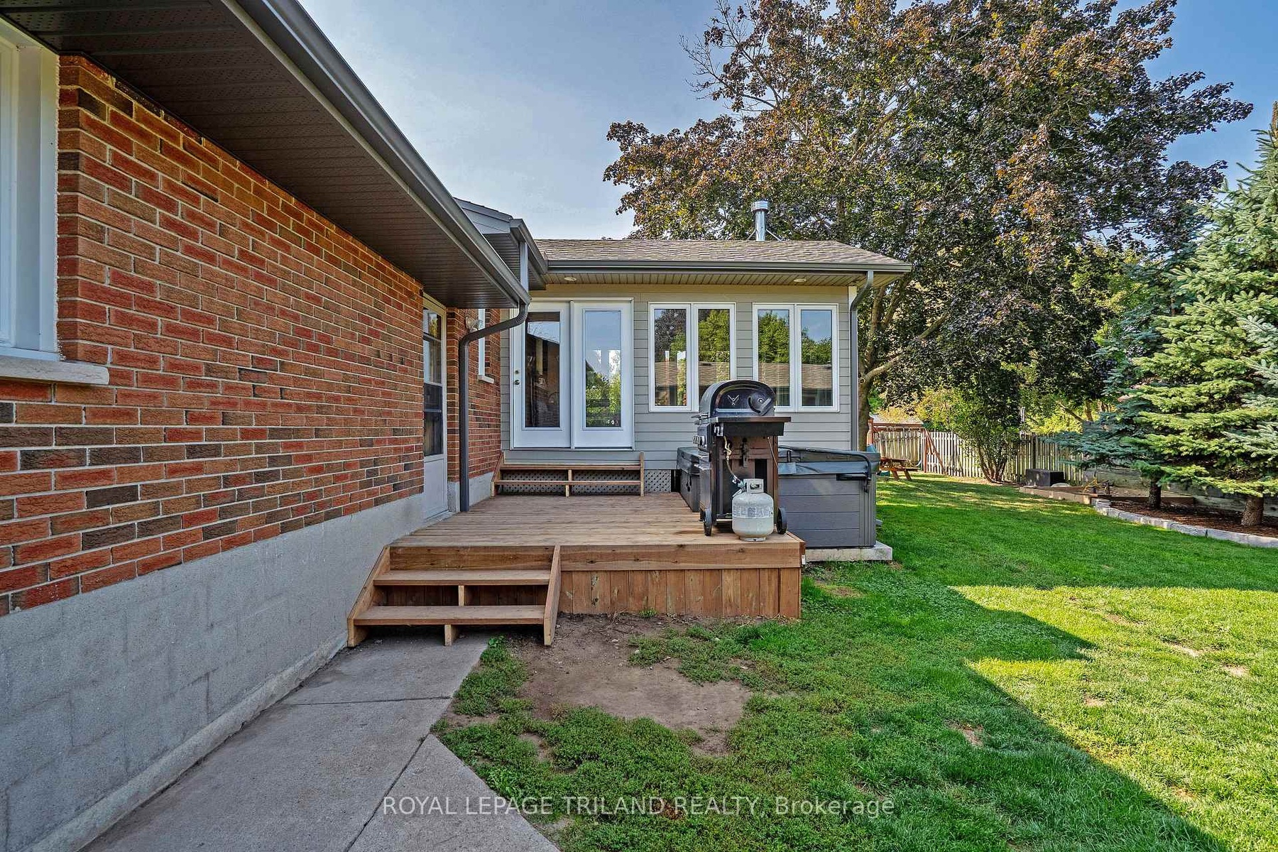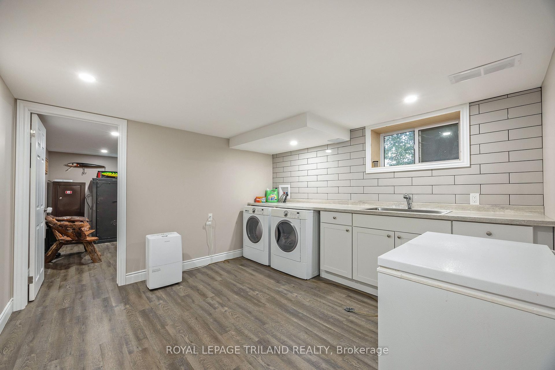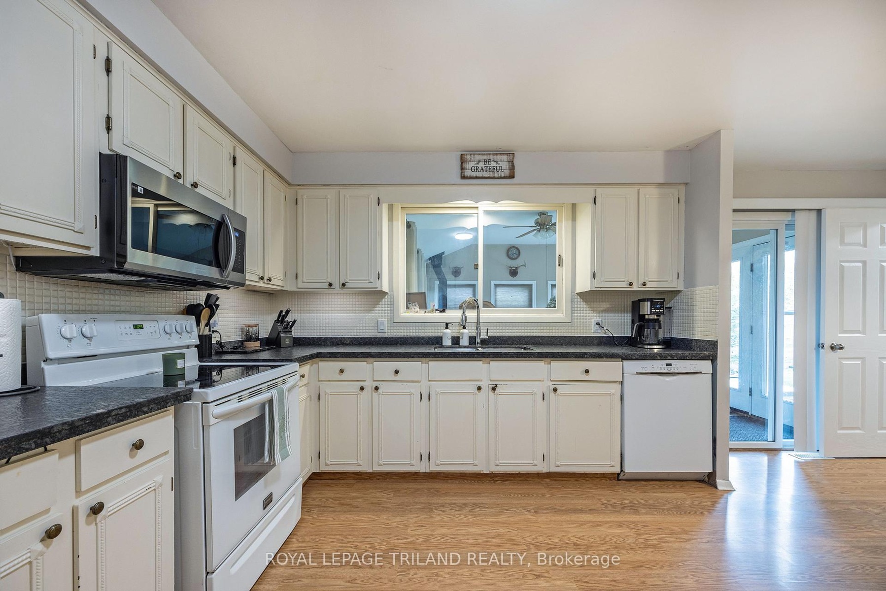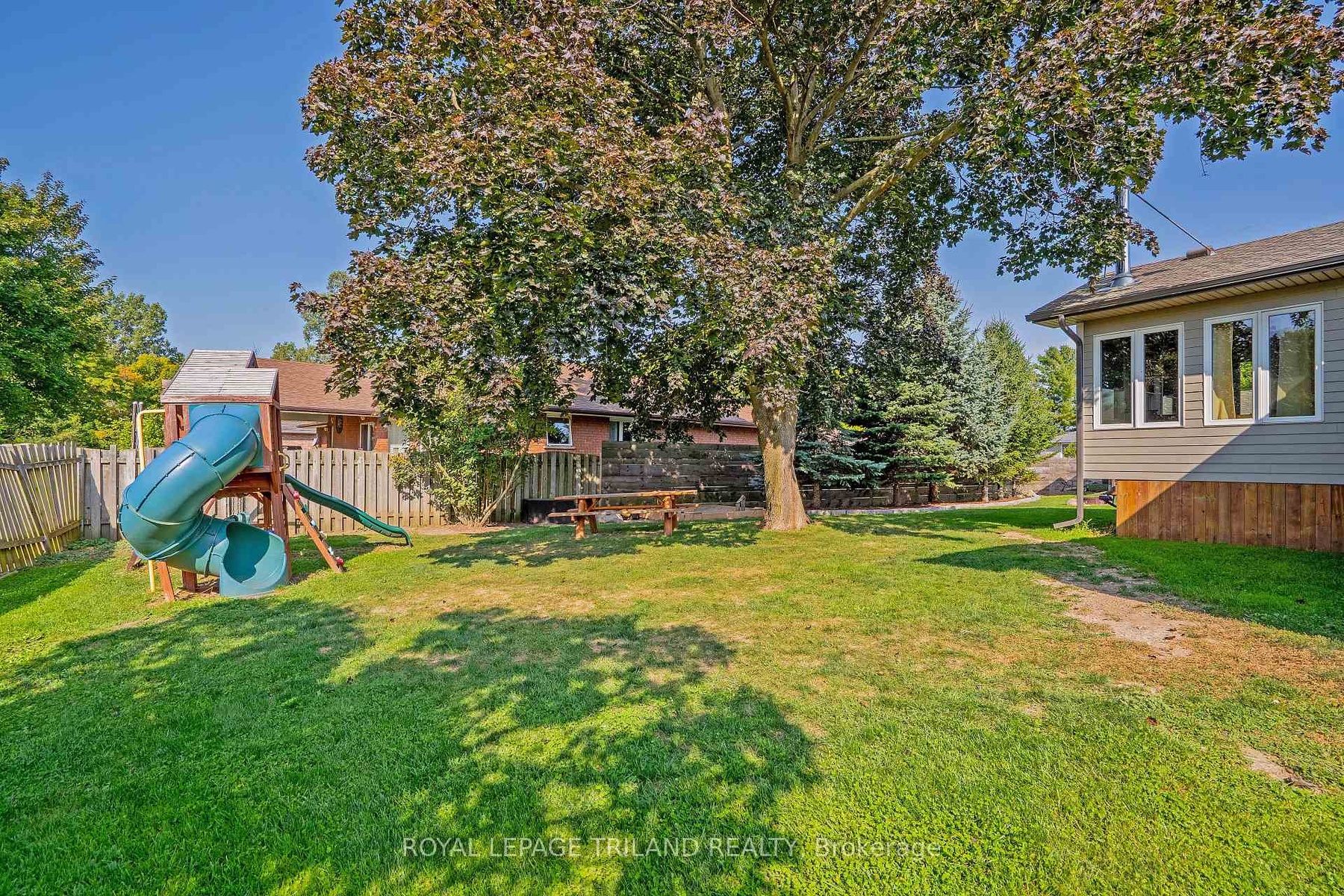 The home you have been waiting for!!!! This Fabulous Brick Bungalow sits on a double corner lot. Boasting, a paved semi-circle driveway, a huge double attached garage 27x24, plus a single detached garage, workshop or man cave 15x22 with 60 AMP service. The home features a country size Eat-in Kitchen with Granite Counter Tops 2024 and a very large Pantry. On top of this a Good Sized Living Room and Bonus Sun Room looking out over a Deck 2025 complete with Hot Tub and Landscaped Backyard featuring lots of Mature Trees and a New Shed 2025. Downstairs we have a Full Basement reno 2020, with a 40 by 12 Rec Room, Large Bathroom with Walk-in Glass Shower, Huge Laundry Room with Countertops and a 4th Bedroom or Office, Loads of Storage. On top of all this we have Garage Doors 2017, Furnace 2017, Windows 2018, Roof 2019, AC 2020, Siding, Soffit, Fascia and Eavestrough 2022, Owned Water Heater 2023, Lorex Security System 2024, Generator Plug and if that's not enough Permanent Christmas / Exterior Lighting 2024. Don't Miss This Opportunity to Own a Beautiful Property and a Quiet Lifestyle in the Village of Ailsa Craig. See this one First!!!!