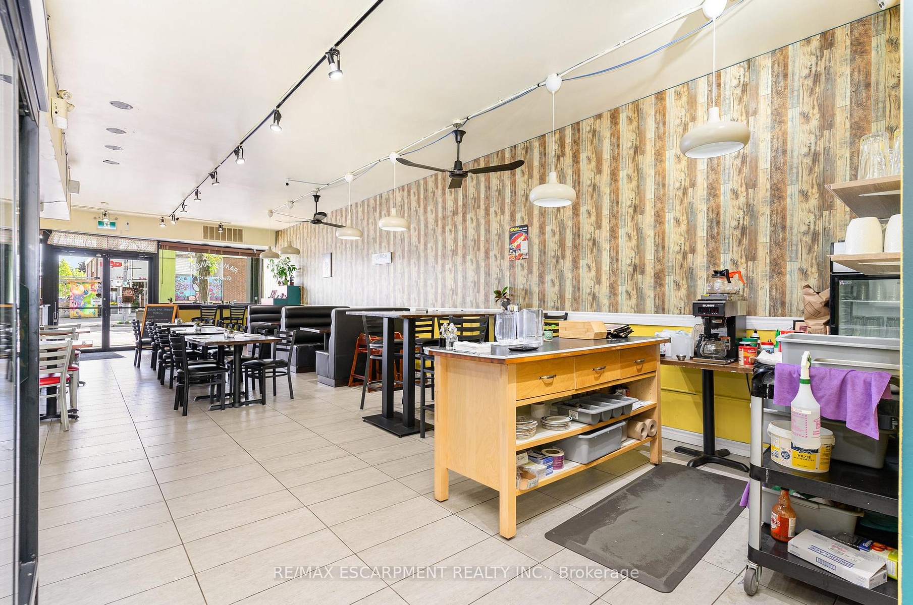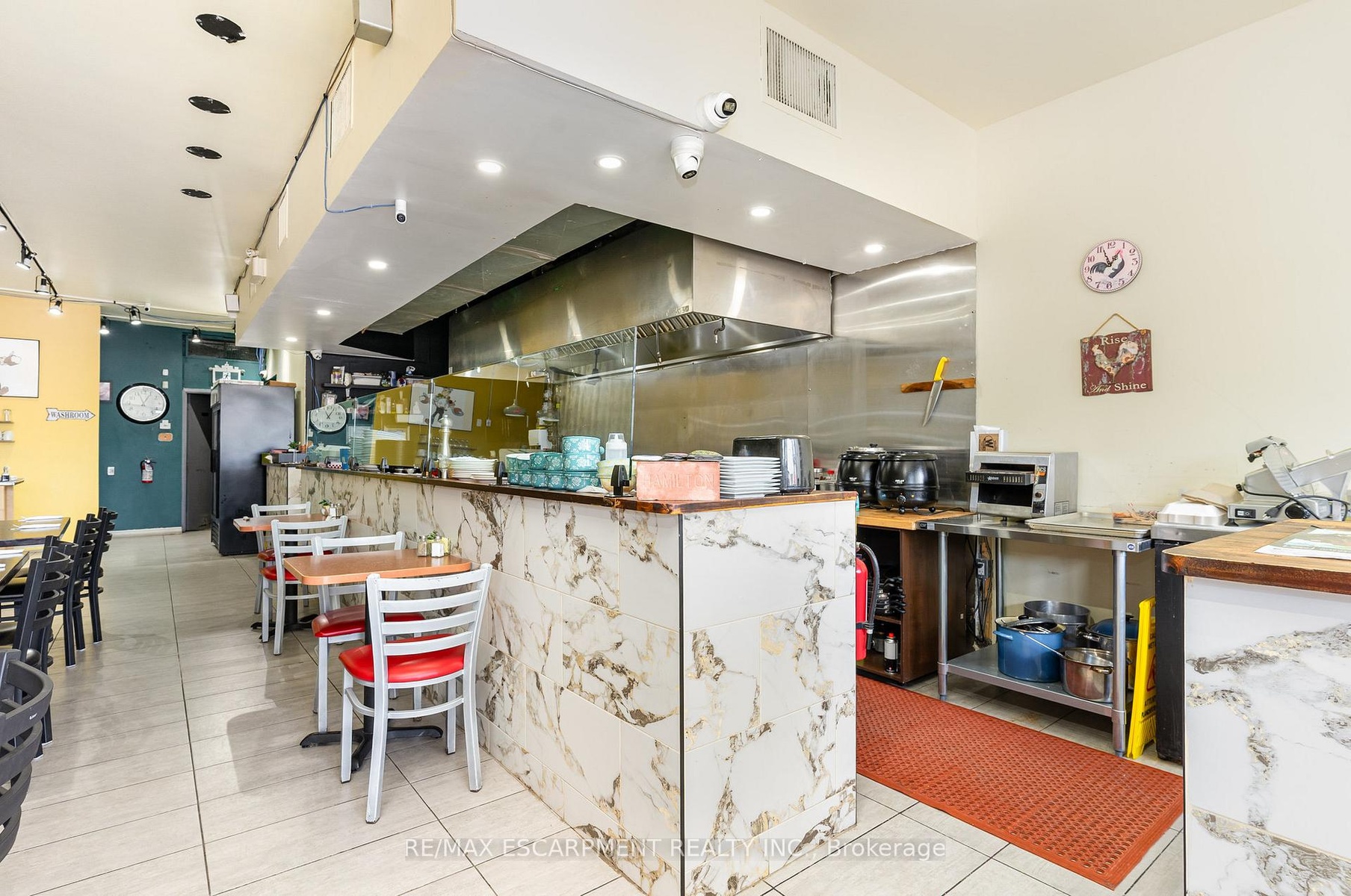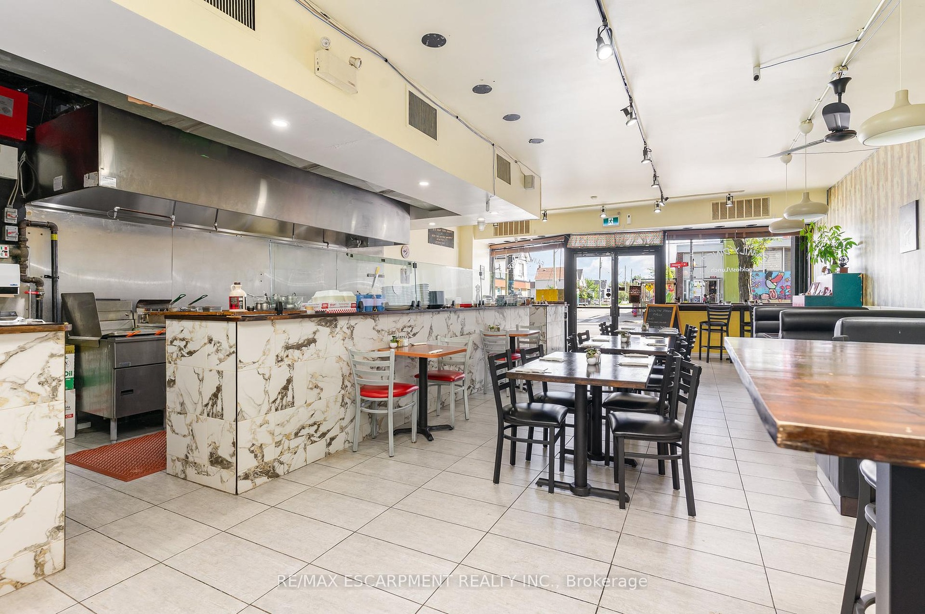 Prime Ottawa St North Building with established long term tenant and vacant bachelor apartment above. The 3000ft2 main level features an open kitchen and dining area, 2 accessible washrooms, large storage and prep space and direct access to the rear parking. Additional income potential or live work with the 2nd level bachelor apartment. Full height 1223ft2 basement offers opportunities for commissary kitchen and additional storage/prep space. New flat roof with transferable warranty installed Dec 2024,. New electrical, plumbing, fire suppression, ventilation, hood, all 2015-2016. Do not miss out, book your showing today!
