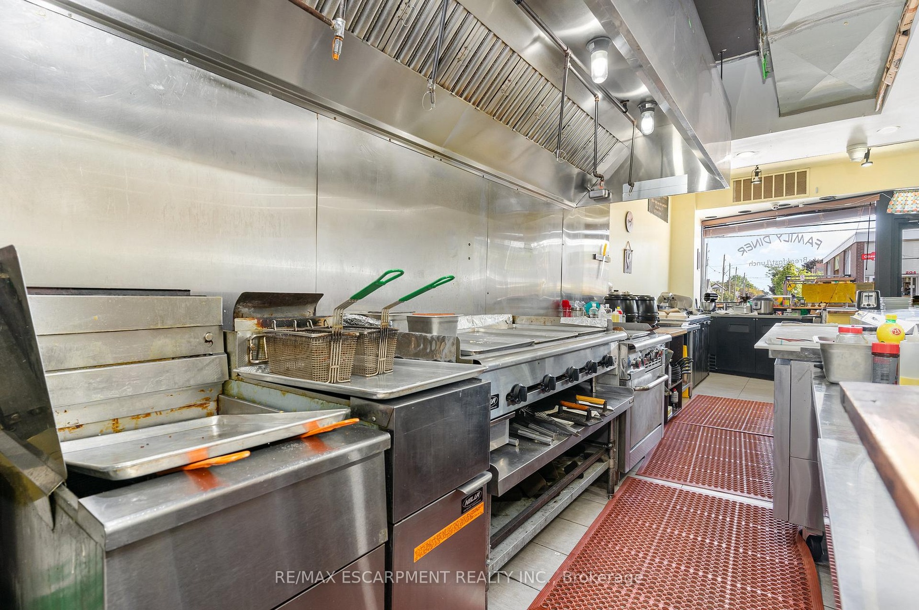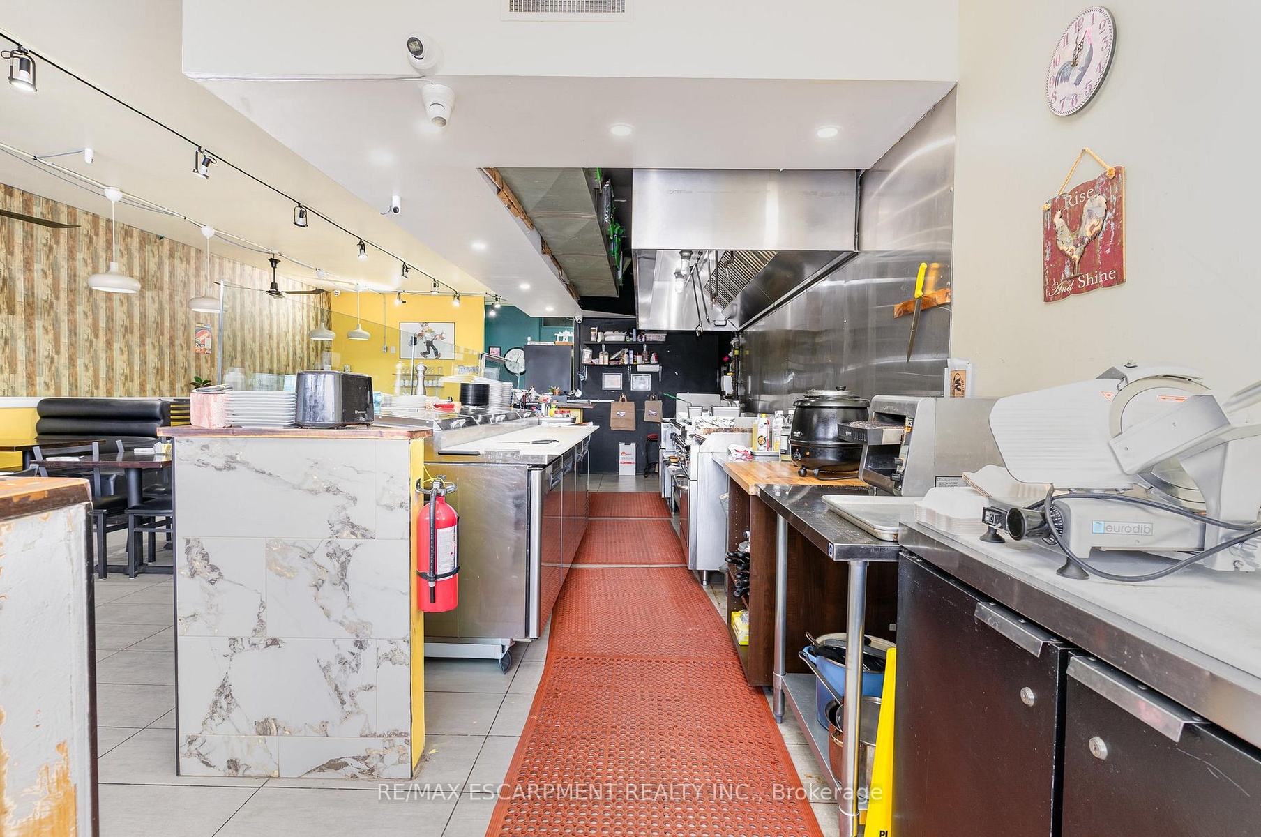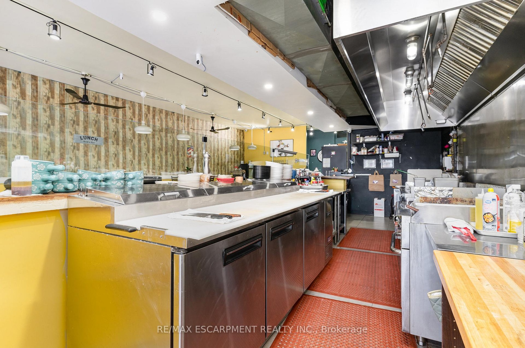 Prime Ottawa St North Building with established long term tenant and vacant bachelor apartment above. The 3000ft2 main level features an open kitchen and dining area, 2 accessible washrooms, large storage and prep space and direct access to the rear parking. Additional income potential or live work with the 2nd level bachelor apartment. Full height 1223ft2 basement offers opportunities for commissary kitchen and additional storage/prep space. New flat roof with transferable warranty installed Dec 2024,. New electrical, plumbing, fire suppression, ventilation, hood, all 2015-2016. Do not miss out, book your showing today!