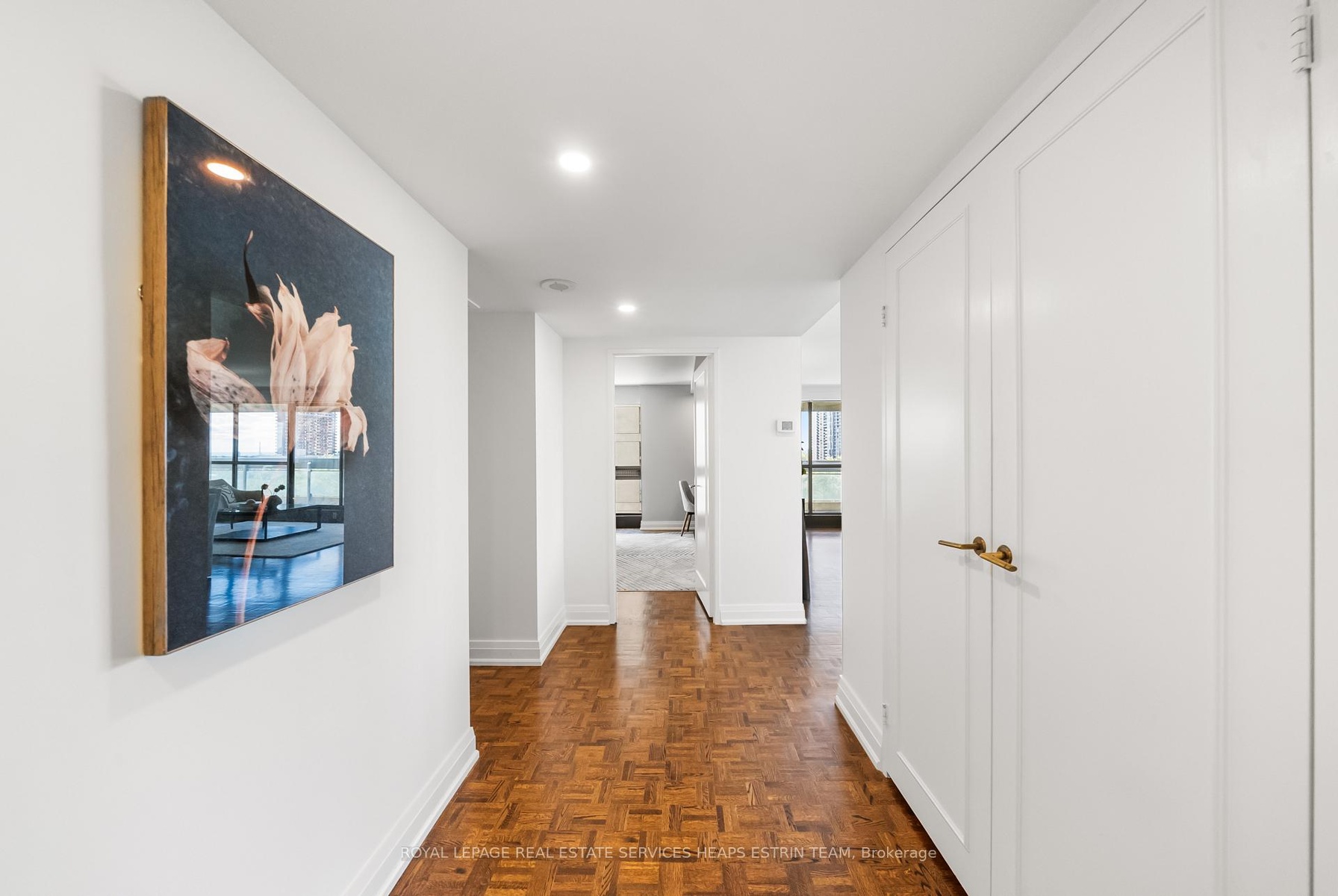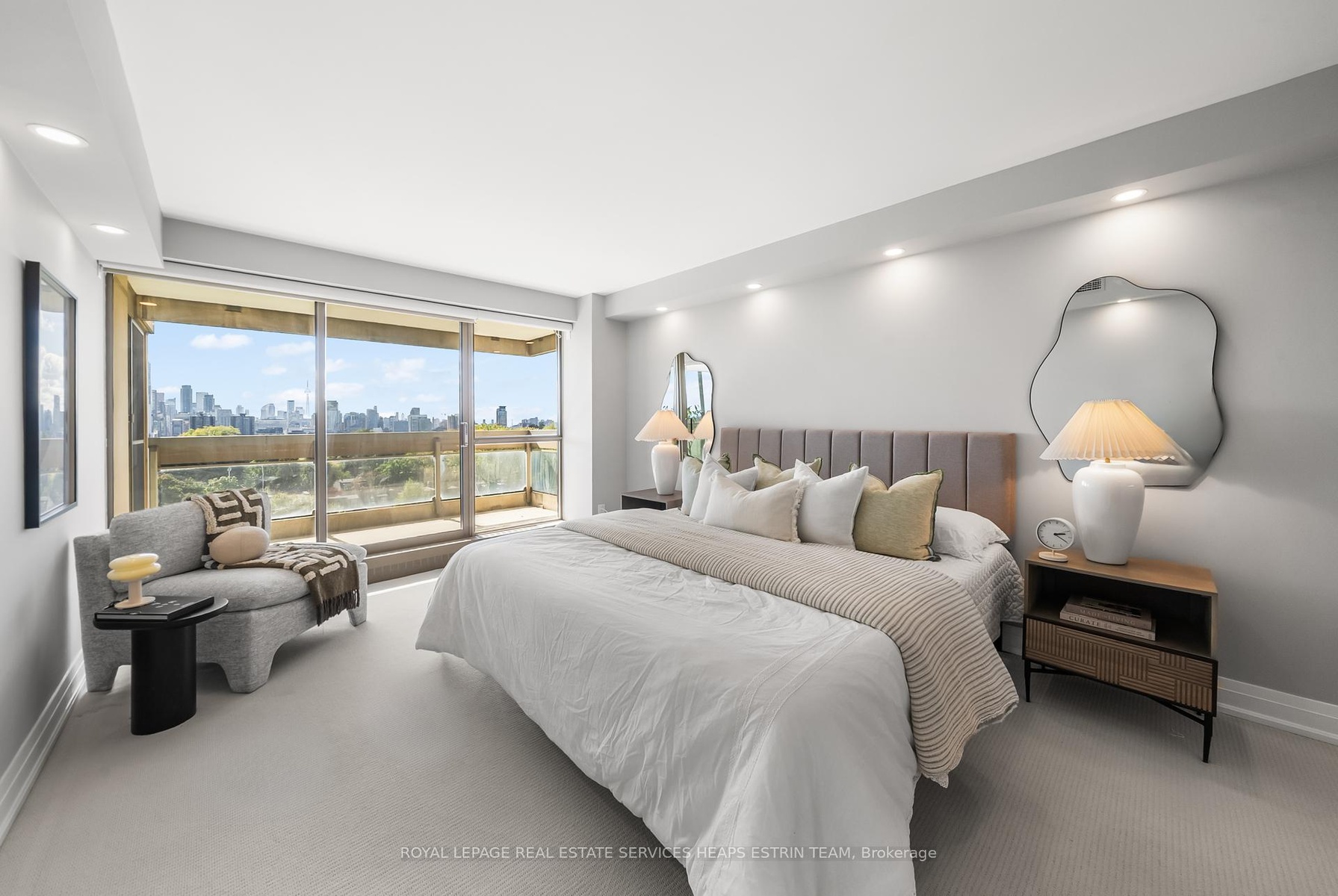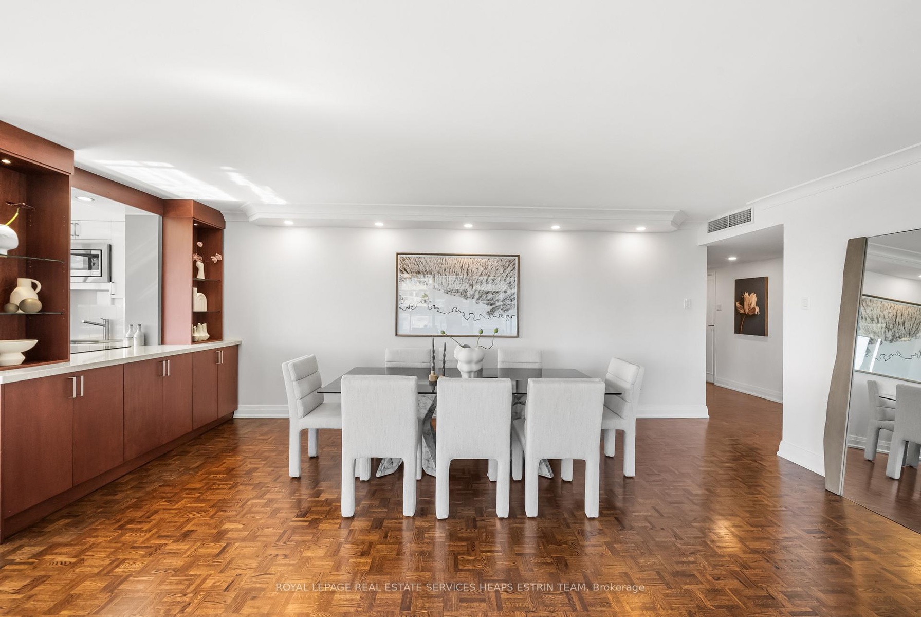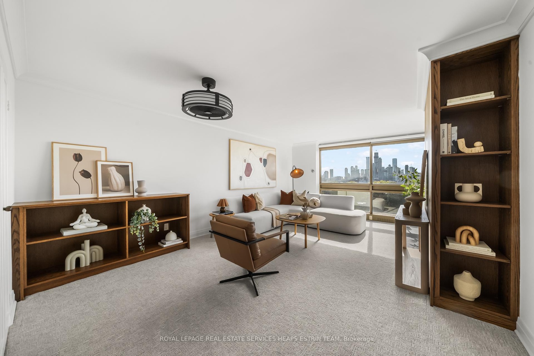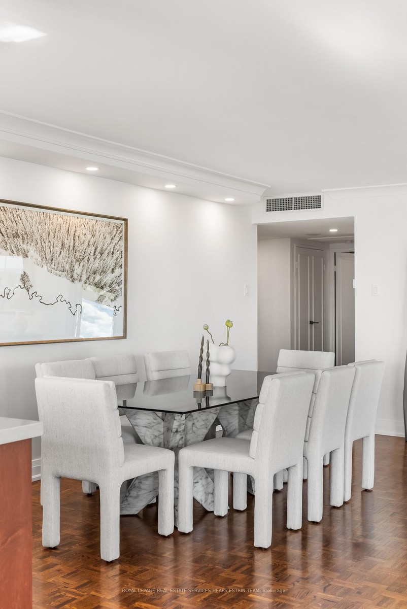 Welcome to Suite 907/908 at Granite Place, an expansive, light-filled southeast-facing corner suite offering stunning skyline and treetop views in one of midtown Torontos most prestigious buildings. With over 2,100 square feet of thoughtfully designed space, this beautifully upgraded three-bedroom residence blends elegance, comfort, and convenience in a location that defines walkable city living.From the moment you enter, hardwood floors and crown moulding guide you through a generous floor plan that effortlessly balances formal and informal living. The open-concept living and dining area offers a seamless flow for entertaining, with walk-out access to a private 200 sq.ft terrace showcasing breathtaking south-facing views of the city. The separate oversized family room, drenched in natural light, provides a versatile retreat for relaxing, reading, or hosting guests. An updated four piece bathroom adds convenience to the main living space.The renovated kitchen features clean contemporary lines, stainless steel appliances, and ample storage, perfect for daily function or hosting with ease. The homes three bedrooms are each generously scaled, including two potential primary retreats, both offering ensuite bathrooms and excellent closet space for modern comfort. The third bedroom adds versatility for a home office with built-ins, a den or guest bedroom.Residents of Granite Place enjoy a host of premium, resort-style amenities, including an indoor saltwater pool and whirlpool, well-equipped exercise room, yoga studio, saunas, and a multi-purpose room with a catering kitchen and walk-out patio. A beautifully landscaped garden creates a quiet, green setback from St. Clair, while attentive 24-hour concierge service and welcoming building staff elevate everyday comfort and security. The suite also includes two parking spaces and two oversized lockers.