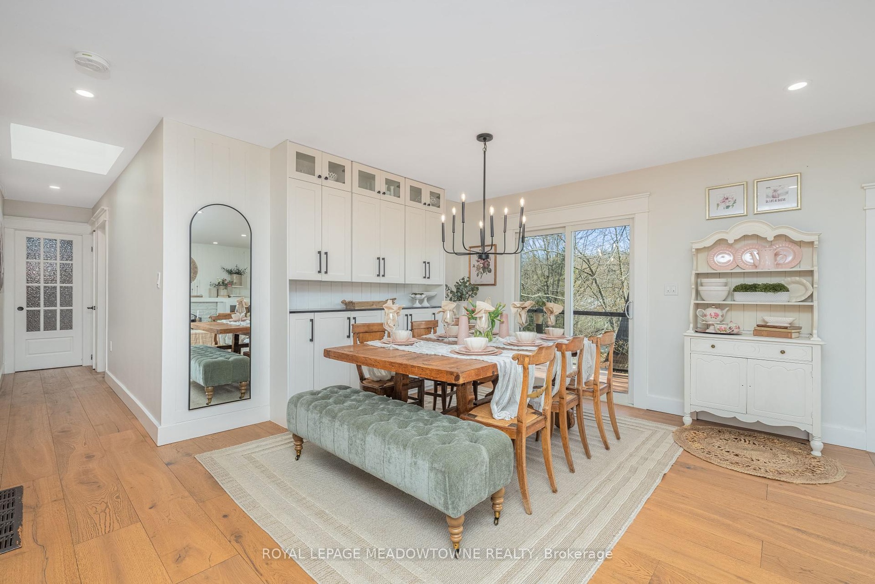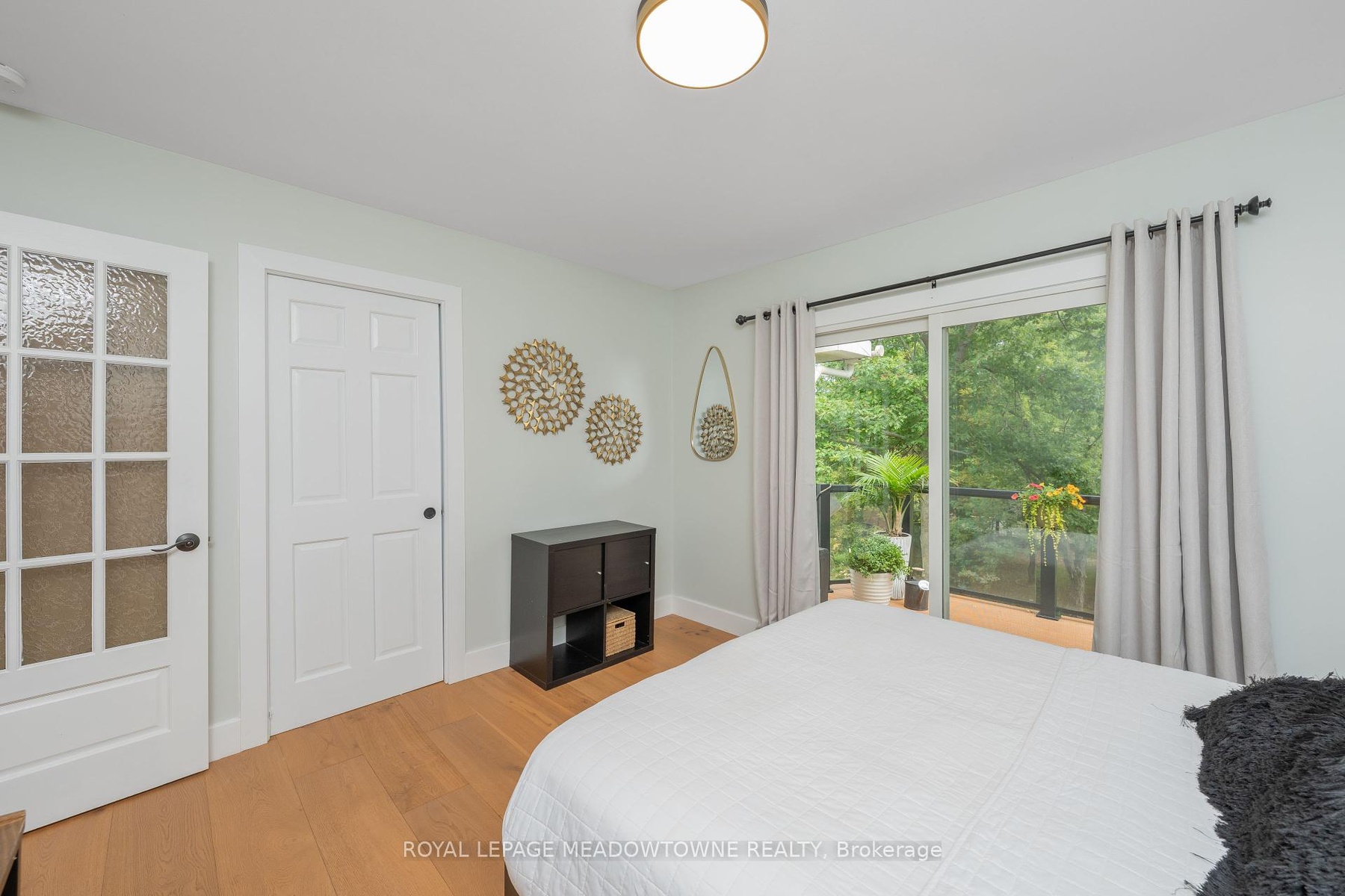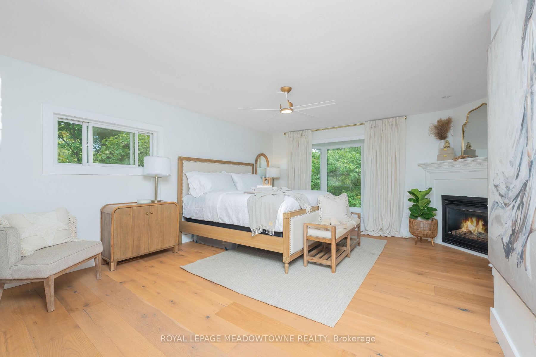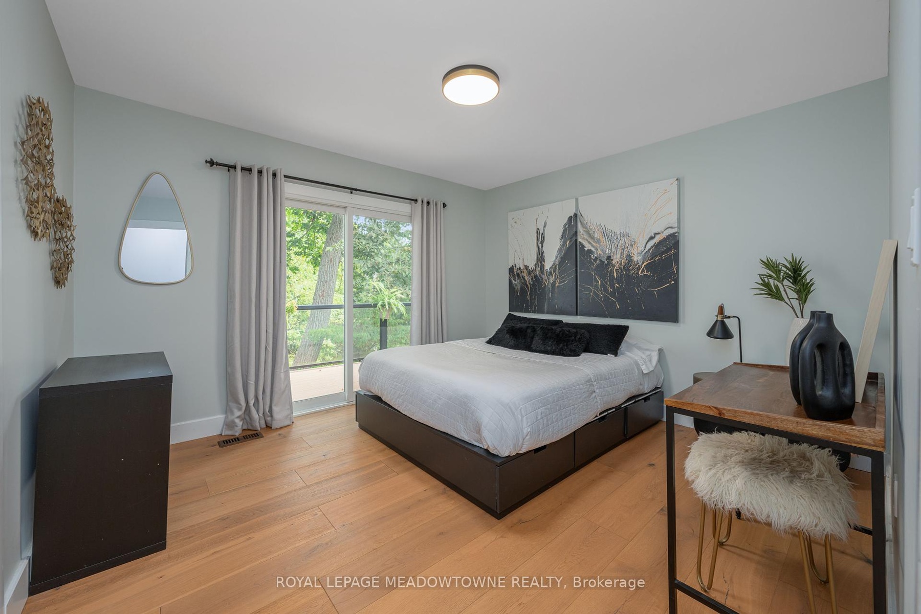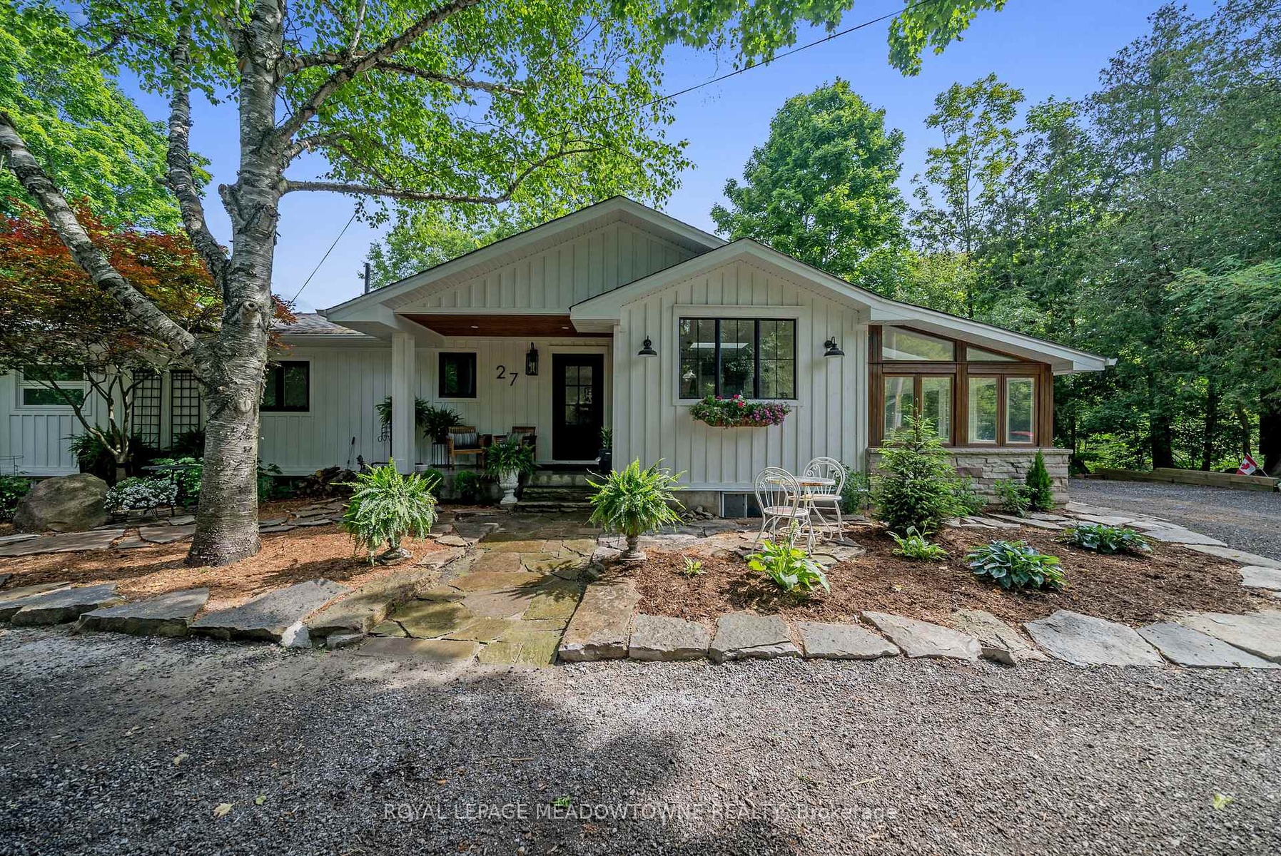 Welcome to this beautifully reimagined 4-bedroom home, privately nestled along a quiet gravel lane in the scenic village of Glen Williams. Set on nearly an acre with uninterrupted, year-round views of the Credit River, this property offers a rare fusion of peaceful nature and modern elegance. Step into the inviting sunroom -- bathed in natural light, its the perfect space to welcome guests, set up a creative home office, or simply relax with a good book. Inside, the main floor features stunning white oak floors and a breezy, open-concept layout that effortlessly connects the kitchen, dining, and living areas -- ideal for both everyday life and memorable entertaining. At the heart of the home, the chef-inspired kitchen combines functionality with elevated design. It boasts top-of-the-line Café appliances, ample cabinetry, and a striking picture window above the sink, framing views of the surrounding landscape. Upstairs, the serene primary suite offers a generous retreat, complete with a contemporary ensuite and space to unwind. Glass railings lead to the fully finished walkout basement, where abundant natural light and luxury vinyl plank flooring create a warm, open ambiance. This level includes a spacious family room, an additional bedroom and full bathroom, plus a versatile workshop area that could easily serve as a guest suite or creative studio. Outside, expansive decks provide a front-row seat to the river's beauty -- perfect for morning coffee, weekend lounging, or evenings under the stars. Offering the best of both worlds, this secluded escape is just seven minutes from the Georgetown GO Station, putting city access within easy reach while enjoying the charm and tranquility of Glen Williams.