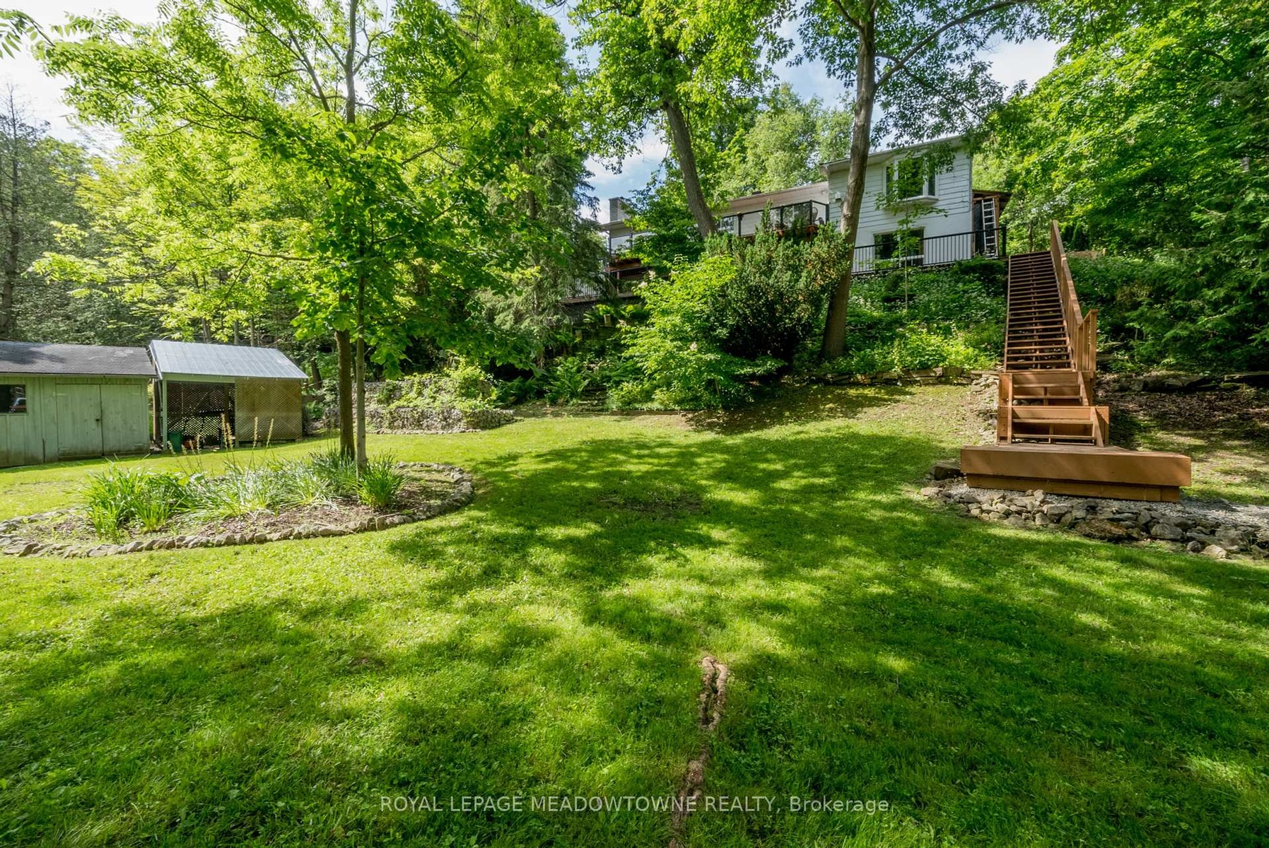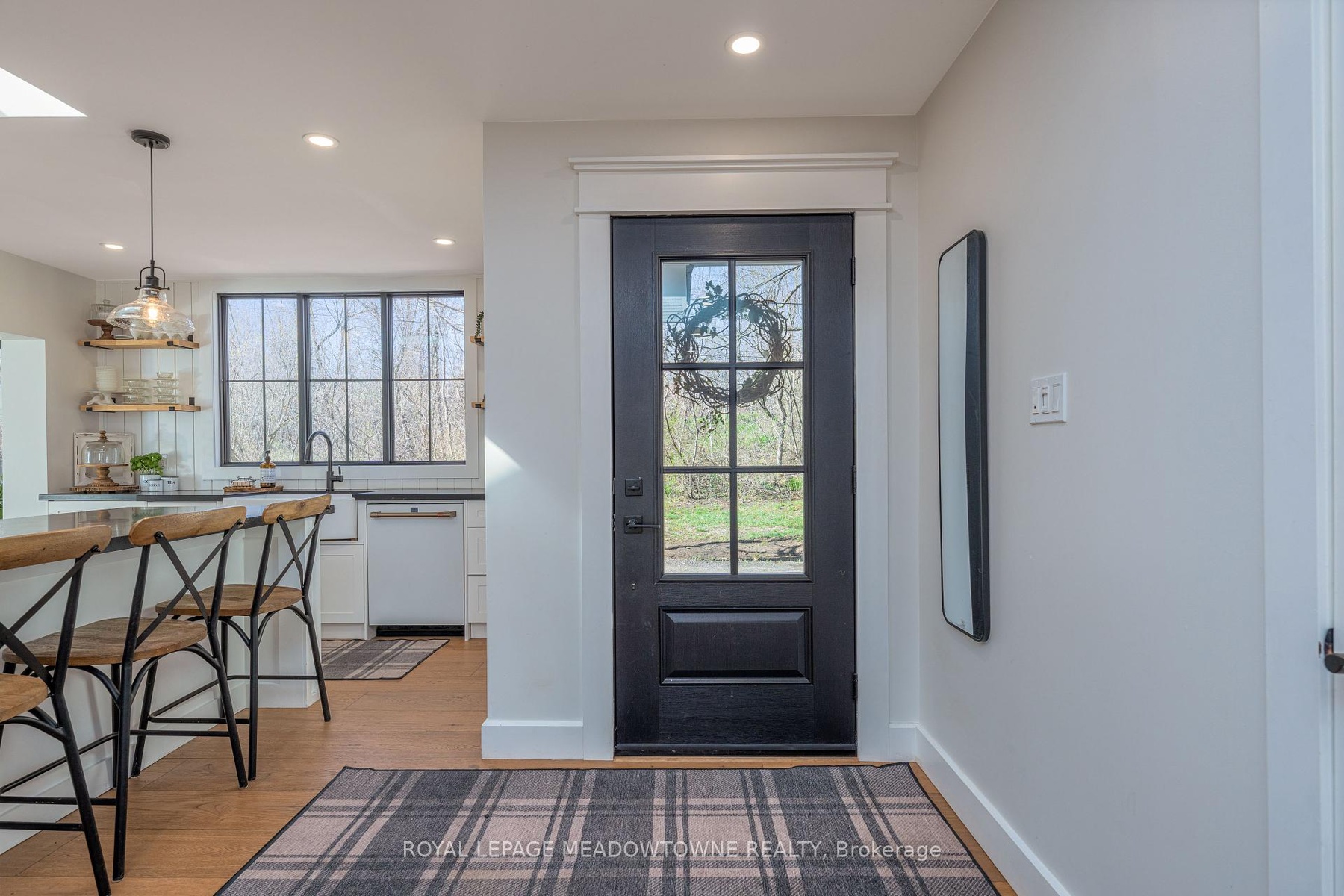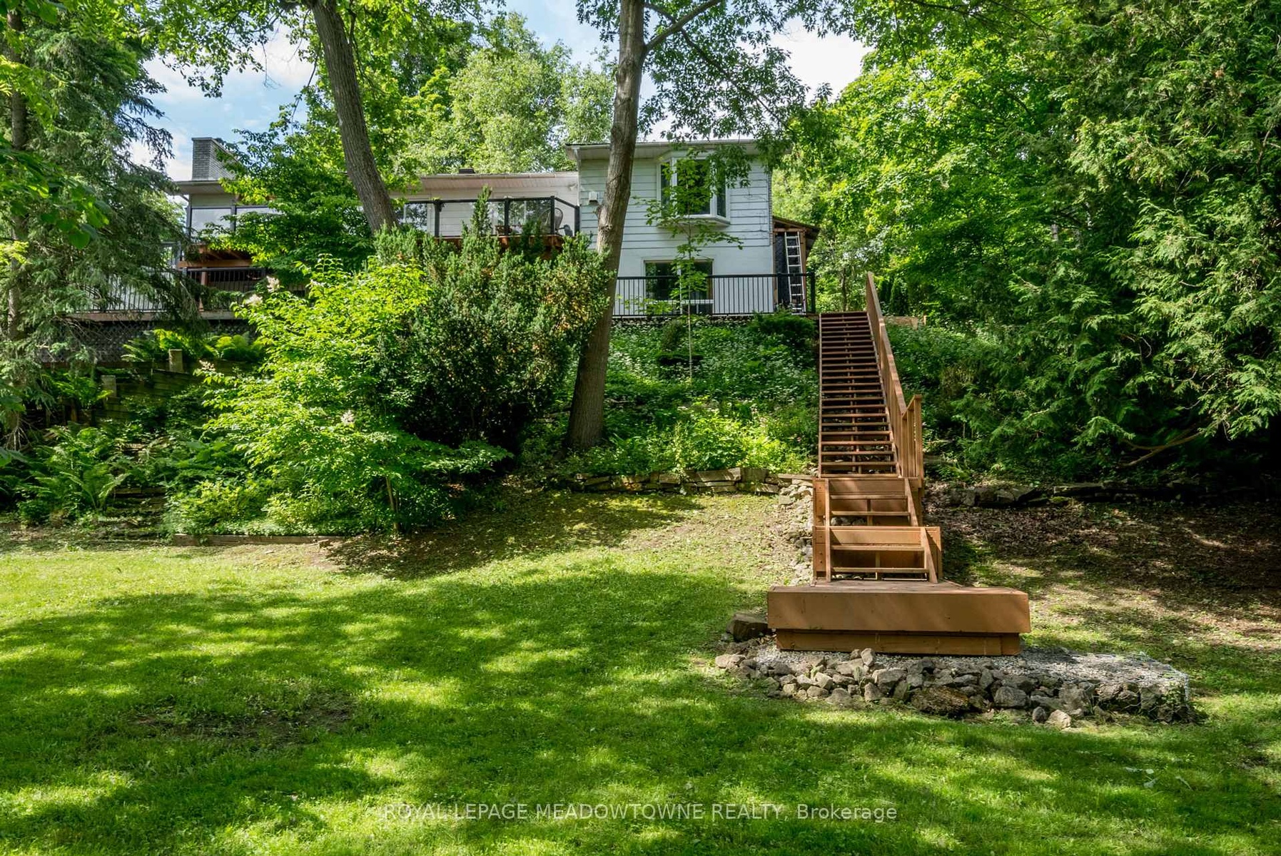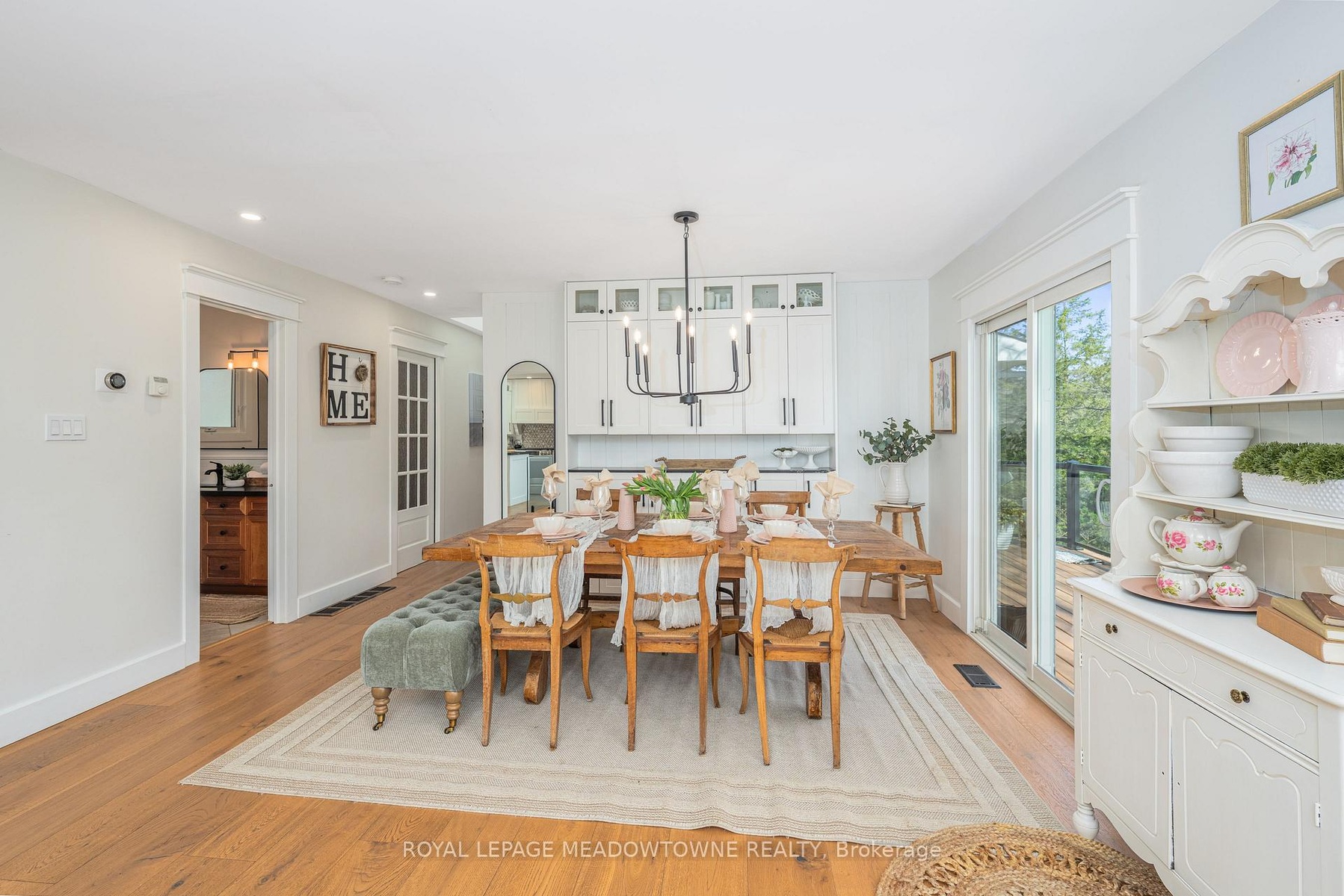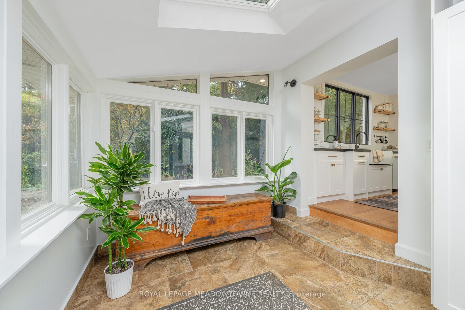 Welcome to this beautifully reimagined 4-bedroom home, privately nestled along a quiet gravel lane in the scenic village of Glen Williams. Set on nearly an acre with uninterrupted, year-round views of the Credit River, this property offers a rare fusion of peaceful nature and modern elegance. Step into the inviting sunroom -- bathed in natural light, its the perfect space to welcome guests, set up a creative home office, or simply relax with a good book. Inside, the main floor features stunning white oak floors and a breezy, open-concept layout that effortlessly connects the kitchen, dining, and living areas -- ideal for both everyday life and memorable entertaining. At the heart of the home, the chef-inspired kitchen combines functionality with elevated design. It boasts top-of-the-line Café appliances, ample cabinetry, and a striking picture window above the sink, framing views of the surrounding landscape. Upstairs, the serene primary suite offers a generous retreat, complete with a contemporary ensuite and space to unwind. Glass railings lead to the fully finished walkout basement, where abundant natural light and luxury vinyl plank flooring create a warm, open ambiance. This level includes a spacious family room, an additional bedroom and full bathroom, plus a versatile workshop area that could easily serve as a guest suite or creative studio. Outside, expansive decks provide a front-row seat to the river's beauty -- perfect for morning coffee, weekend lounging, or evenings under the stars. Offering the best of both worlds, this secluded escape is just seven minutes from the Georgetown GO Station, putting city access within easy reach while enjoying the charm and tranquility of Glen Williams.