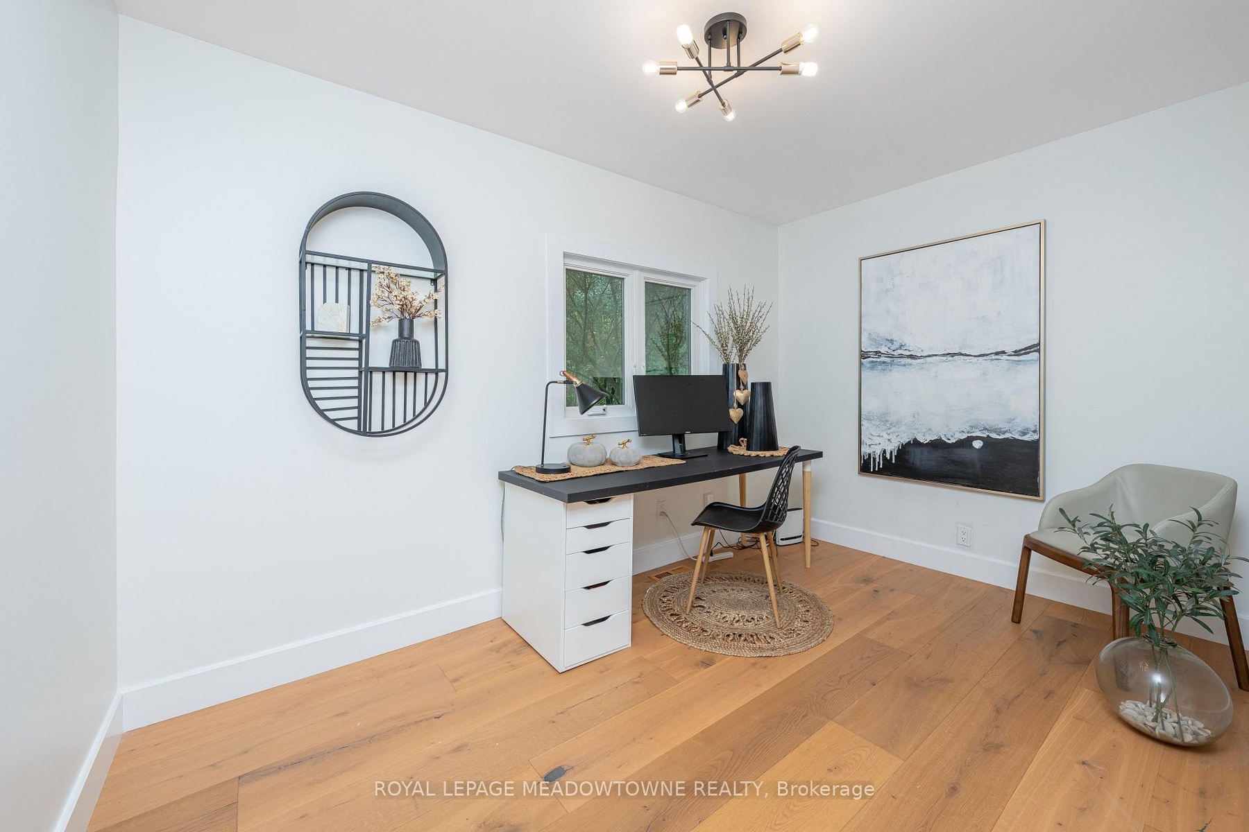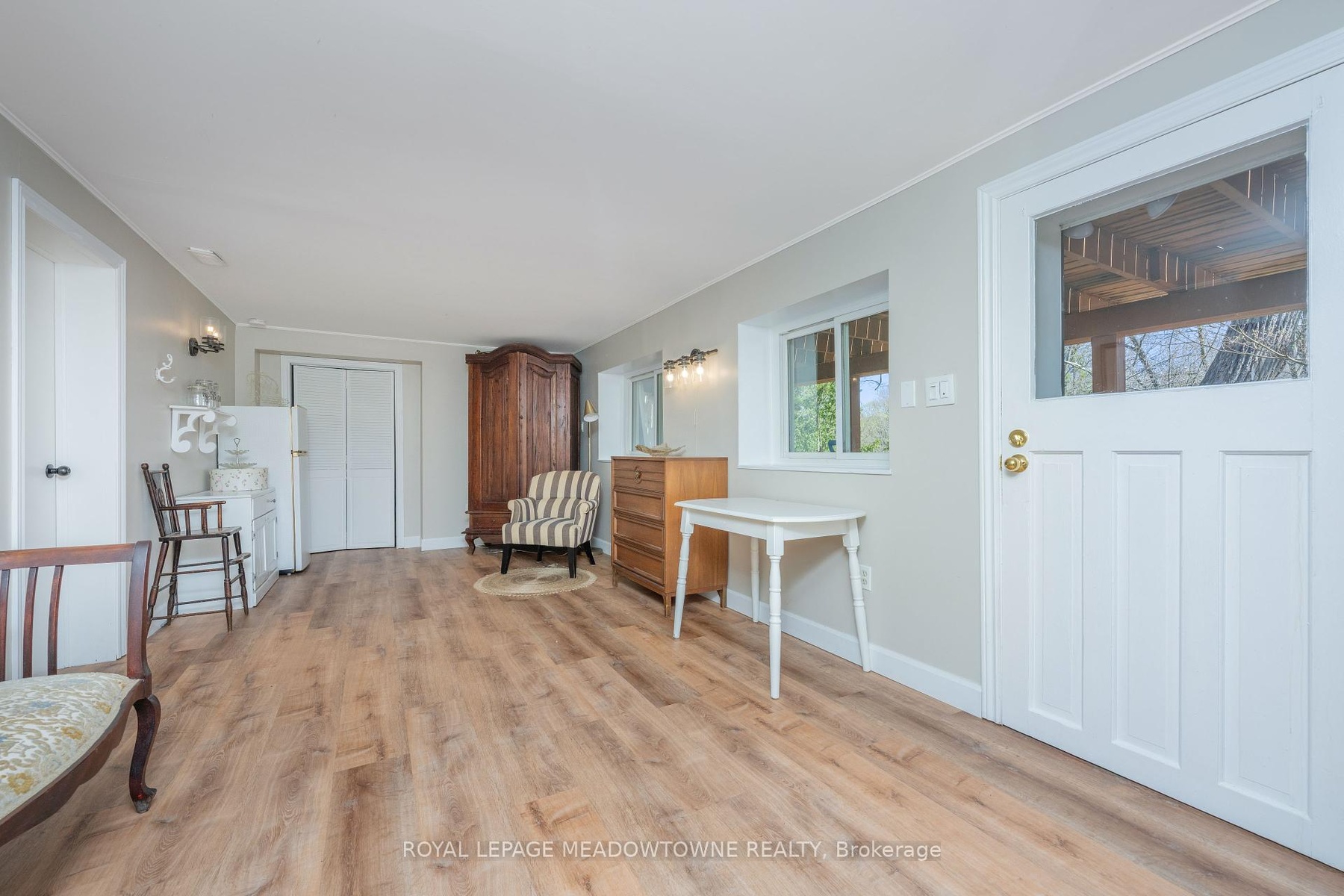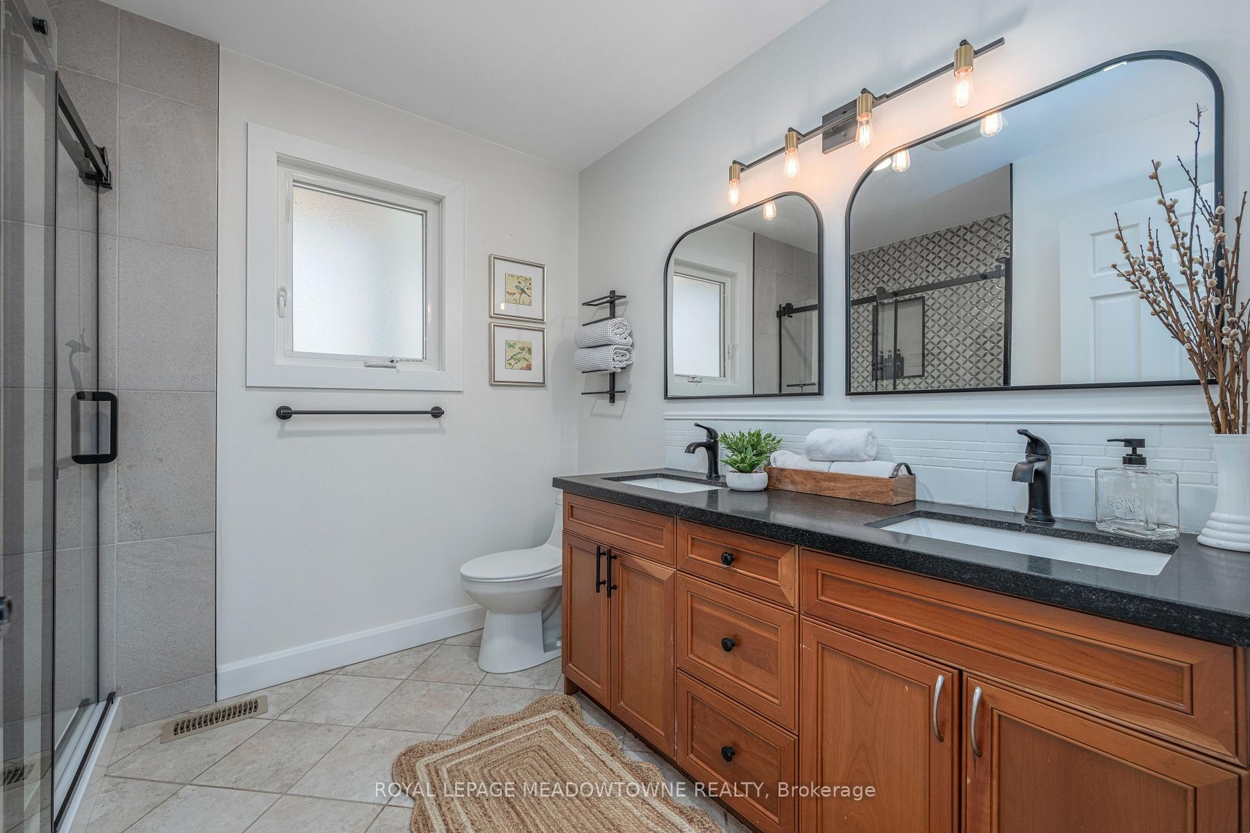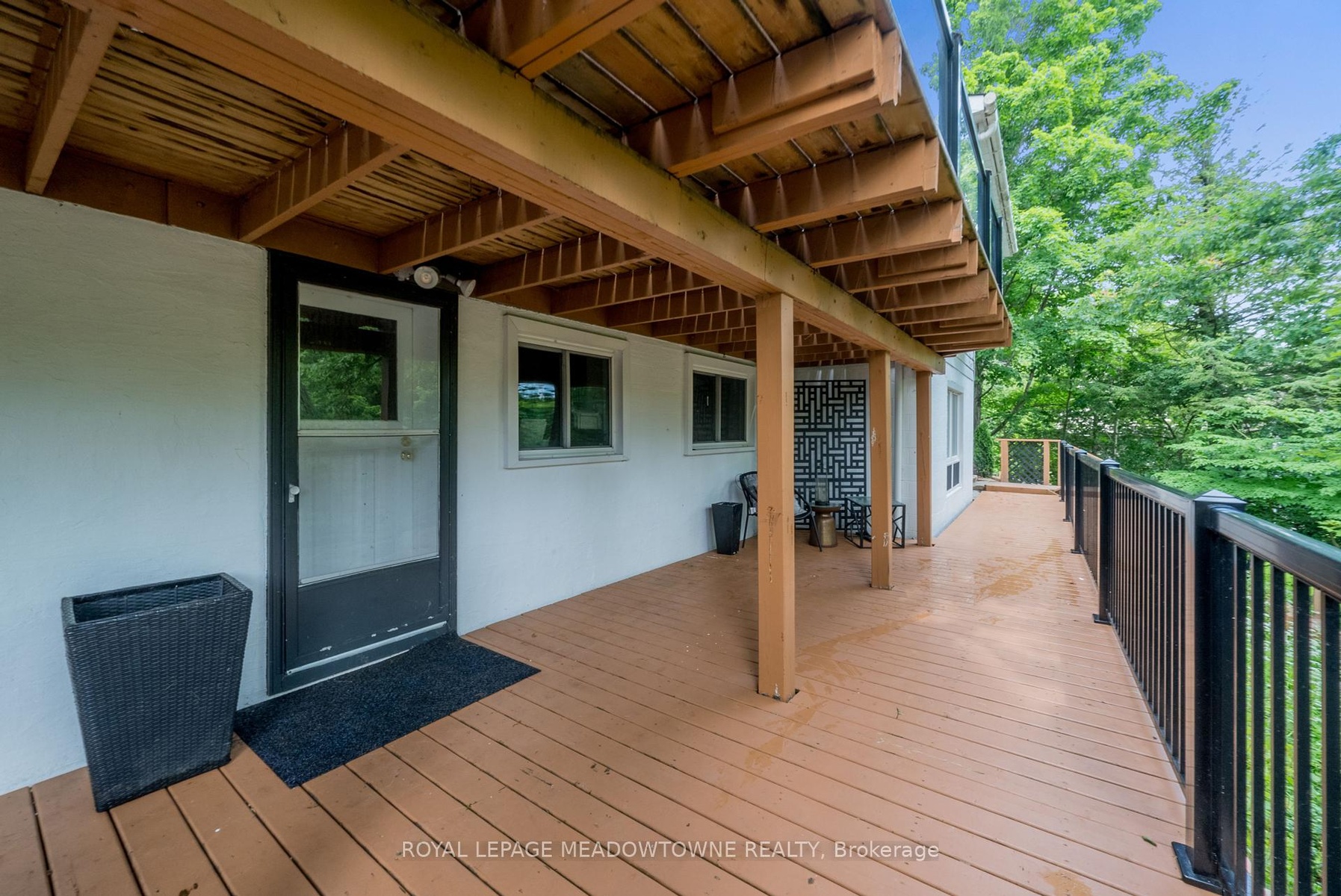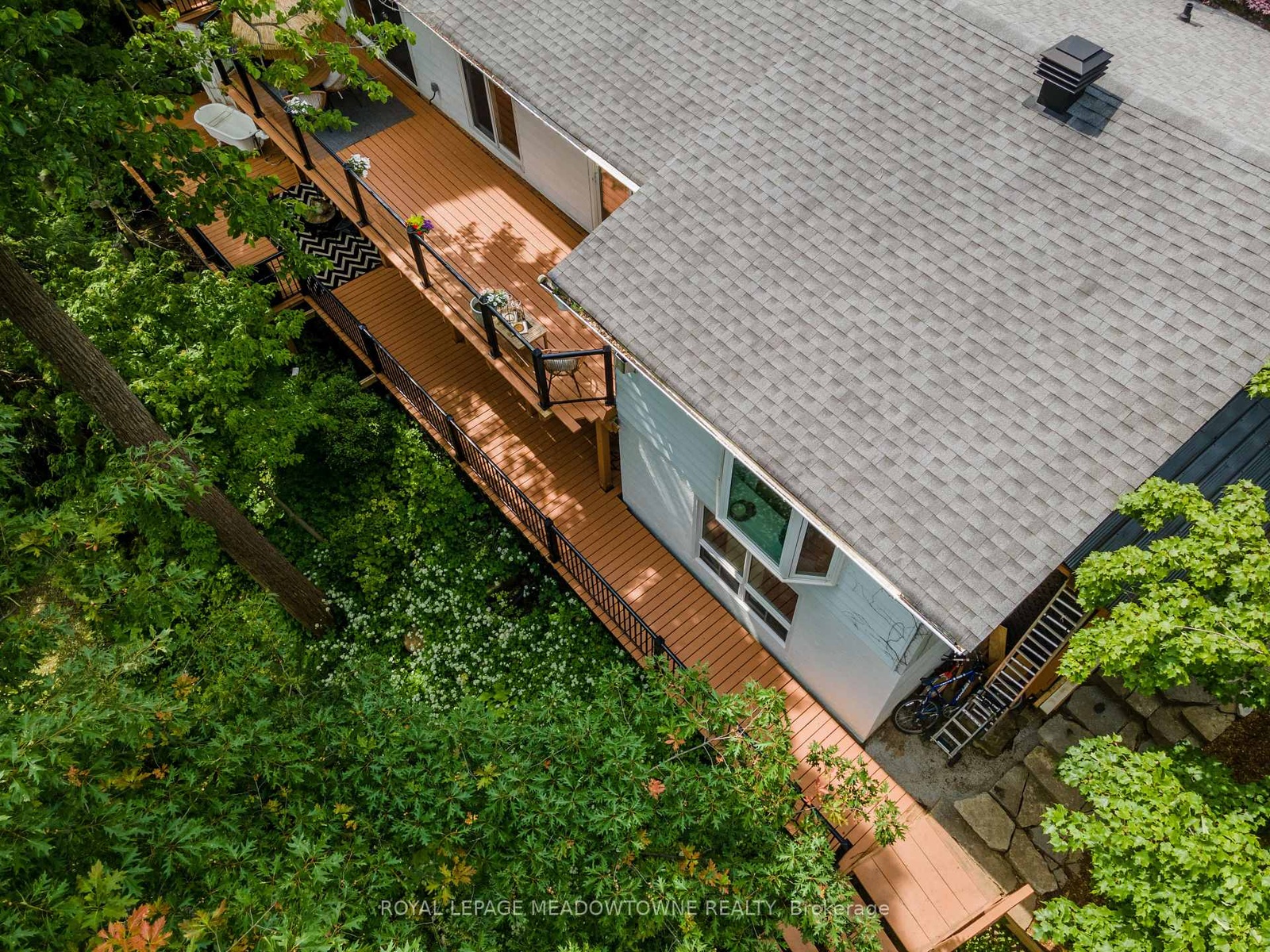 Welcome to this beautifully reimagined 4-bedroom home, privately nestled along a quiet gravel lane in the scenic village of Glen Williams. Set on nearly an acre with uninterrupted, year-round views of the Credit River, this property offers a rare fusion of peaceful nature and modern elegance. Step into the inviting sunroom -- bathed in natural light, its the perfect space to welcome guests, set up a creative home office, or simply relax with a good book. Inside, the main floor features stunning white oak floors and a breezy, open-concept layout that effortlessly connects the kitchen, dining, and living areas -- ideal for both everyday life and memorable entertaining. At the heart of the home, the chef-inspired kitchen combines functionality with elevated design. It boasts top-of-the-line Café appliances, ample cabinetry, and a striking picture window above the sink, framing views of the surrounding landscape. Upstairs, the serene primary suite offers a generous retreat, complete with a contemporary ensuite and space to unwind. Glass railings lead to the fully finished walkout basement, where abundant natural light and luxury vinyl plank flooring create a warm, open ambiance. This level includes a spacious family room, an additional bedroom and full bathroom, plus a versatile workshop area that could easily serve as a guest suite or creative studio. Outside, expansive decks provide a front-row seat to the river's beauty -- perfect for morning coffee, weekend lounging, or evenings under the stars. Offering the best of both worlds, this secluded escape is just seven minutes from the Georgetown GO Station, putting city access within easy reach while enjoying the charm and tranquility of Glen Williams.