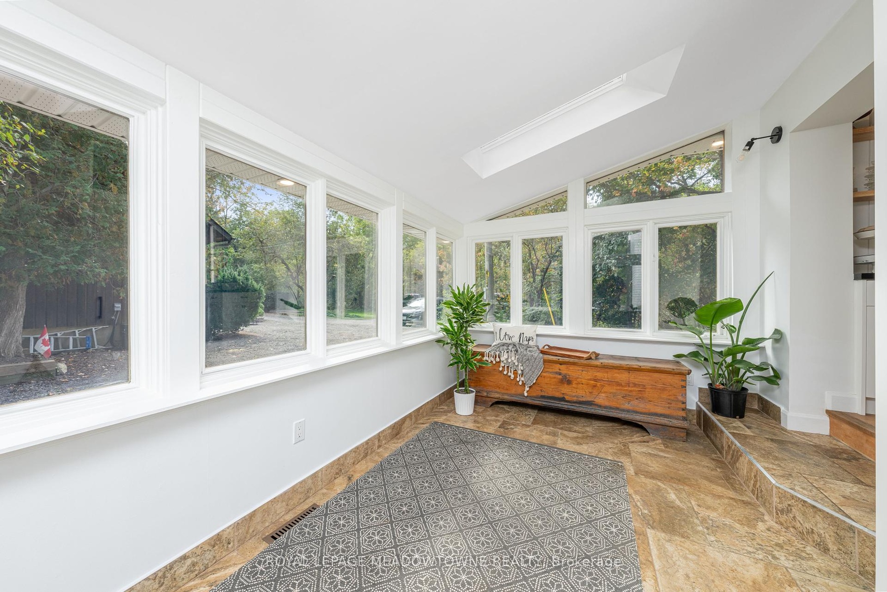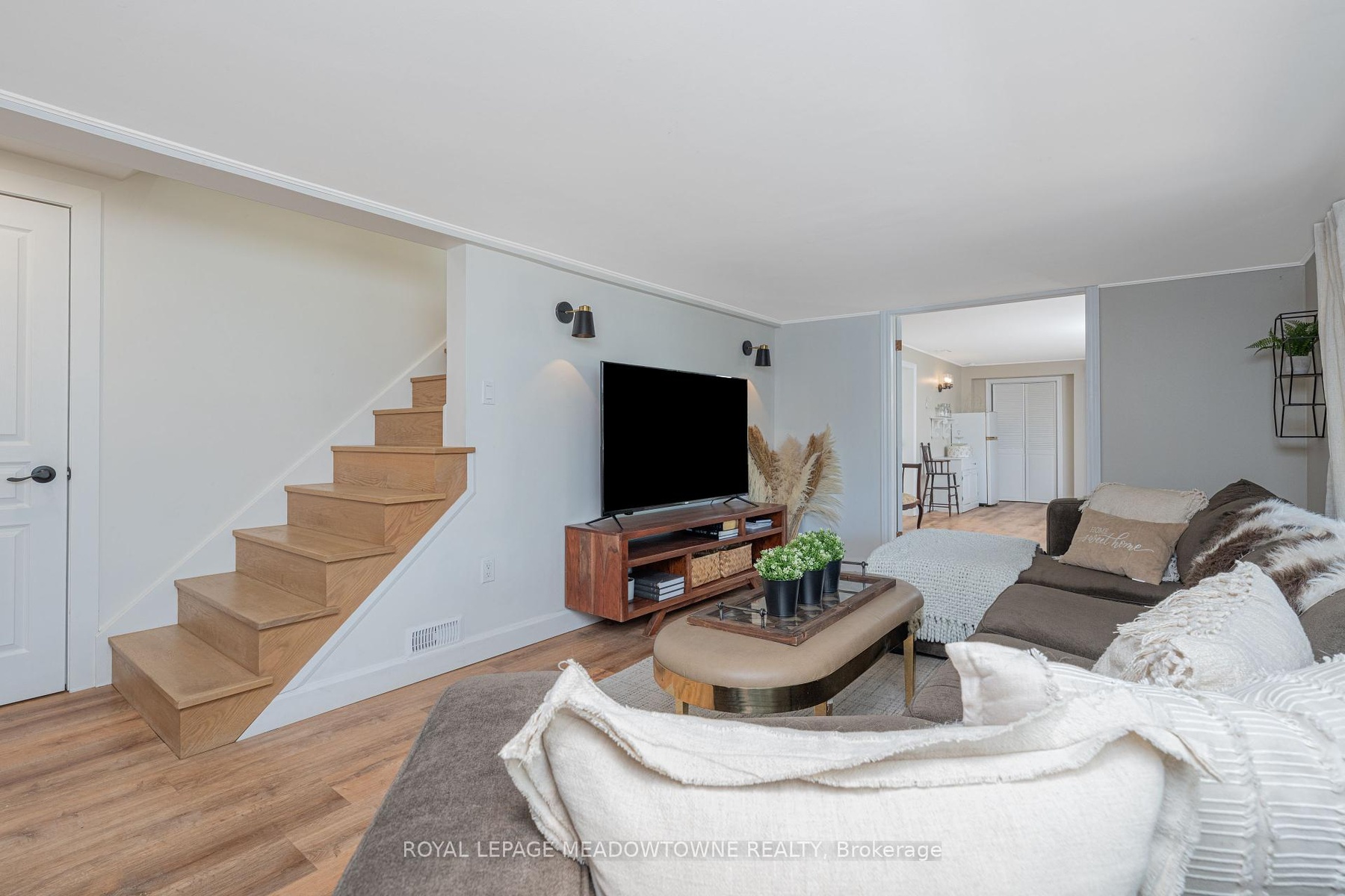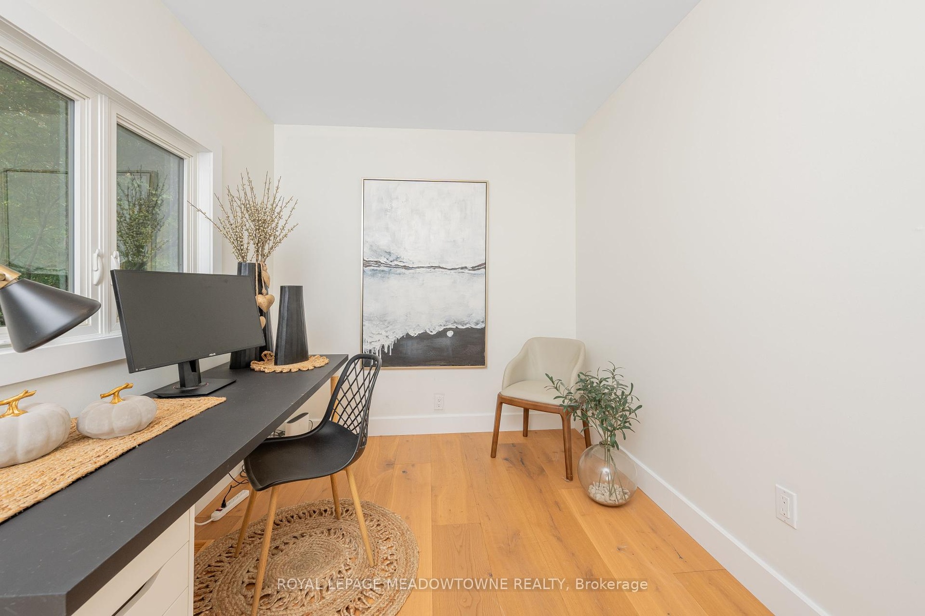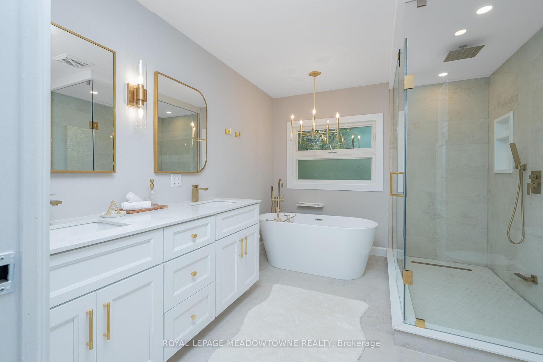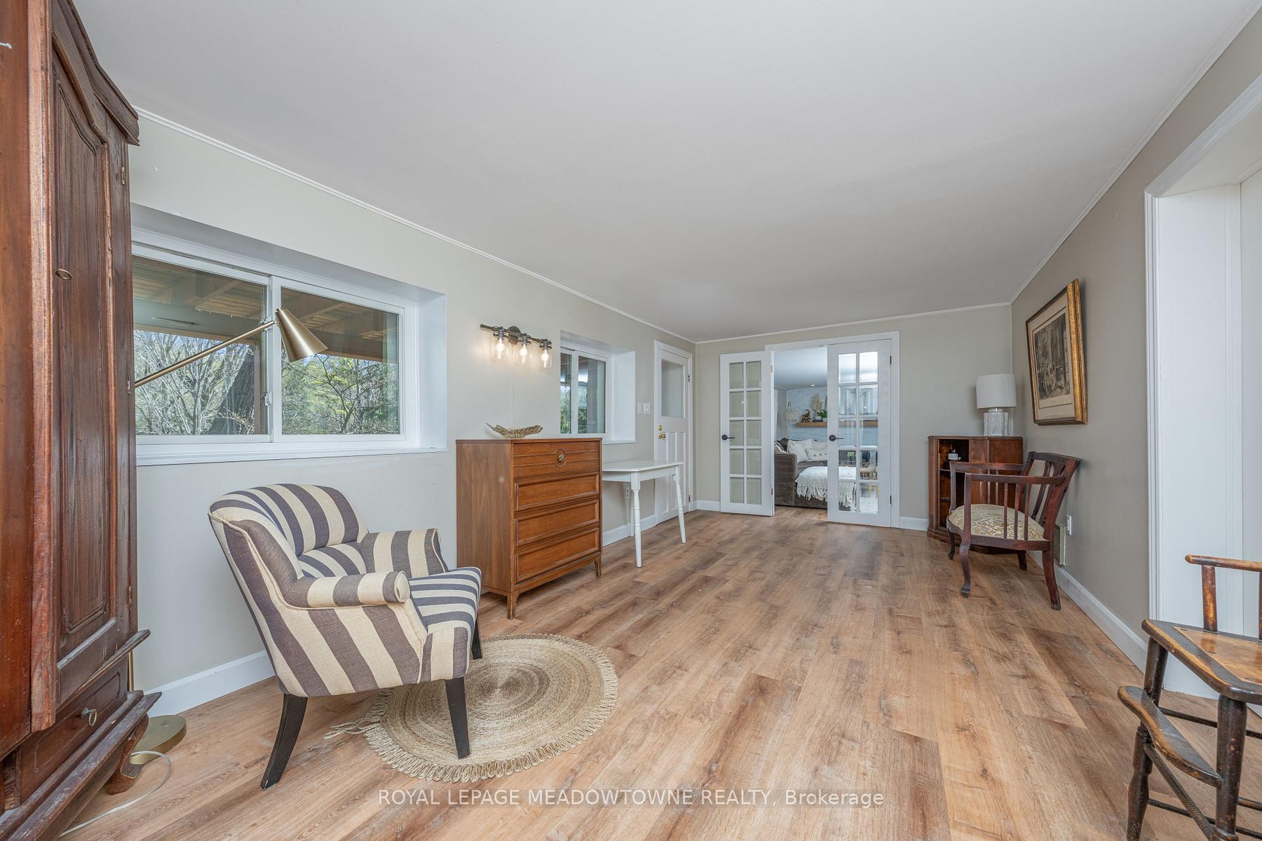 Welcome to this beautifully reimagined 4-bedroom home, privately nestled along a quiet gravel lane in the scenic village of Glen Williams. Set on nearly an acre with uninterrupted, year-round views of the Credit River, this property offers a rare fusion of peaceful nature and modern elegance. Step into the inviting sunroom -- bathed in natural light, its the perfect space to welcome guests, set up a creative home office, or simply relax with a good book. Inside, the main floor features stunning white oak floors and a breezy, open-concept layout that effortlessly connects the kitchen, dining, and living areas -- ideal for both everyday life and memorable entertaining. At the heart of the home, the chef-inspired kitchen combines functionality with elevated design. It boasts top-of-the-line Café appliances, ample cabinetry, and a striking picture window above the sink, framing views of the surrounding landscape. Upstairs, the serene primary suite offers a generous retreat, complete with a contemporary ensuite and space to unwind. Glass railings lead to the fully finished walkout basement, where abundant natural light and luxury vinyl plank flooring create a warm, open ambiance. This level includes a spacious family room, an additional bedroom and full bathroom, plus a versatile workshop area that could easily serve as a guest suite or creative studio. Outside, expansive decks provide a front-row seat to the river's beauty -- perfect for morning coffee, weekend lounging, or evenings under the stars. Offering the best of both worlds, this secluded escape is just seven minutes from the Georgetown GO Station, putting city access within easy reach while enjoying the charm and tranquility of Glen Williams.