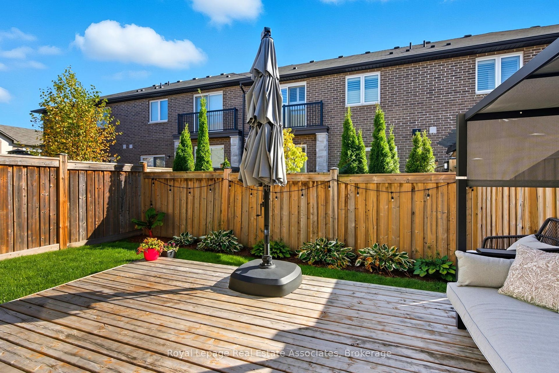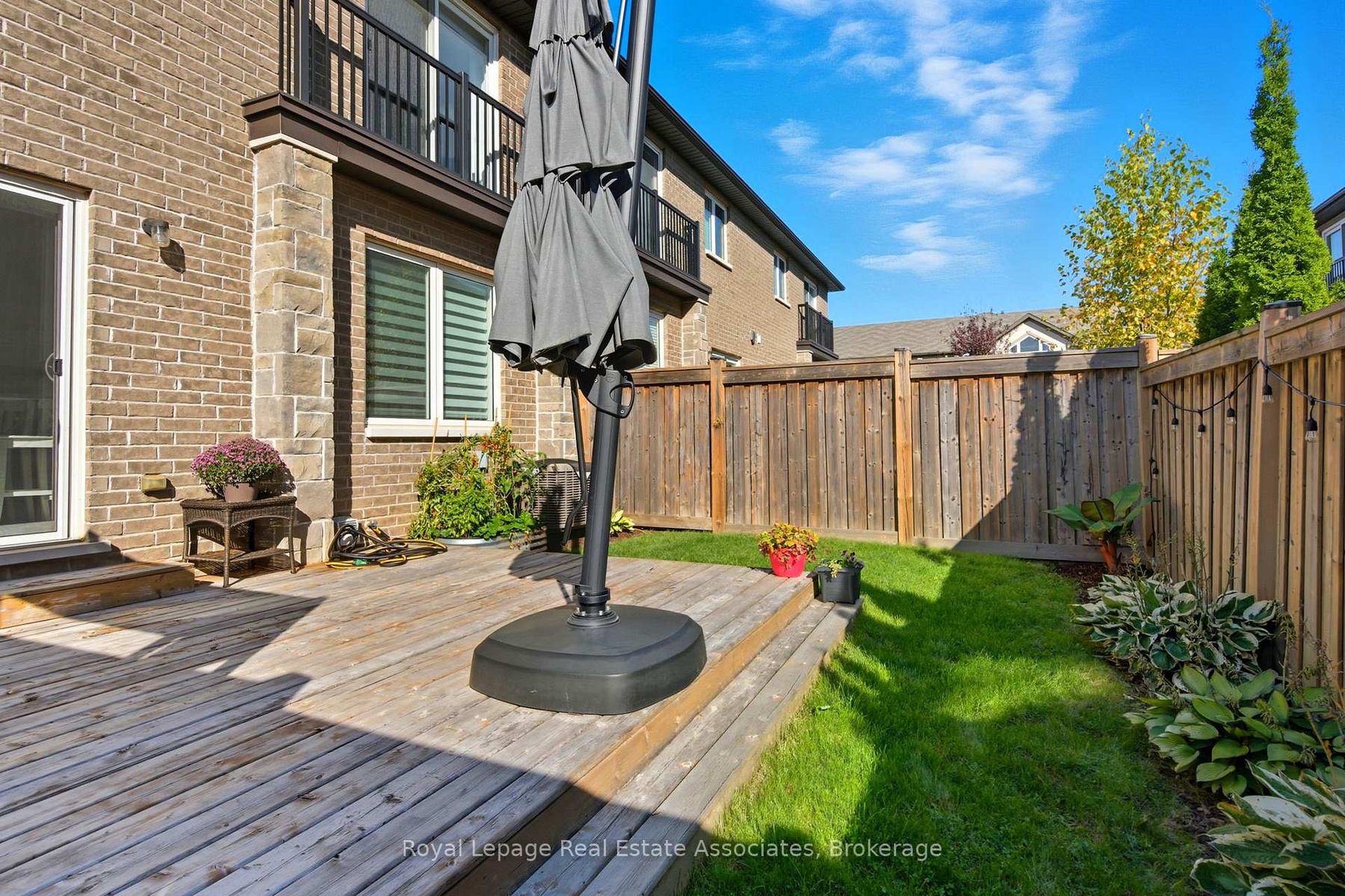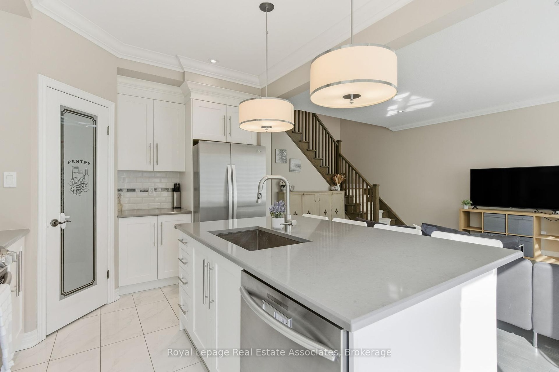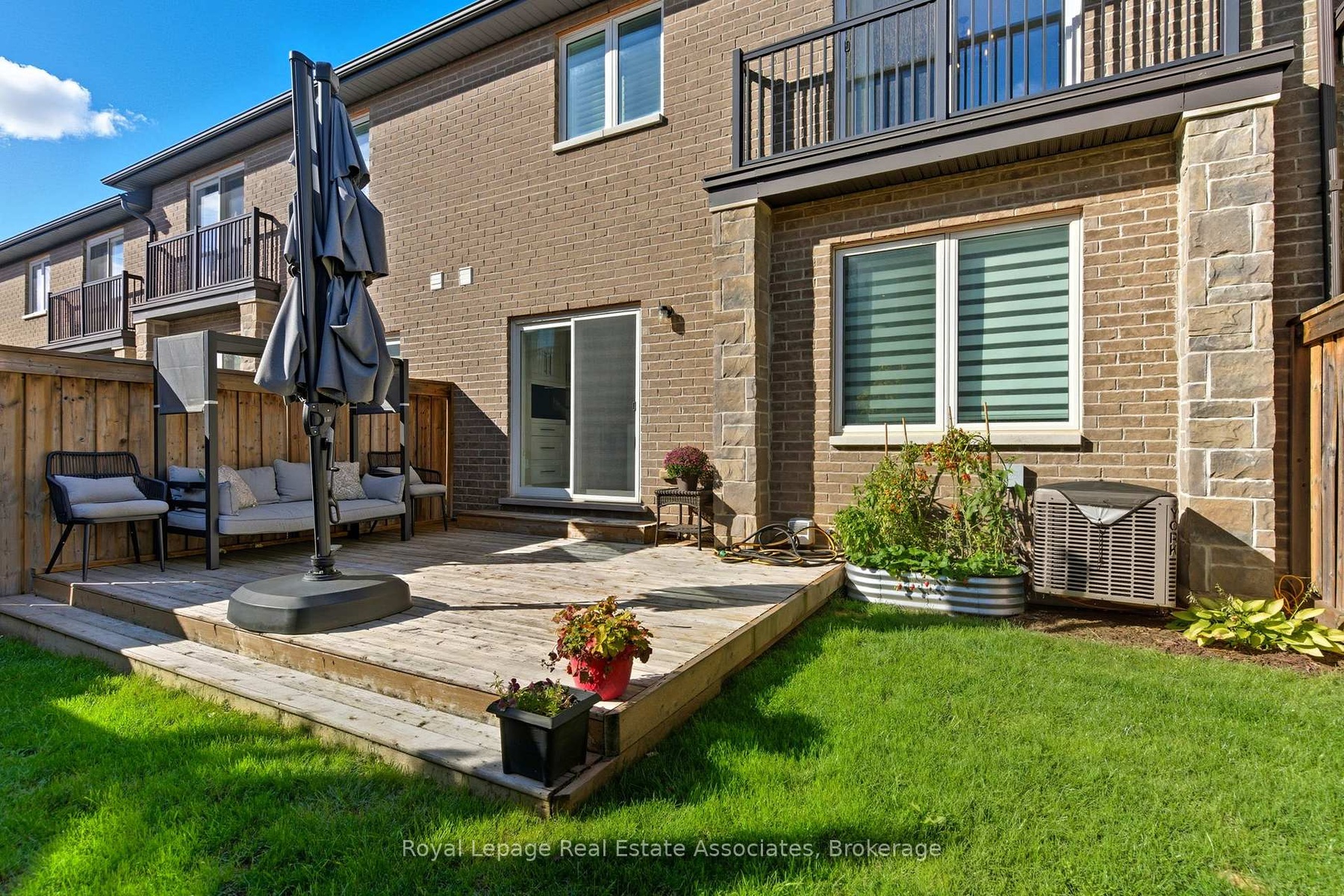 Welcome to this gorgeous FREEHOLD Executive Townhome. Located in a quiet and secluded enclave this beautiful home is located in in the south end of the Meadowlands, and is just minutes to Redeemer College, Meadowlands Plaza, offering quick Highway access and more. Boasting an excellent floor plan with over 1700 square feet complete with 3 Bedrooms, 3 Bathrooms this is the one you've been waiting for! The main floor of this home has an excellent layout complete with a formal dining room, spacious living room open to a beautiful white kitchen with breakfast island, high end appliances, walk in pantry, and direct back yard access. The beautifully appointed main floor features dark strip hardwood, California knock down ceilings, neutral paint tones, inside garage access, and 2 piece powder room. The upper level of this home is sure to impress with its spacious and functional layout. The Primary Retreat features broadloom carpeting, Juliette balcony, 5 piece spa like en-suite with glassed in shower and soaker tub, and a large walk in closet. The 2 additional bedrooms both generous in size feature broadloom carpeting, and double closets. The main 4 piece bathroom is the perfect size with a shower tub combination, oversized vanity and ceramic tiles. The unfinished basement awaits your finishing touches. If you've been looking for high end finishings, a spacious floor plan and prime location this one ticks all the boxes!