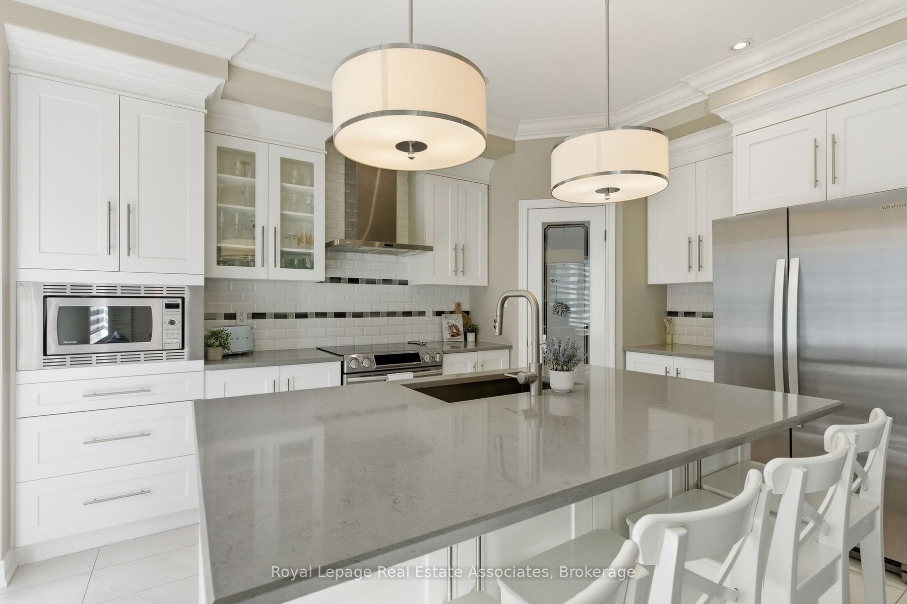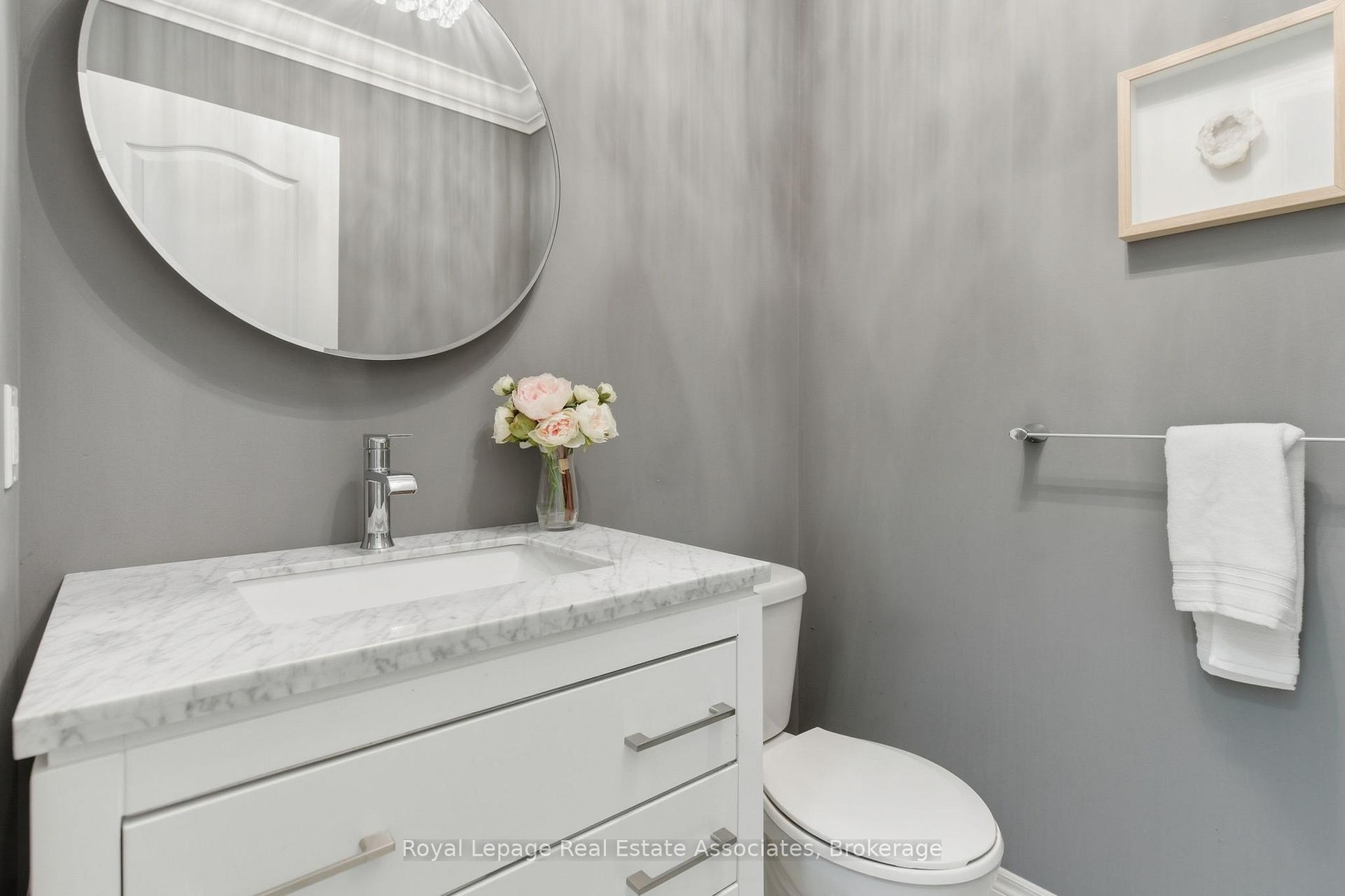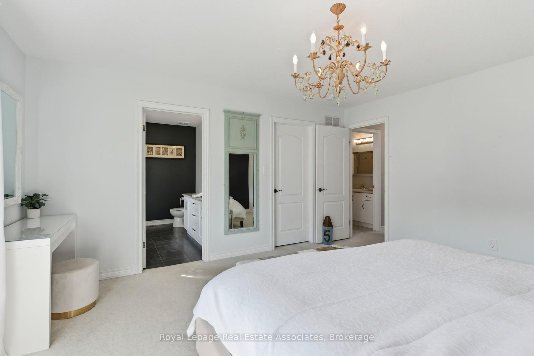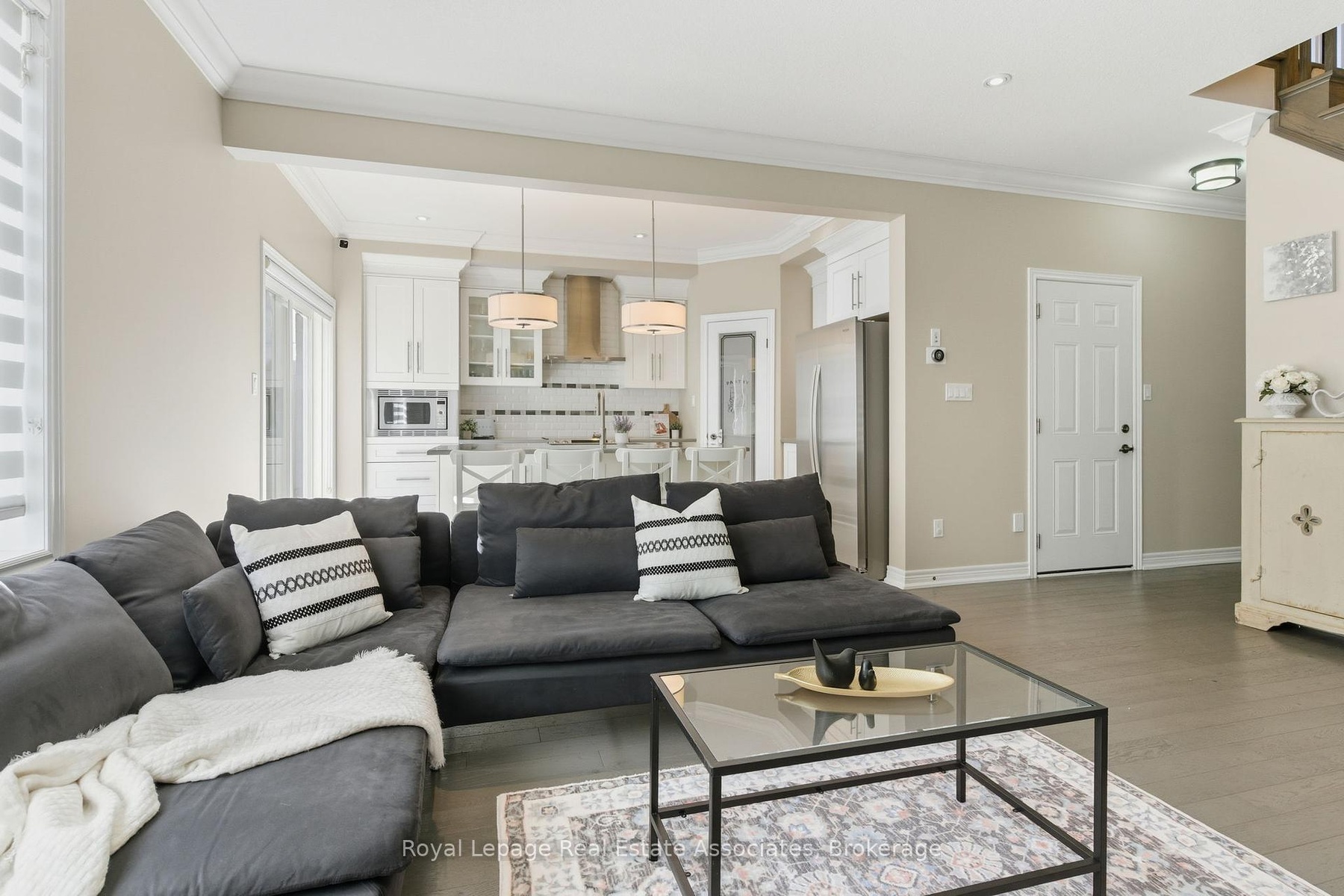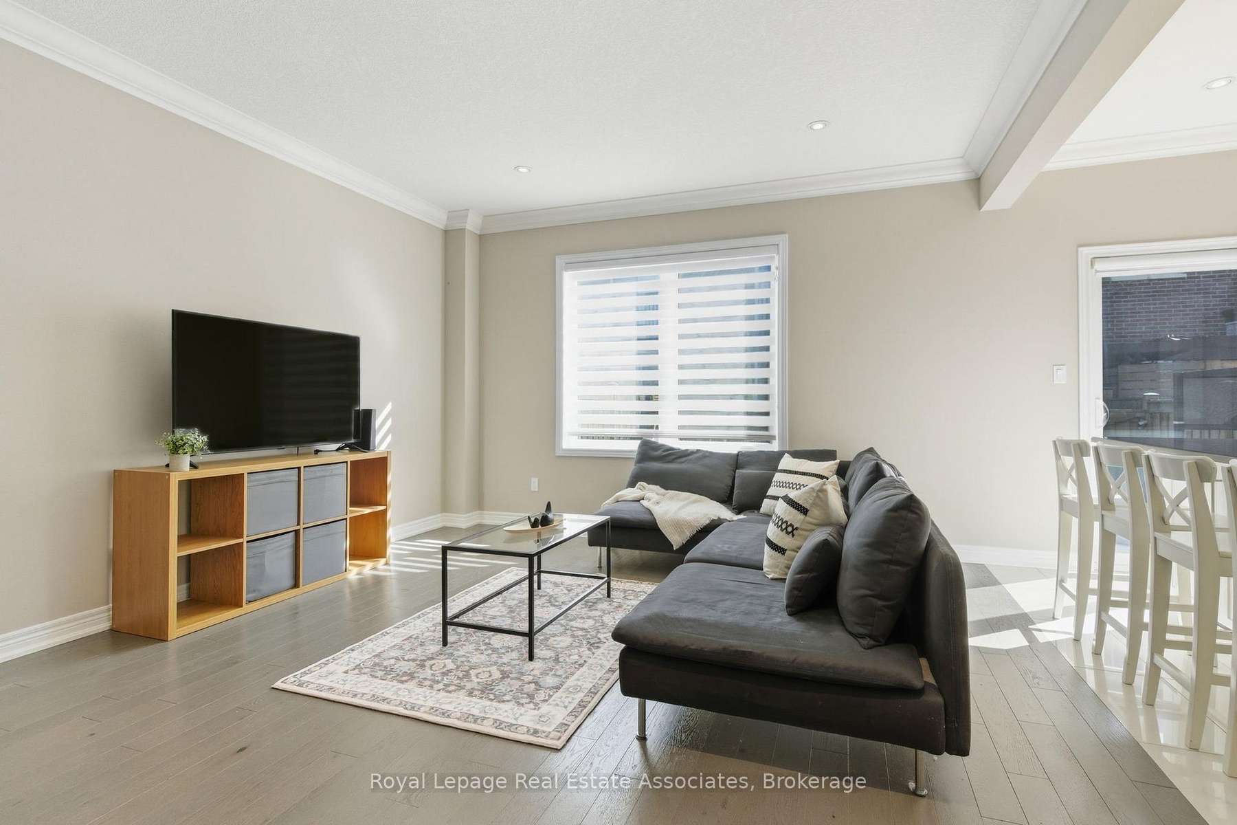 Welcome to this gorgeous FREEHOLD Executive Townhome. Located in a quiet and secluded enclave this beautiful home is located in in the south end of the Meadowlands, and is just minutes to Redeemer College, Meadowlands Plaza, offering quick Highway access and more. Boasting an excellent floor plan with over 1700 square feet complete with 3 Bedrooms, 3 Bathrooms this is the one you've been waiting for! The main floor of this home has an excellent layout complete with a formal dining room, spacious living room open to a beautiful white kitchen with breakfast island, high end appliances, walk in pantry, and direct back yard access. The beautifully appointed main floor features dark strip hardwood, California knock down ceilings, neutral paint tones, inside garage access, and 2 piece powder room. The upper level of this home is sure to impress with its spacious and functional layout. The Primary Retreat features broadloom carpeting, Juliette balcony, 5 piece spa like en-suite with glassed in shower and soaker tub, and a large walk in closet. The 2 additional bedrooms both generous in size feature broadloom carpeting, and double closets. The main 4 piece bathroom is the perfect size with a shower tub combination, oversized vanity and ceramic tiles. The unfinished basement awaits your finishing touches. If you've been looking for high end finishings, a spacious floor plan and prime location this one ticks all the boxes!