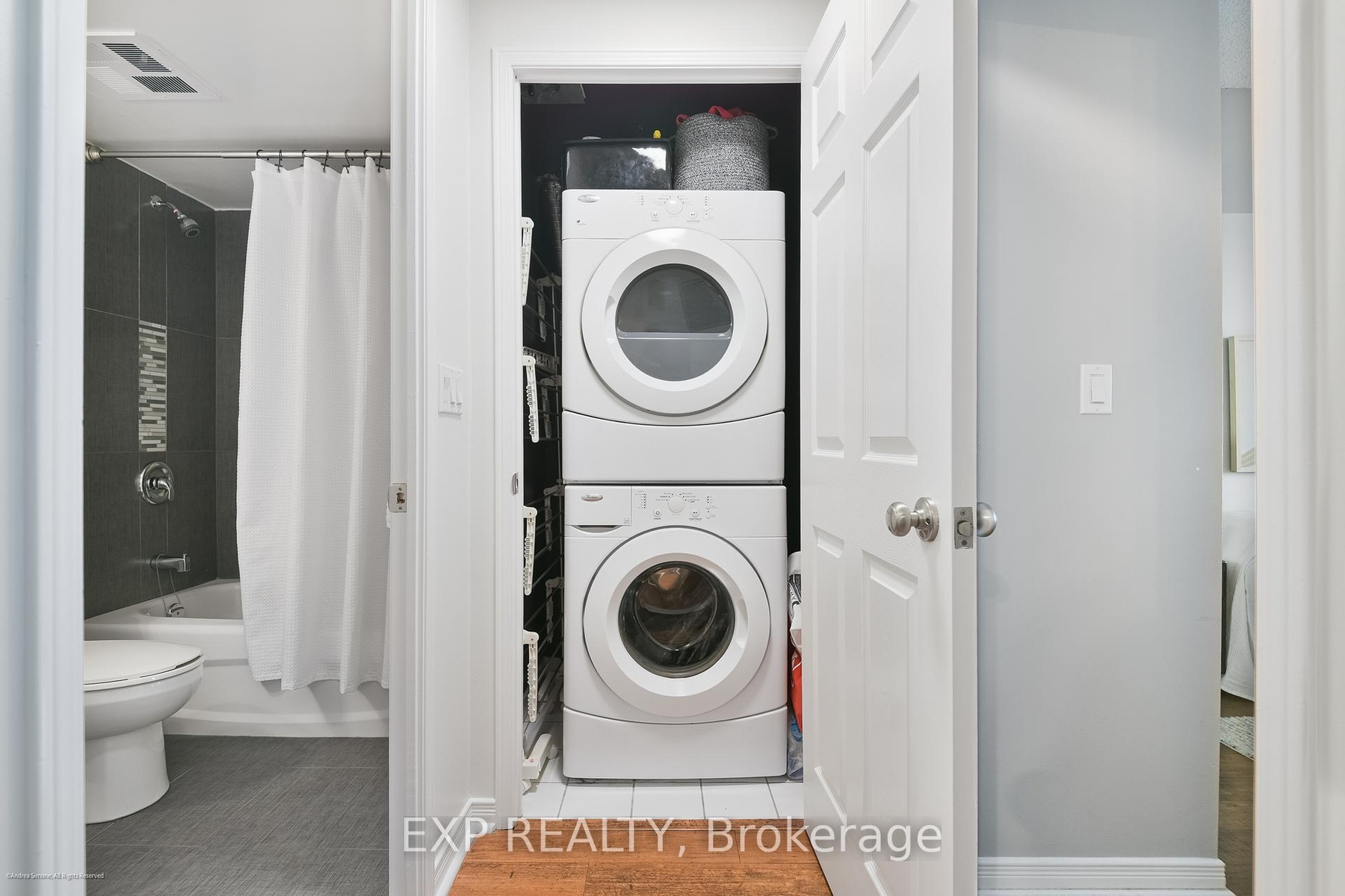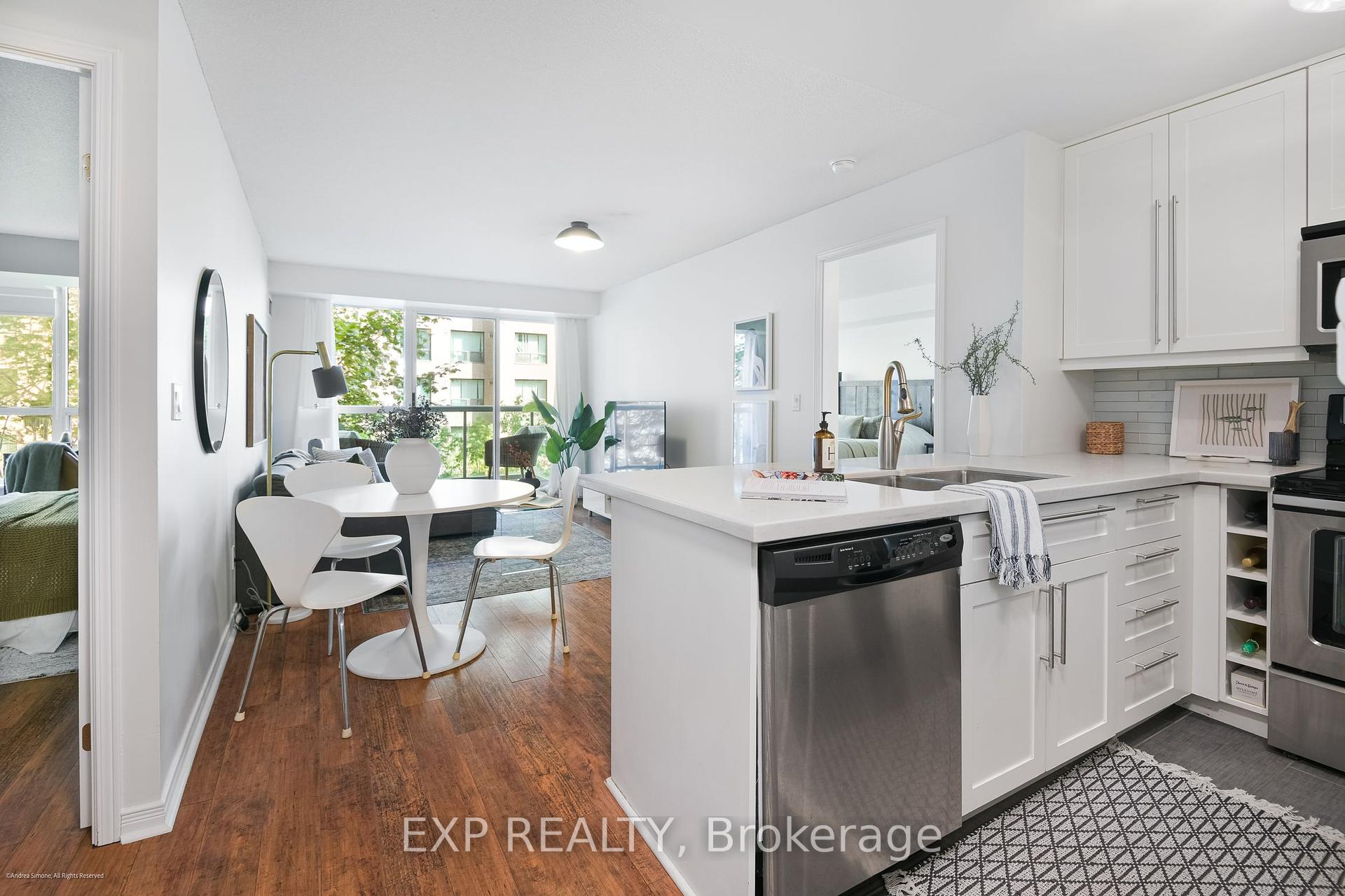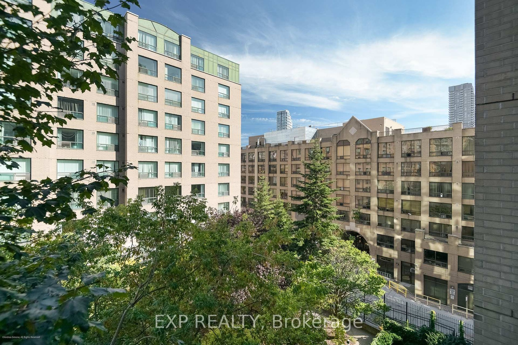 Tucked quietly across from the storied stalls of the St. Lawrence Market where the scent of fresh bread mingles with the hum of community this warm, welcoming two-bedroom, two-bathroom residence offers a rare blend of modern comfort and historic charm. Located in a discreet low-rise that blends seamlessly into one of Toronto's most iconic neighbourhoods, the home feels like a well-kept secret: just steps from some of the city's best cafes, green spaces, and cultural landmarks, yet quietly removed from the city's rush. Inside, the space opens up generously. Floor-to-ceiling sliding glass panels flood the main living and dining area with soft, natural light, drawing the eye toward a lush, tree-lined courtyard a canopy of green that transforms with the seasons and offers a peaceful backdrop year-round. The layout is intuitive and functional, with a distinctly home-like feel thats increasingly rare in todays market. Both bedrooms are large enough to comfortably accommodate king-sized beds, a testament to the intelligent design.The kitchen and bathrooms have been thoughtfully updated, marrying contemporary finishes with timeless appeal. Its a space that feels instantly livable not just a place to stay, but a place to belong.Beyond the suite, residents enjoy access to a concierge (perfect for the modern delivery lifestyle), a rooftop deck with sweeping views for summer entertaining, a well-equipped gym, party room, and more. Here, in the heart of the city, where cobblestone streets meet café culture and historic architecture meets modern convenience, this home offers something rare: a true sense of place. Seller has rented a parking space within the building for 14 years; additional parking may be available for rent (subject to availability and third-party arrangements)