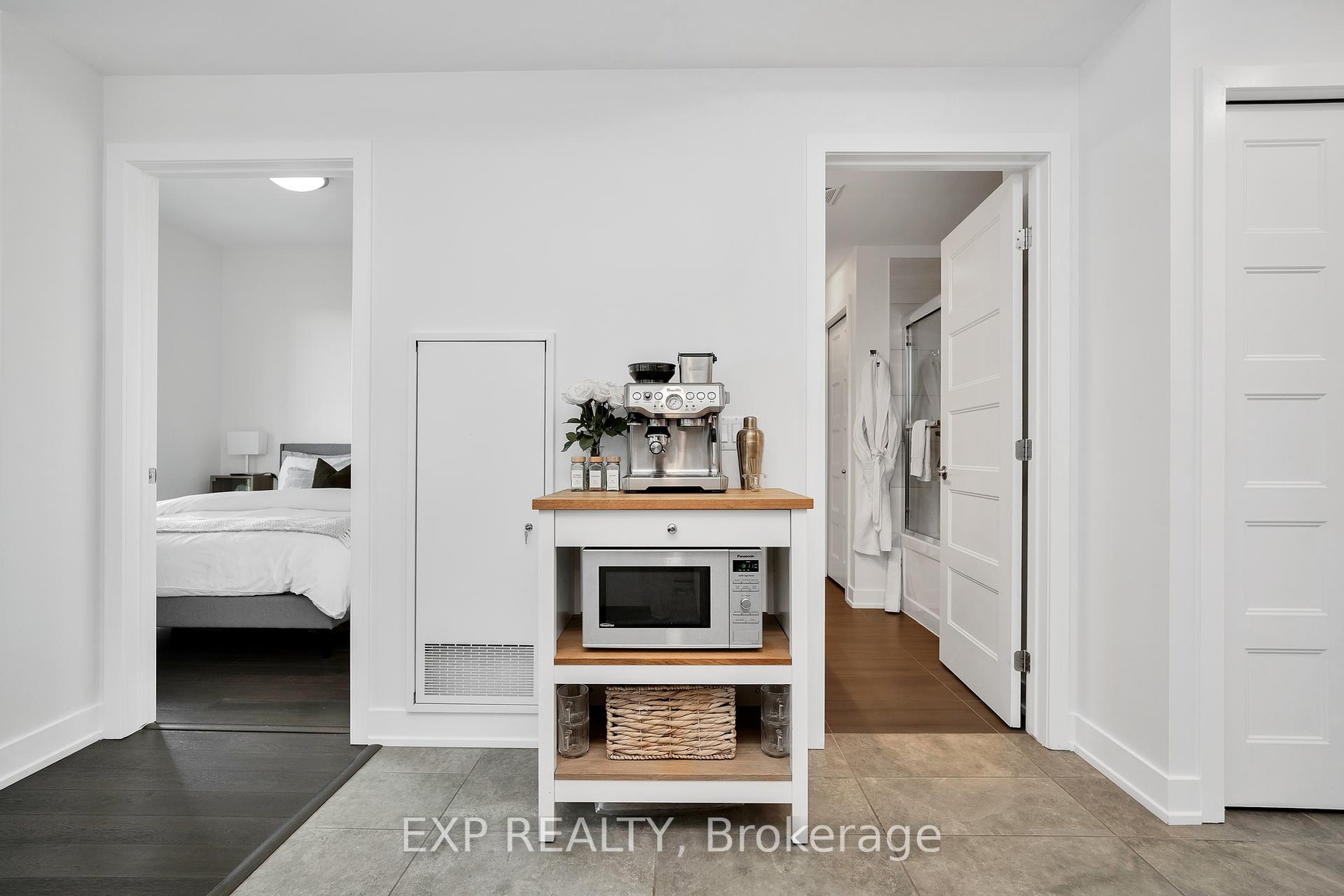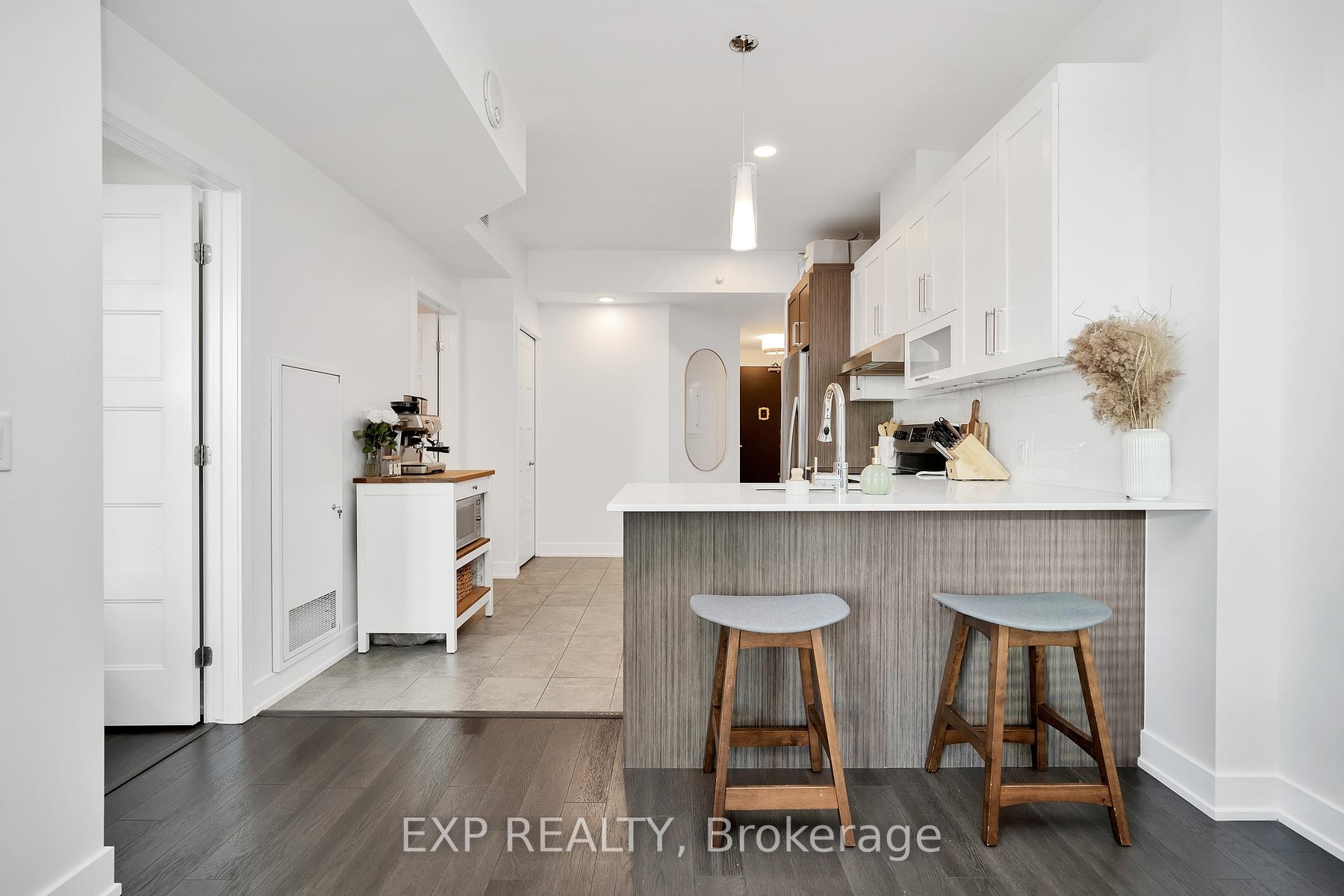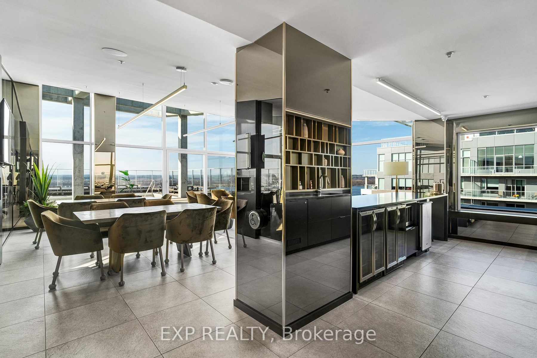 Discover upscale living at Petrie's Landing with a stunning and serene view of the Ottawa River! This one bedroom suite features an open-concept layout featuring a bright living/dining area, beautiful dark hardwood floors throughout, large windows flooding the space with natural light, a spacious bedroom with your own private balcony overlooking the water and comes with a storage locker & underground parking. The modern kitchen offers stainless steel appliances, quartz countertops, a breakfast bar and plenty of cabinet space. The large bathroom offers relaxation with a bathtub/shower and in-unit laundry. Residents enjoy access to the luxurious amenities such as a rooftop pool and terrace with breathtaking views of the Gatineau Hill, hot tub, party room perfect for entertaining and fitness centre. This condo is conveniently located off the highway, with nearby shopping, recreation, walking trails, & future LRT access. Don't miss this opportunity, book a showing today!