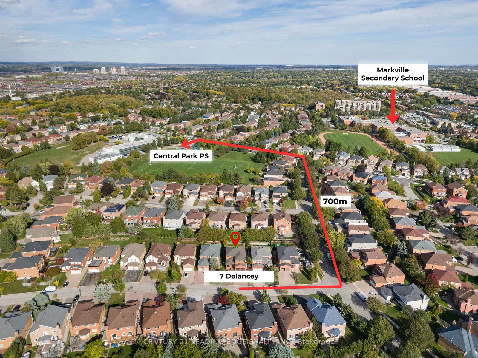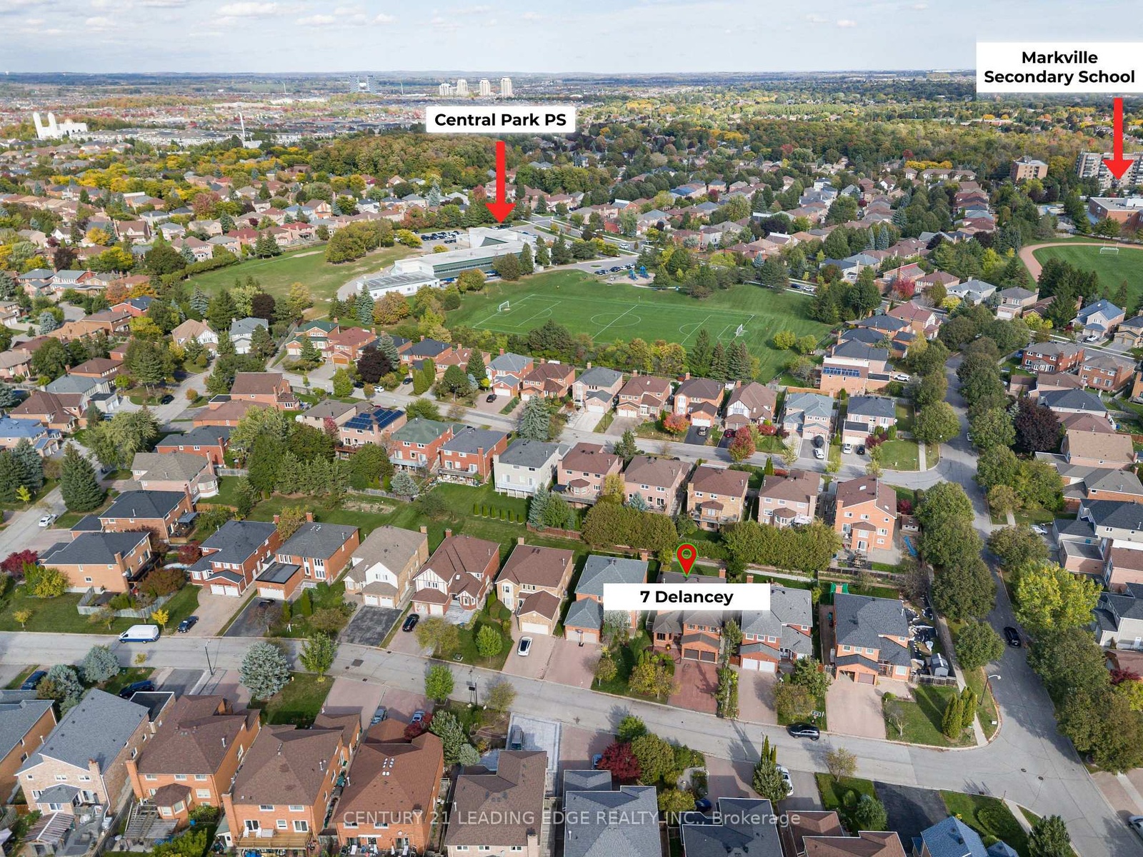 Welcome to 7 Delancey Crescent an exceptional home in the prestigious and family-friendly Markville neighbourhood, just steps from the top-ranking Markville Secondary School & close to Pierre Elliott Trudeau High School. Set on a premium 50.22' frontage lot, this beautifully maintained 4-bedroom, 3.5-bath home offers over 3,250 sq ft of living space, plus a fully finished basement with a kitchen & bathroom - ideal for an in-law suite. With generously sized rooms and a thoughtfully designed layout, there's plenty of space for everyone to work, relax, and play. Inside, you'll find gleaming hardwood floors, a dedicated home office, and two walk-outs to a private backyard - perfect for entertaining or enjoying quiet evenings outdoors. The spacious eat-in kitchen overlooks both the cozy family room and the expansive backyard, making it the heart of the home. Whether you're preparing family meals or hosting dinner parties, you'll appreciate the ample prep space and formal dining room. Upstairs, the oversized primary suite offers a peaceful retreat, complete with a spa-like 5-piece ensuite and His & Hers closets. All additional bedrooms are generously sized and share a well-appointed bathroom - ideal for a growing family. House has new basement flooring & has just been painted. Shingles approx 3 years. 2 Laundry room areas. Unbeatable location! Walk to top-rated schools - Central Park PS & Markville SS (and just minutes drive to Pierre Elliott Trudeau HS), Centennial Community Centre, Markville Mall, Milne Dam Conservation Parks walking and biking trails, grocery stores, and restaurants. Just minutes from the charm of Main Street Markham and Unionville, with boutique shops, dining, and family-friendly events. Easy access to GO Transit and Hwy 407 makes commuting a breeze.