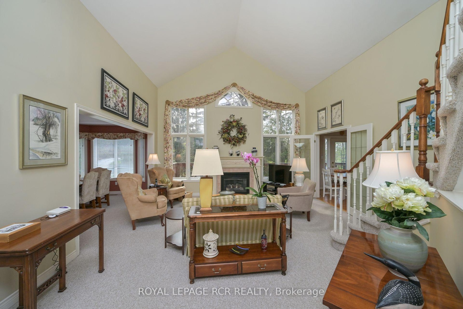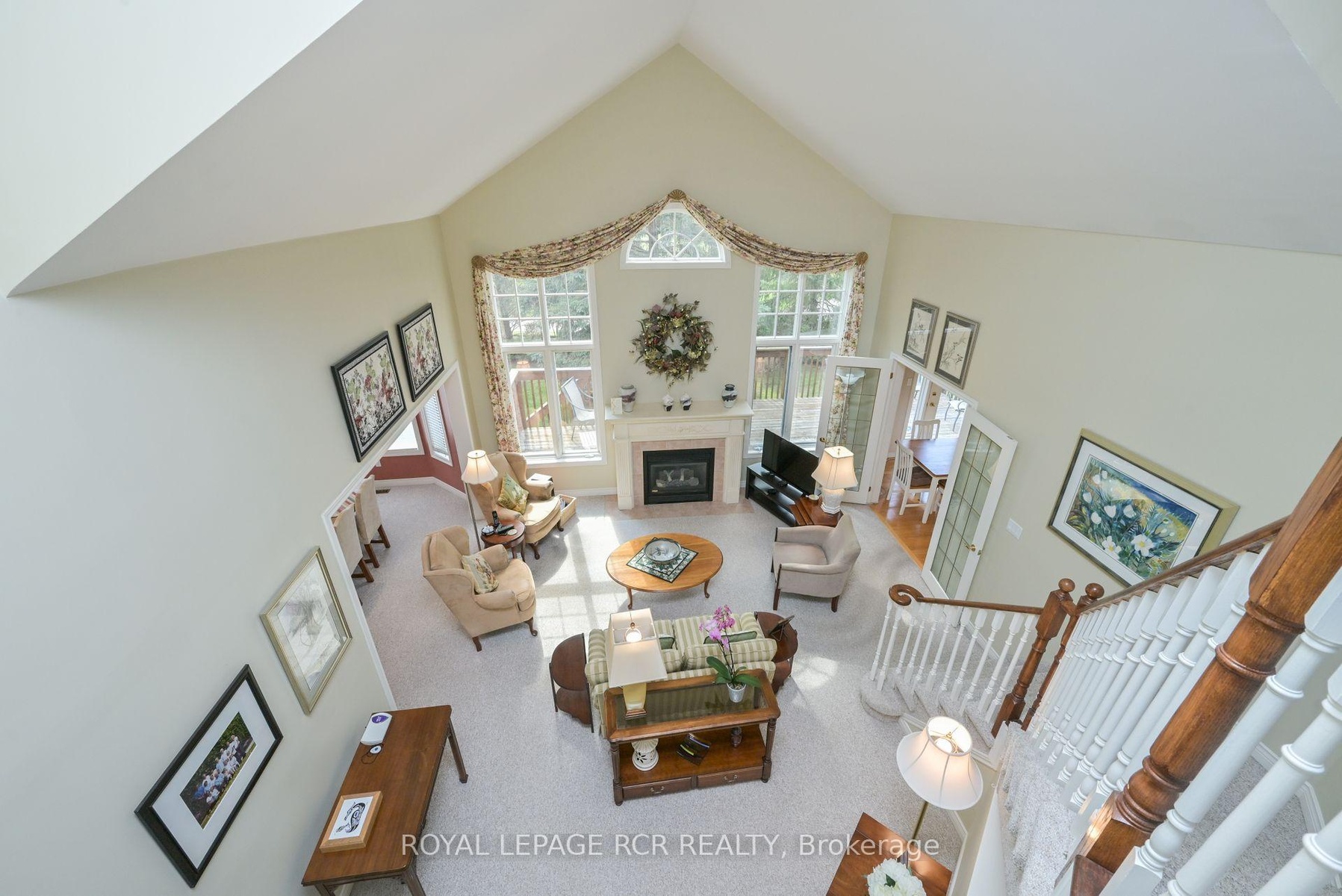 26 Forest Link is a lovely bungaloft backing onto the golf course, at the end of a quiet cul-de-sac, a perfect location! This home is a modified Monet floor plan - the layout has been adjusted so all the key rooms where you spend most of your daytime, overlook the serenity of the course. Coming from the front foyer into the living room, you will notice how the high cathedral ceiling and lovely fireplace make this space so inviting. Off to one side is an eat in kitchen with stainless appliances including a built in oven, gas stove and a bar sink on the extra side workspace. The kitchen also features lots of cupboards and pantry space plus the walk out to the western facing deck. There is a large dining room off the other side of the living room - lots of room for family gatherings. The primary suite on the main level is bright and offers a walk in closet and 4 pc ensuite. The main level also features an oversized laundry room off the kitchen - with additional pantry space and direct entry to the double garage. Upstairs there is lots of privacy for guests - a bedroom with a 3pc ensuite as well as a sitting area, den or a spot for an office. The professionally finished lower level offers a family room where people can gather, a spacious guest room and a 3 pc semi ensuite bath. Finish off this level with the huge storage room - always wonderful to have this space. The furnace was replaced in 2025 and the AC is about 5 years new. And then there is the community - enjoy access to 36 holes of golf, 2 scenic nature trails, and a 16,000 sq. ft. Community Center filled with tons of activities and events. Welcome to Briar Hill - where it's not just a home it's a lifestyle.
