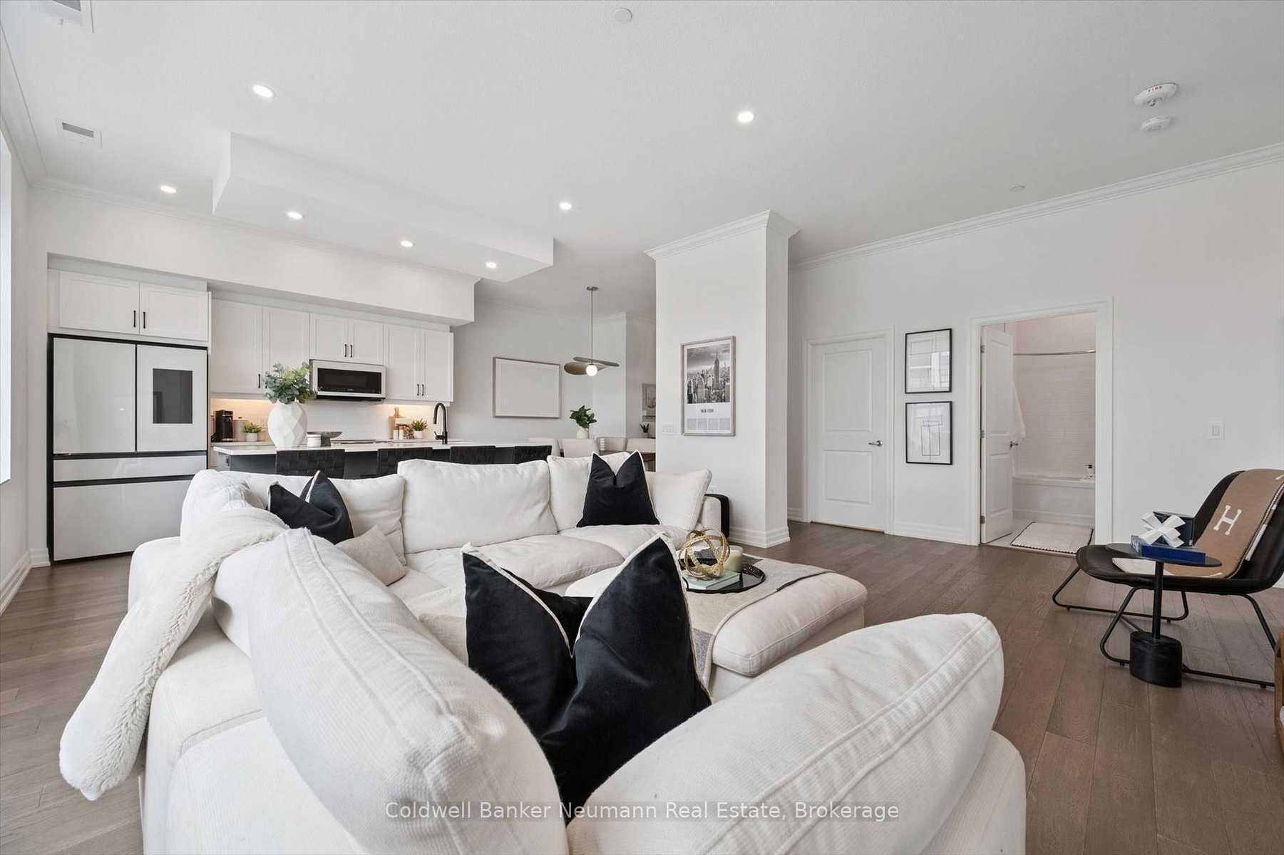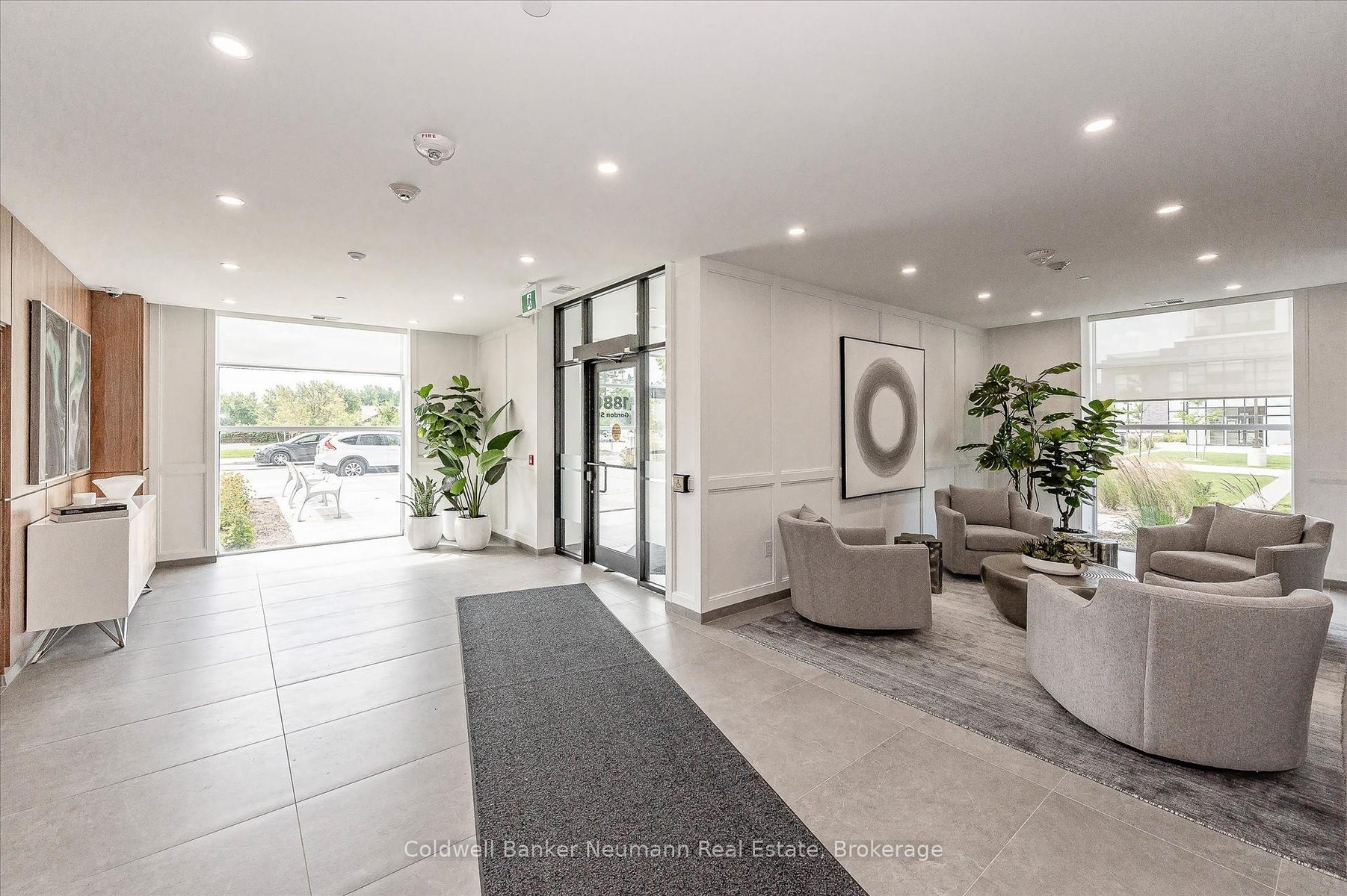 Welcome to 204-1880 Gordon Street where elevated style meets everyday ease. This beautifully designed 2-bedroom, 2-bathroom corner suite is bright, sophisticated, and filled with thoughtful upgrades that make a lasting impression. Expansive windows flood the space with natural light, highlighting the airy, open-concept layout and sleek hardwood flooring throughout.The details shine here from designer lighting to heated floors in both bathrooms and custom built-ins in every closet (even the laundry room), ensuring every inch of space is both beautiful and functional. Located on the convenient second floor, this suite offers easy in-and-out access without long elevator waits perfect for those who value both comfort and practicality. Two owned parking spaces are included, one featuring an EV charging station for added convenience and future-ready living. Life at 1880 Gordon comes with resort-inspired amenities: a state-of-the-art gym, golf simulator, guest suite, and a spectacular 13th-floor lounge with panoramic city views, ideal for entertaining or unwinding. Set in Guelphs vibrant south end, you're steps from restaurants, grocery stores, salons, banks, and the library. Everything you need is right at your doorstep. With every detail already taken care of, all that's left to do is move in and start enjoying the lifestyle you deserve.