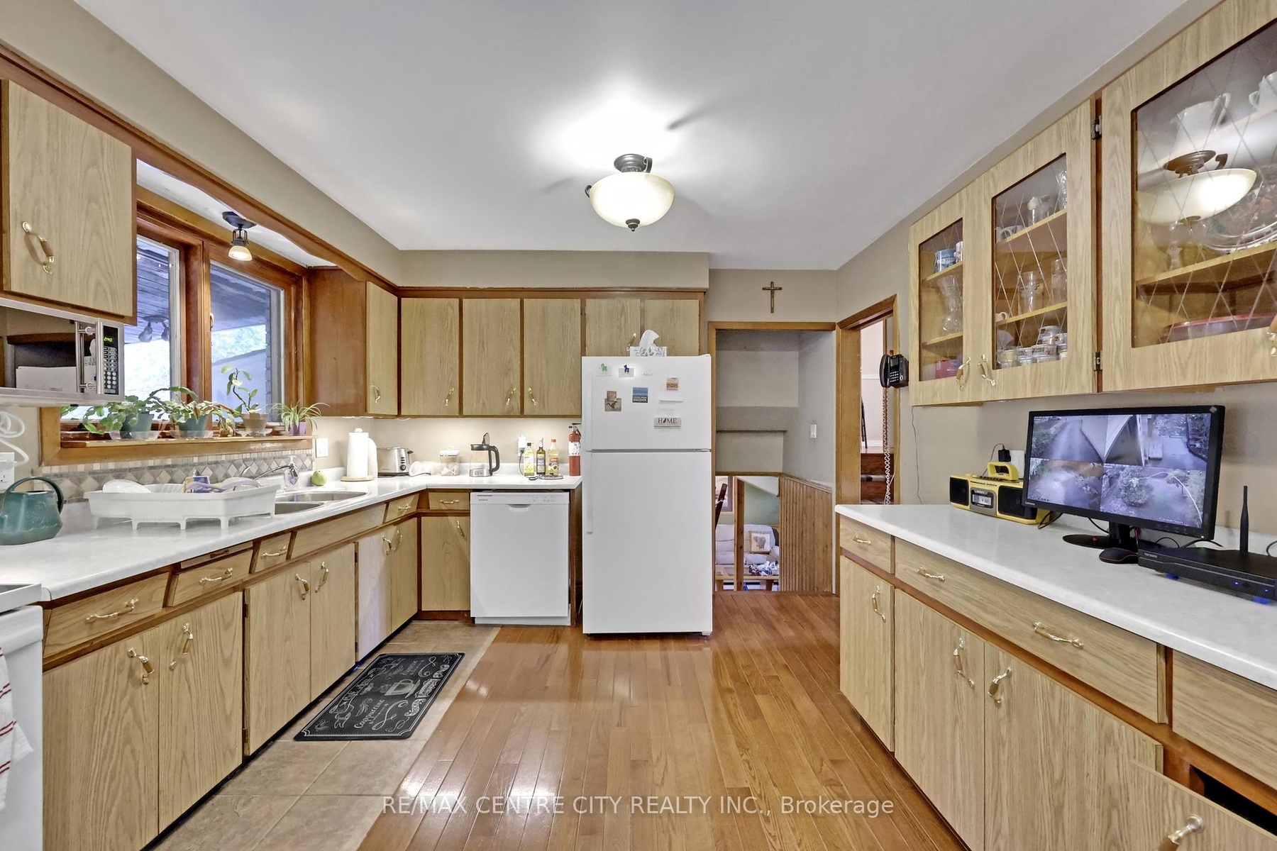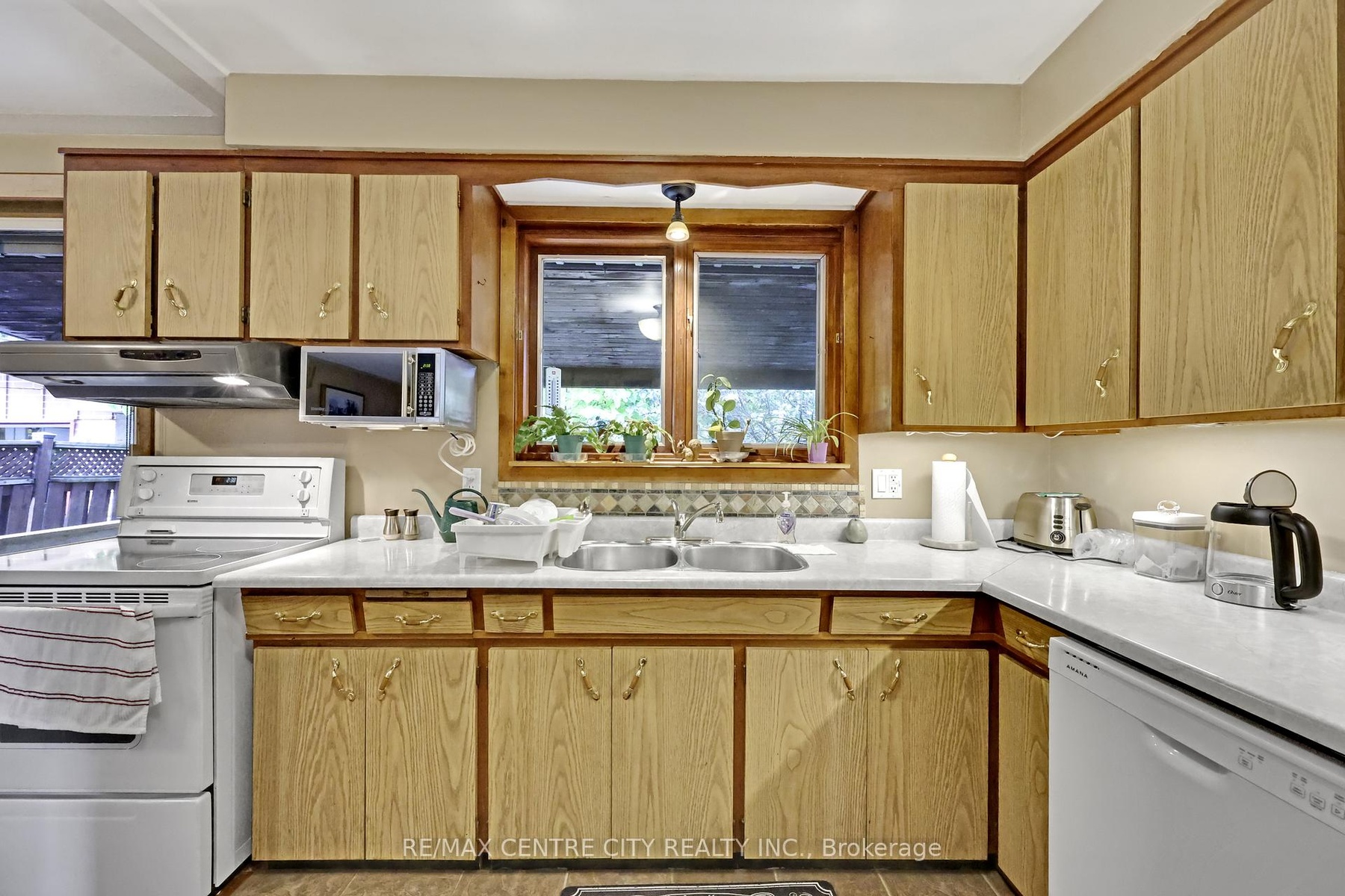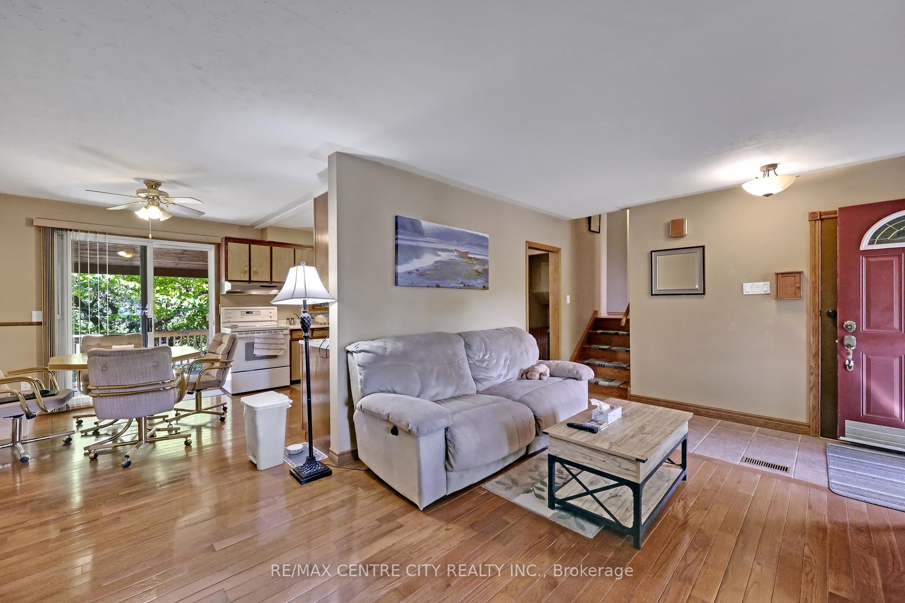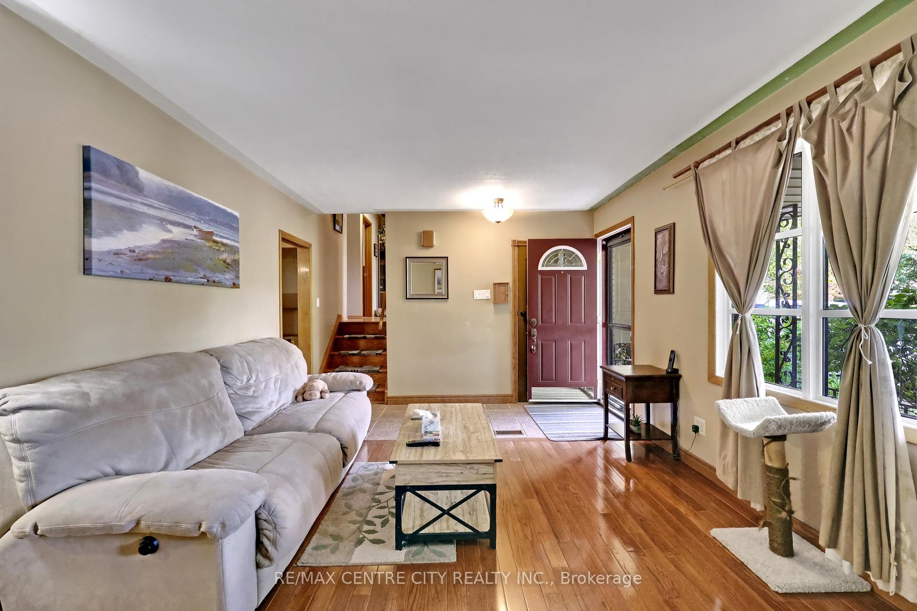 Nestled in a peaceful neighbourhood on a quiet cul-de-sac near Huron Heights Park, this well-maintained 3-bedroom side-split offers the perfect combination of comfort, functionality, and convenience. Located just minutes from Fanshawe College, Walmart, public transit, schools, and all major amenities, this home is ideal for families, first-time buyers, or investors. The main level features a bright living room with hardwood floors, an open-concept dining and kitchen area with plenty of cabinetry for storage, and a new dishwasher. Large windows fill the home with natural sunlight, creating a warm and inviting atmosphere. Upstairs, you'll find three spacious bedrooms and a 4-piece bathroom, ideal for a growing family. The lower level offers in-law suite potential, complete with a 3-piece bathroom and a separate walk-up entrance, providing excellent flexibility for extended family or income opportunities. The fourth level offers ample storage space, laundry area, and a furnace room. Outside, enjoy a large backyard deck surrounded by beautiful landscaping, including roses, a magnolia tree, and an eastern red bud, perfect for relaxing or entertaining. The detached double garage features tandem parking (15.5 x 33) with a new garage door, plus driveway parking for up to 5 cars. This charming home, located on a quiet cul-de-sac, offers peace, privacy, and convenience, all in one great package. Dont miss this opportunity. Book your private showing today!