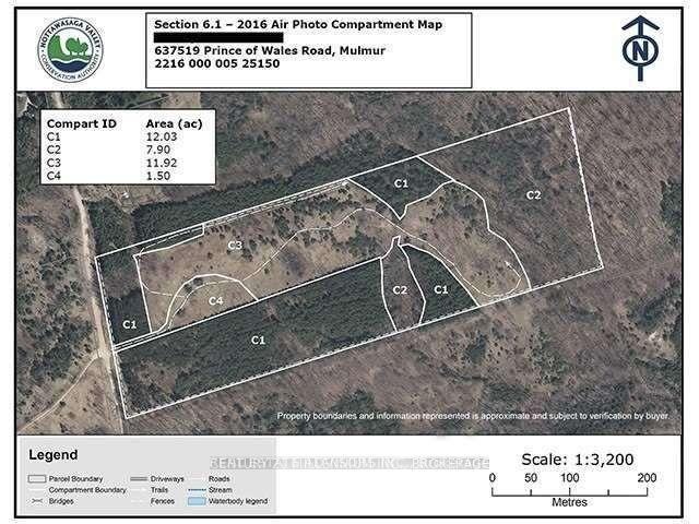 An rare opportunity awaits the discerning buyer on this secluded 33-acre estate. This blank canvas, boasting diverse flora and a stunning river, allows you to build your dream home or a tranquil retreat. For added convenience, the property sits at the end of a well-maintained road, offering year-round access, and borders the iconic Bruce Trail.
