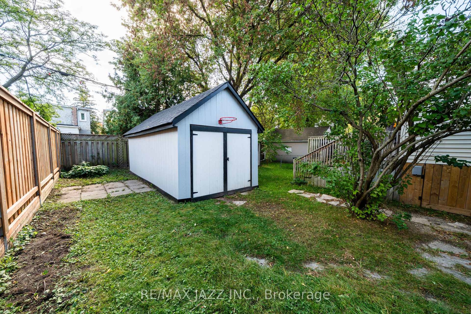 Charming 1+2 bedroom bungalow in sought-after Danforth Village-East York! A perfect condo alternative featuring hardwood floors in the living area and main-floor primary bedroom. Enjoy an updated kitchen and bath, with an open-concept design and skylight that fills the space with natural light. The bright back den offers a walkout to a private garden and a large 10' x 20' workshop/shed- ideal for hobbyists or extra storage. Freshly painted with numerous updates including new A/C (2024), owned hot water tank (2020), windows (2018), and roof (2017. The spacious backyard offers great potential for a future auxiliary unit. Conveniently located near Danforth shops, restaurants, Taylor Creek trails, and transit- walk to the subway or catch one of two nearby bus routes.