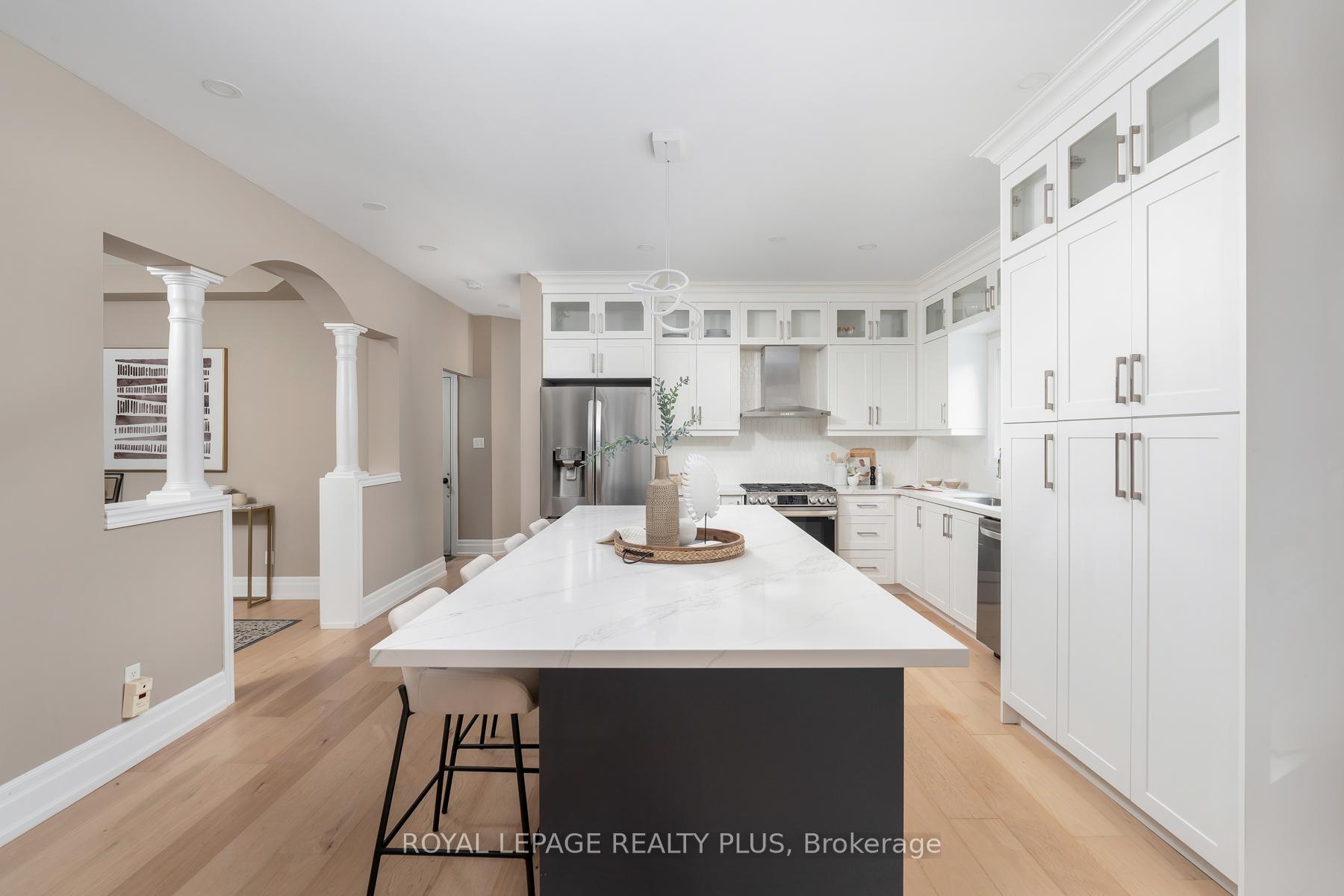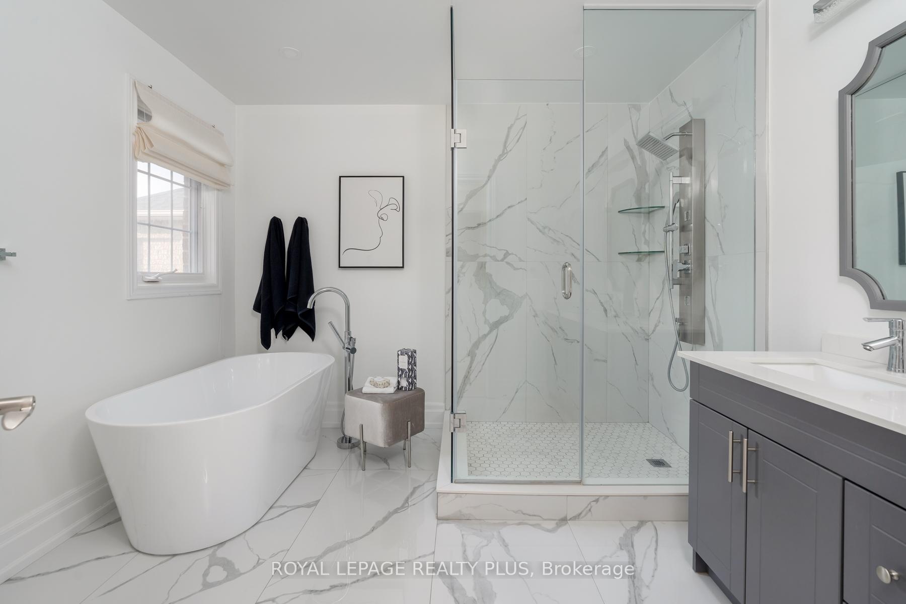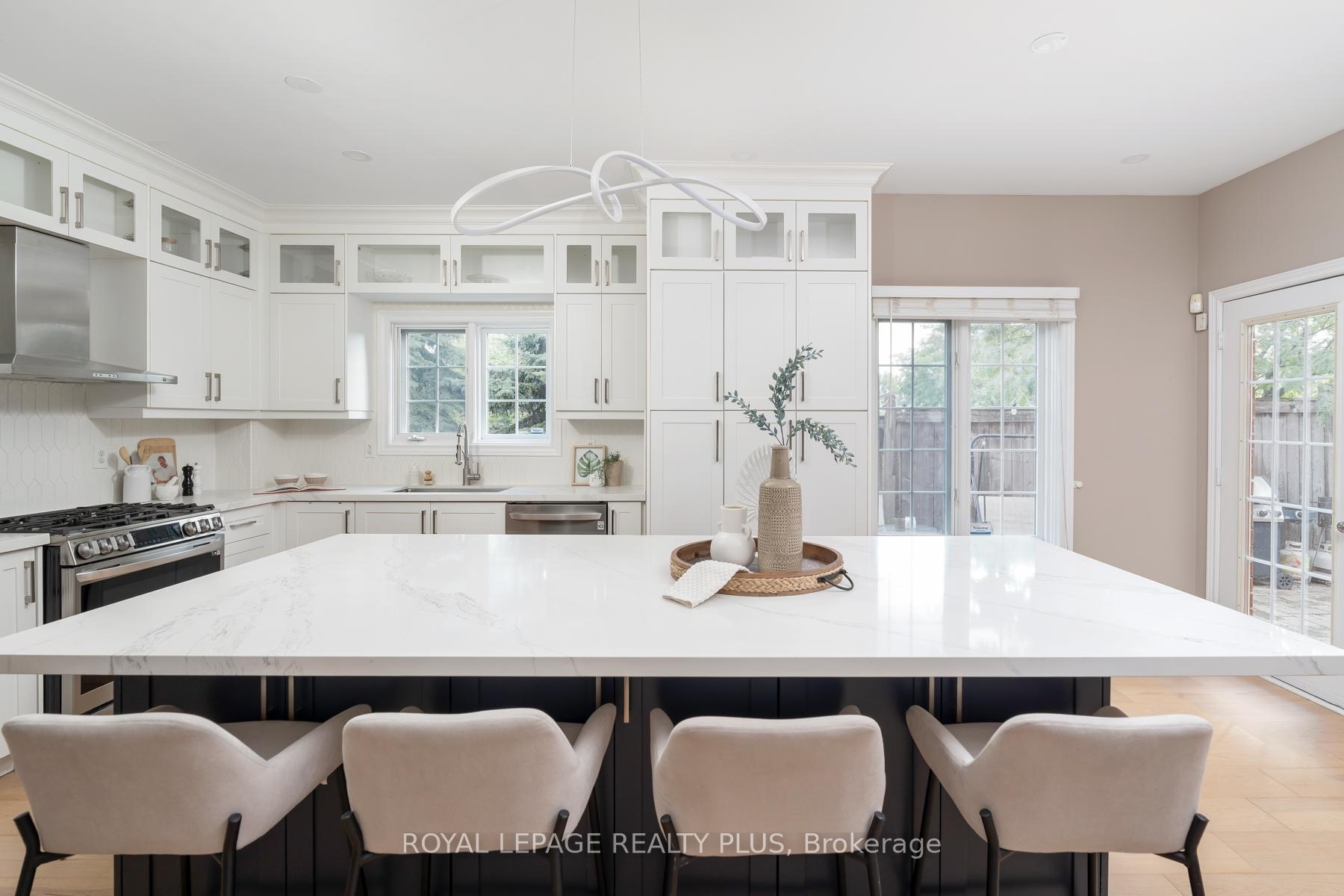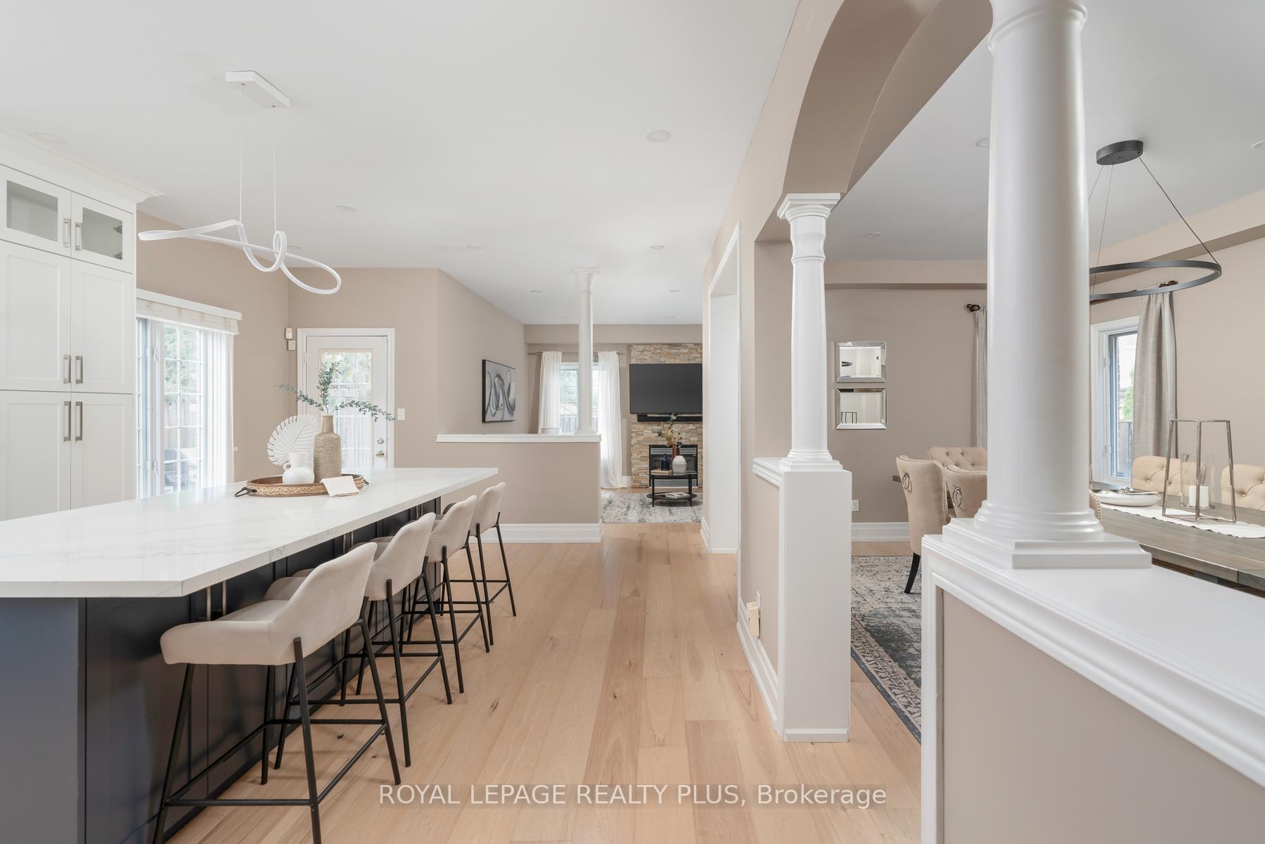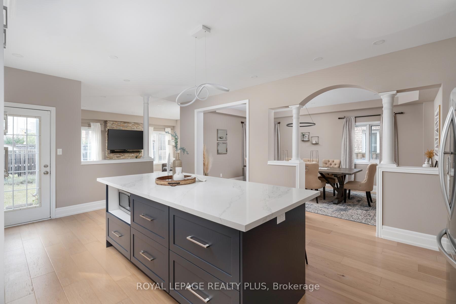 Simply stunning! This impeccably maintained home with over 3300 sq ft total living space is perched at the edge of a crescent in the charming Clarke neighborhood. This home offers an exceptional floor plan with elegant finishes throughout. The sky is the limit with a foyer with soaring ceilings and a sweeping oak staircase. This home has been updated with the kitchen as the main focus. We all know that the kitchen is the heart of the home - and what a heart this home has. You can feel the love that goes into every meal and every dinner party. The sprawling Quartz island allows for guests and family members to mingle while sharing their stories from the day. With 9 ceilings you feel spaciousness all around you and this kitchens custom cabinets are with you all the way up. An inviting colour palate paired with tasteful decor is the cherry on top of this main floor. The main level features a spacious formal dining room, perfect for entertaining and a cozy living room with a gas fireplace offers a warm and welcoming retreat. The oversized dining room used to be a living + dining room, but has been opened up for those large holiday parties. Walkout to a pleasant, fully fenced backyard complete with rear and side yard, and stone patio an ideal space for summer gatherings. Main floor laundry with direct access to the garage for added convenience. Upstairs, you'll discover four generous bedrooms, including a luxurious primary suite featuring a huge walk-in closet and a private 4-piece ensuite bath. Fully finished basement adds extra hang out space for the family. Other notable features include hardwood floors, newer appliances (Stove, Fridge, Dishwasher, Washer/Dryer - 2022), pot lights throughout the main floor, Benjamin Moore paint, mudroom updated cabinets, renovated primary ensuite freestanding tub. A huge benefit of this location is the the direct access to the GO station bus, which is virtually at your doorstep. A unique convenience of this fantastic location!