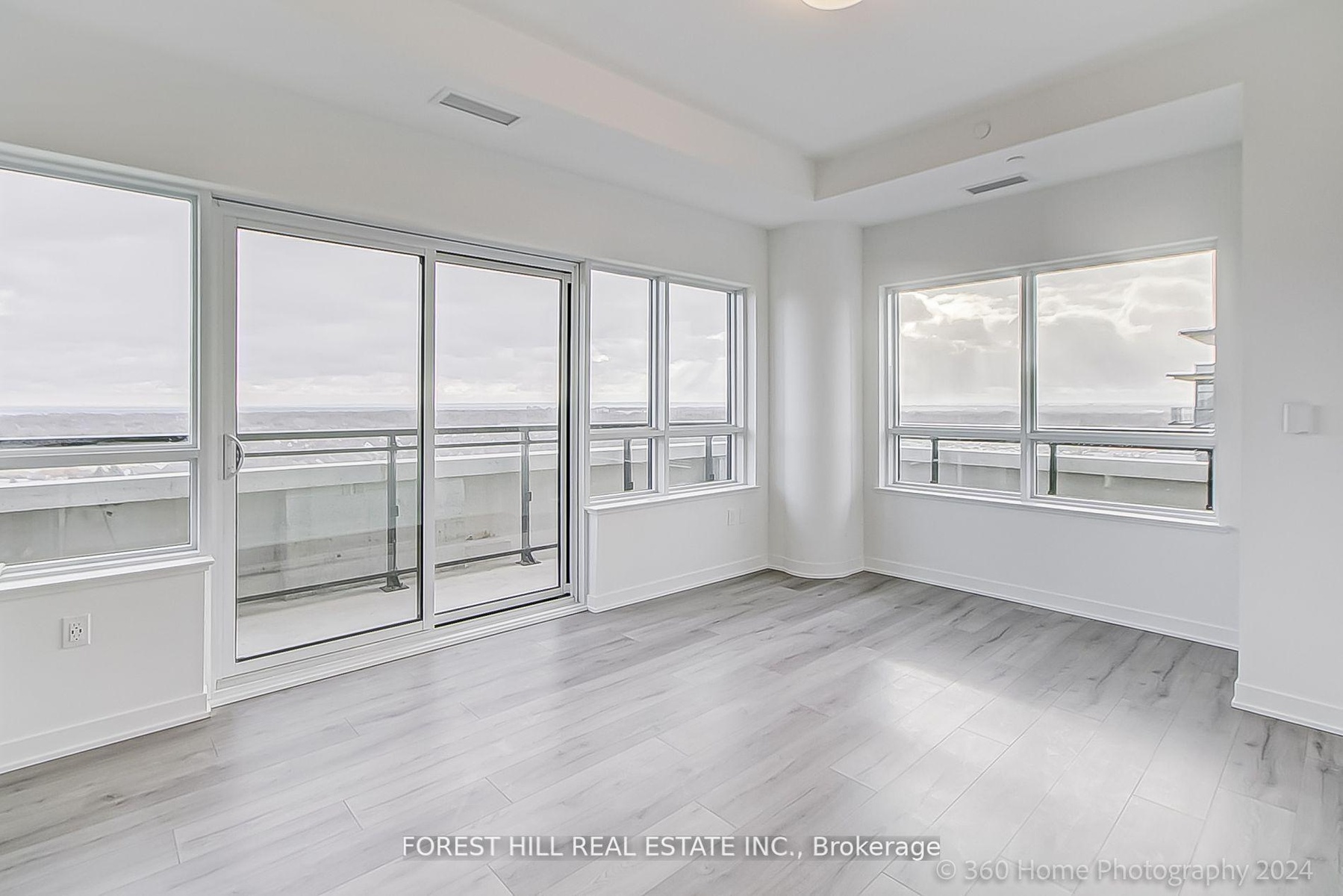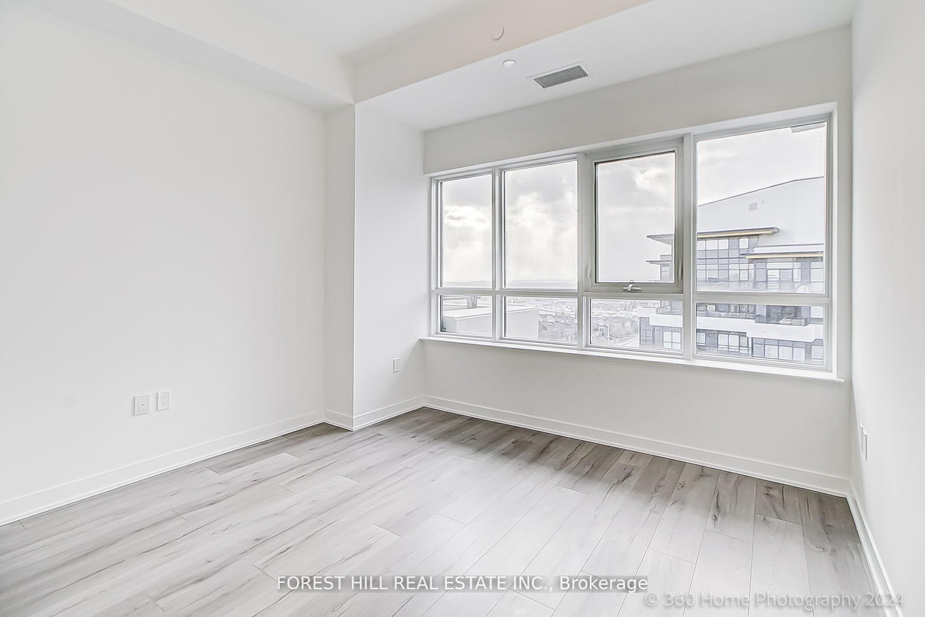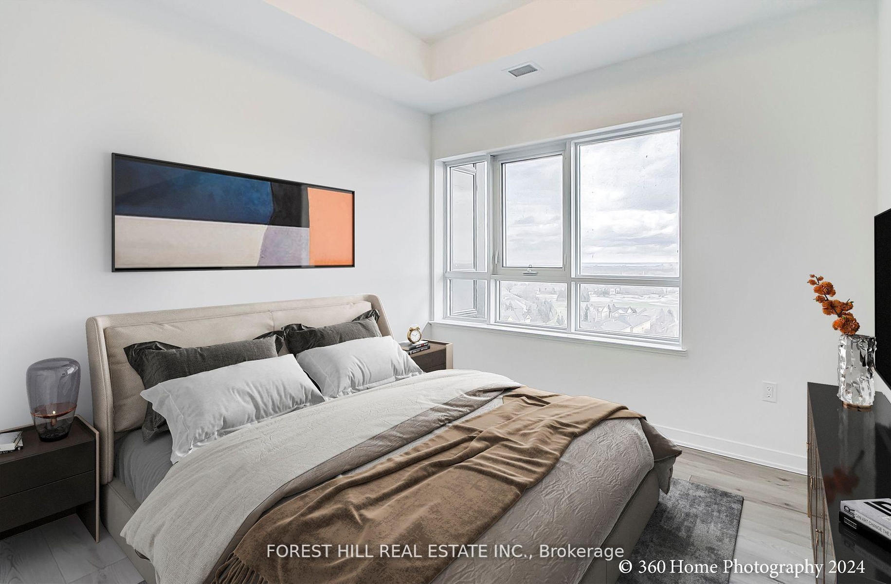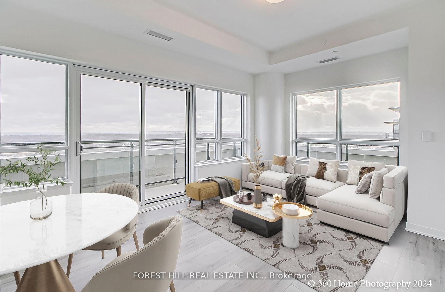 PENTHOUSE LUXURY!!! Feel the joy as you enter this sun-drenched brand-new 2 BR+ Den suite in Oakville's newest luxury condominium residences! Step into a spacious hallway that leads to a beautifully designed Living-Dining space, surrounded by floor-to-ceiling windows and stunning, unobstructed views of "Oakville tree-tops" and Lake Ontario. The modern chef-inspired upgraded kitchen, anchors this space with an upgraded "waterfall" quartz center island and elegant contrast cabinetry to complement it. Gleaming stainless-steel appliances with a stylish backsplash will make this kitchen a joy to work in! This suite offers a Den/home office for your work comfort. The 9 ft ceilings and ensuite Laundry (tucked away off the entrance foyer) are great enhancements. The Primary bedroom has a huge walk-in closet and a stylish ensuite bath; the second bedroom is a comfy space for family or guests. Walk out to the 151 sf balcony and soak in the beauty of beautiful Oakville. Enjoy state-of-the art technology in the suite with digital door locks, and an in-suite touchscreen wall pad. This building has an eclectic two-story lobby and great building amenities including a Yoga and Fitness studio, Sports room, Pool table, Party rooms, a huge Terrace with BBQ stations, and unique lounge and Dining areas for entertaining. There is a 24-hour friendly concierge service for your safety and service with an on-site building management office. This unbeatable location is close to the Oakville hospital, and top-rated private and public schools. Enjoy great amenities, shopping, restaurants, golf, and nature trails. The iconic Drive-in Theatre is close by for relaxing during summer nights. Short commute to Sheridan College, GO stations, 407, 403, and QEW. Make this PENTHOUSE yours to enjoy! **EXTRAS** One Parking and One Locker, Bell High-speed Internet. Pet spa. Upgrades: Laminate floor- 7 .5 "; Kitchen Island Cabinets Mezzaotte UB2; Cutlery tray.