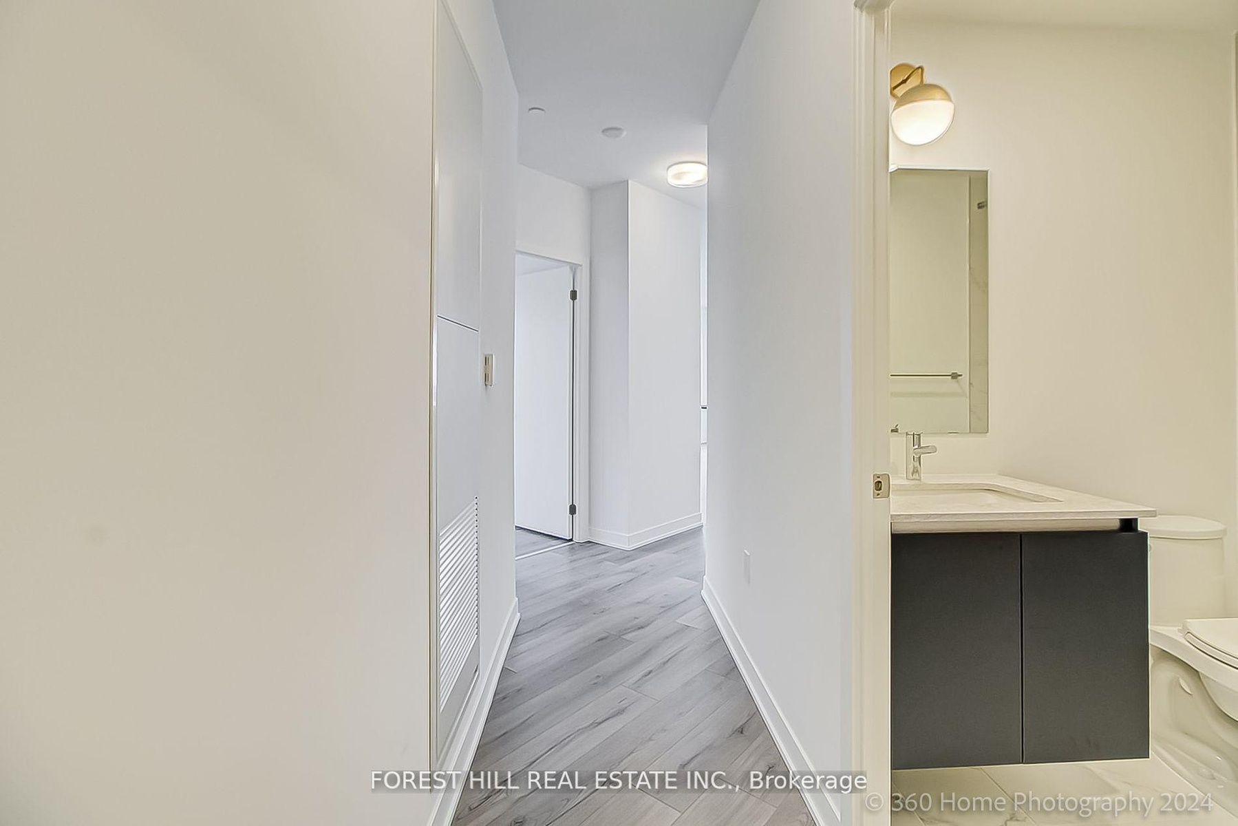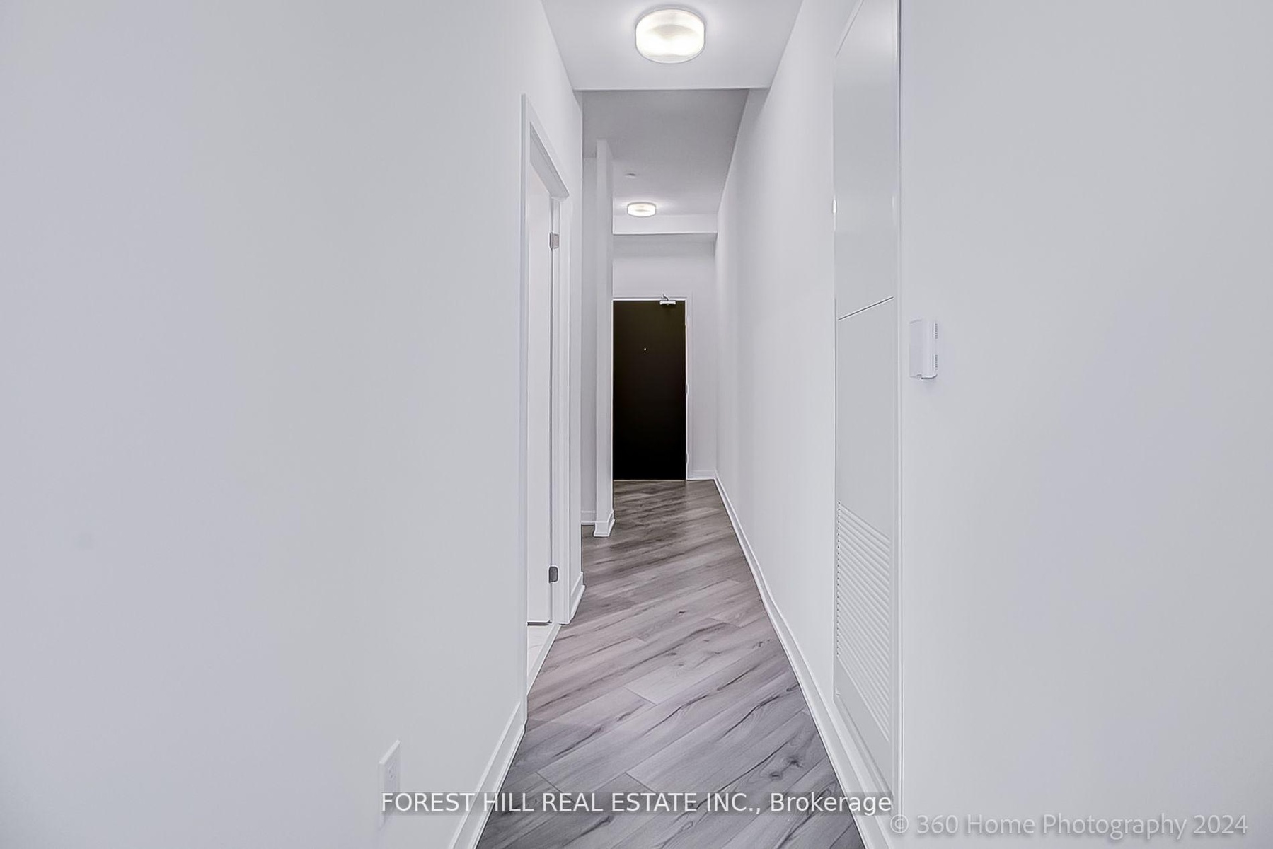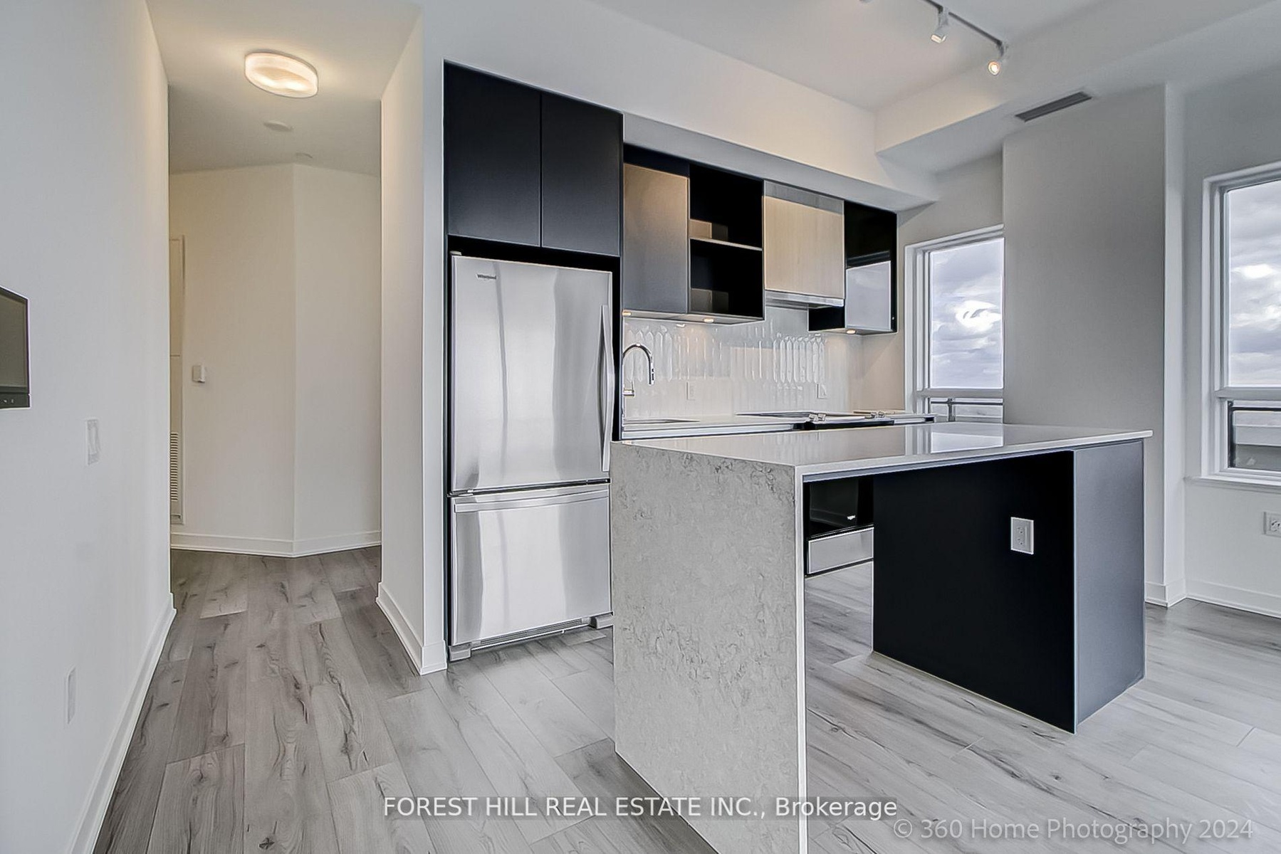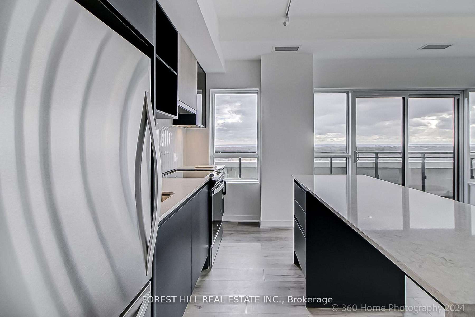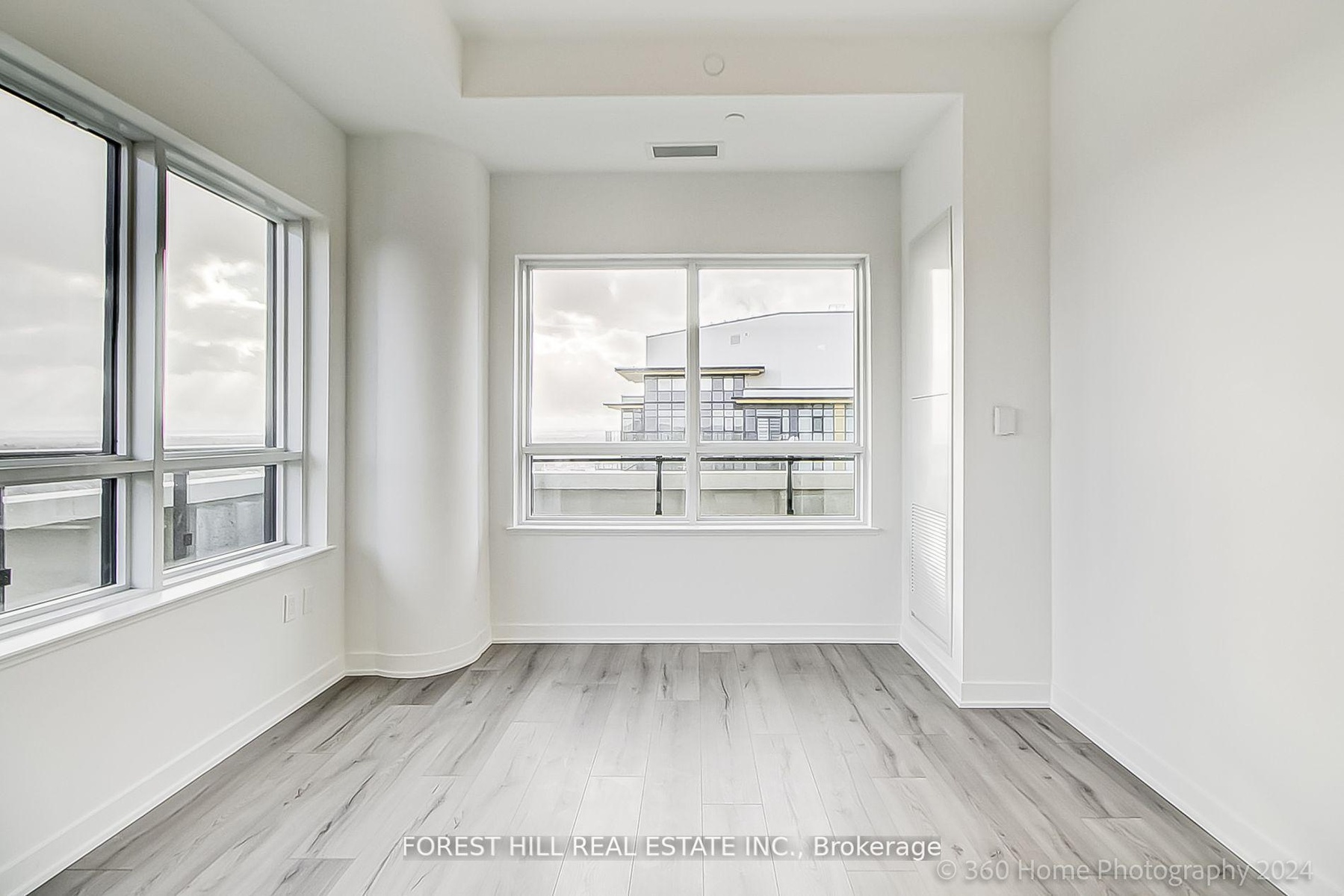 PENTHOUSE LUXURY!!! Feel the joy as you enter this sun-drenched brand-new 2 BR+ Den suite in Oakville's newest luxury condominium residences! Step into a spacious hallway that leads to a beautifully designed Living-Dining space, surrounded by floor-to-ceiling windows and stunning, unobstructed views of "Oakville tree-tops" and Lake Ontario. The modern chef-inspired upgraded kitchen, anchors this space with an upgraded "waterfall" quartz center island and elegant contrast cabinetry to complement it. Gleaming stainless-steel appliances with a stylish backsplash will make this kitchen a joy to work in! This suite offers a Den/home office for your work comfort. The 9 ft ceilings and ensuite Laundry (tucked away off the entrance foyer) are great enhancements. The Primary bedroom has a huge walk-in closet and a stylish ensuite bath; the second bedroom is a comfy space for family or guests. Walk out to the 151 sf balcony and soak in the beauty of beautiful Oakville. Enjoy state-of-the art technology in the suite with digital door locks, and an in-suite touchscreen wall pad. This building has an eclectic two-story lobby and great building amenities including a Yoga and Fitness studio, Sports room, Pool table, Party rooms, a huge Terrace with BBQ stations, and unique lounge and Dining areas for entertaining. There is a 24-hour friendly concierge service for your safety and service with an on-site building management office. This unbeatable location is close to the Oakville hospital, and top-rated private and public schools. Enjoy great amenities, shopping, restaurants, golf, and nature trails. The iconic Drive-in Theatre is close by for relaxing during summer nights. Short commute to Sheridan College, GO stations, 407, 403, and QEW. Make this PENTHOUSE yours to enjoy! **EXTRAS** One Parking and One Locker, Bell High-speed Internet. Pet spa. Upgrades: Laminate floor- 7 .5 "; Kitchen Island Cabinets Mezzaotte UB2; Cutlery tray.