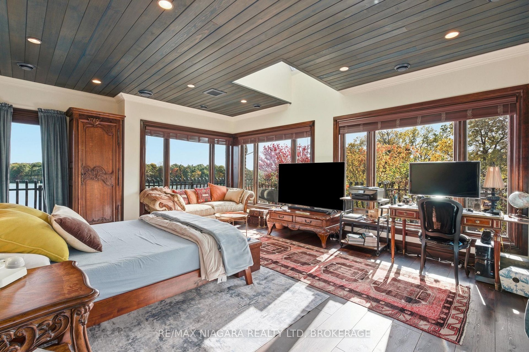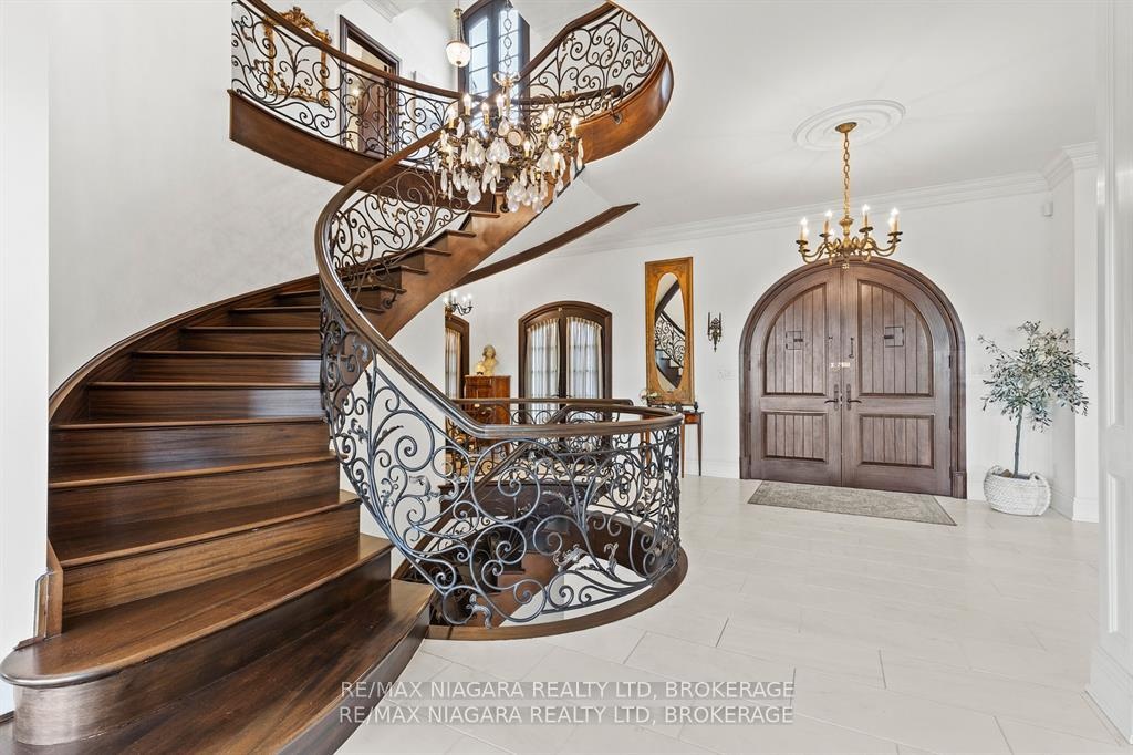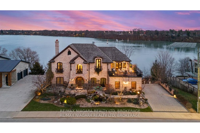 Pristine waterfront living meets timeless European elegance. This extraordinary custom built two-story residence offers over 4500 sq ft of beautifully crafted living space, designed to capture panoramic views of Martindale Pond. Home to the prestigious Royal Canadian Henley Rowing Course. From its graceful archways and terracotta rooflines to its warm brick exterior and charming wrought-iron accents, this home exudes Mediterranean charm and architectural sophistication. Step inside and be greeted by sun-drenched interior, soaring ceilings, elegant tile, custom hardwood flooring and expansive windows that frame tranquil water views in nearly every room. The heart of the home features a grand spiral staircase spanning three floors and a gourmet chefs kitchen that flows into spacious open-concept living and dining areas. Multiple walkouts lead to peaceful terraces, private gardens, and an intimate outdoor living area where you can enjoy morning espresso or evening wine by the waters edge. The second floor has a 15ft x 18ft primary suite with 17ft x 8ft custom walk-in closet and 5-pc ensuite featuring floor to ceiling tiled glass shower and spa-like tub with double sinks. The large second bedroom also includes beautiful panoramic views of the pond. Make your way to the third bedroom with large windows overlooking the pond with access to a roof-top patio for relaxation. The lower level features an additional living space with second kitchen, two additional bedrooms, large laundry area and built-in sauna to keep the relaxation going. The backyard features a custom inground stone hot-tub with outdoor shower area for enjoying those Zen moments in life. With pond access, the water enjoyment is limitless. Whether you're savoring the peaceful ambiance, hosting unforgettable gatherings, or simply enjoying the beauty of nature from your own backyard oasis, this property offers a lifestyle of serenity and sophistication. Luxury Certified.