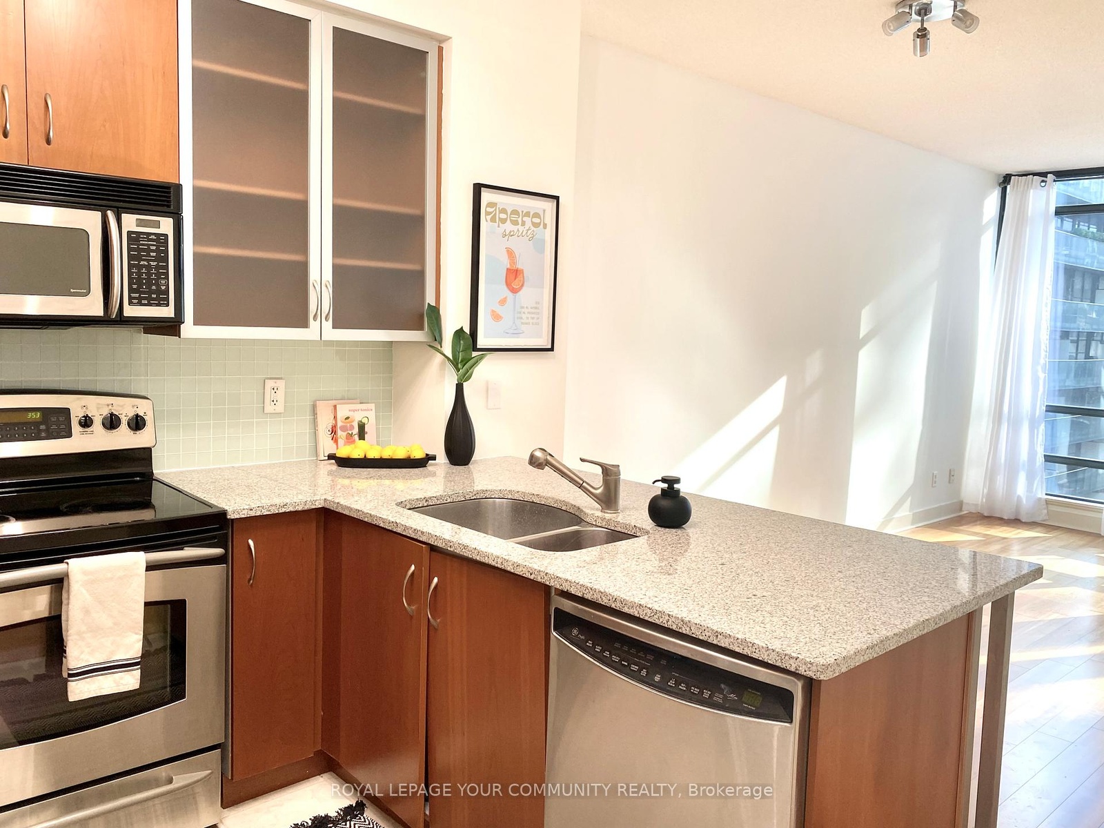 Welcome to The Hudson - Luxury Living in the Heart of King West! This bright and spacious1 bedroom suite at the corner of King and Spadina offers stylish urban living featuring an open concept kitchen with granite countertops and full-size stainless steel appliances and a spacious living area with walk-out to balcony. The primary bedroom includes a large closet and floor-to-ceiling windows. Enjoy top-tier building amenities including 24hr concierge, fitness centre, party room, and a beautifully landscaped courtyard with bbqs. Conveniently located steps to TTC, The Well, Financial District, shops, grocery, restaurants and cafes - everything you need at your doorstep! Parking, Locker, Heat, Hydro, Water & AC included in lease price.