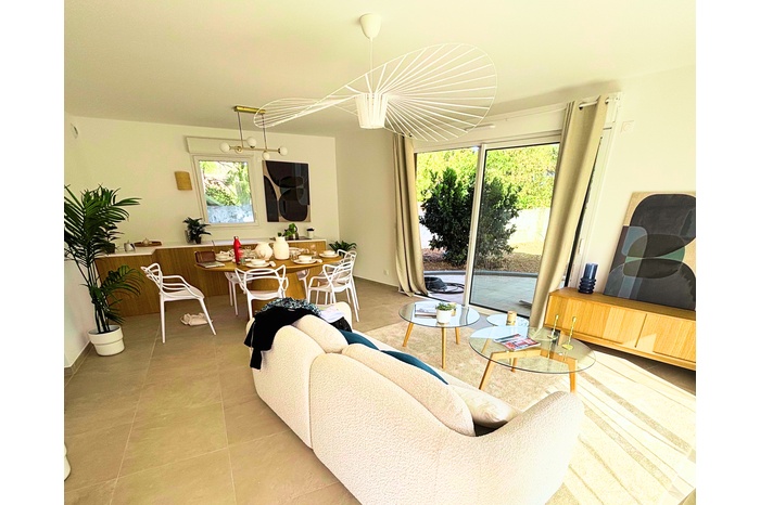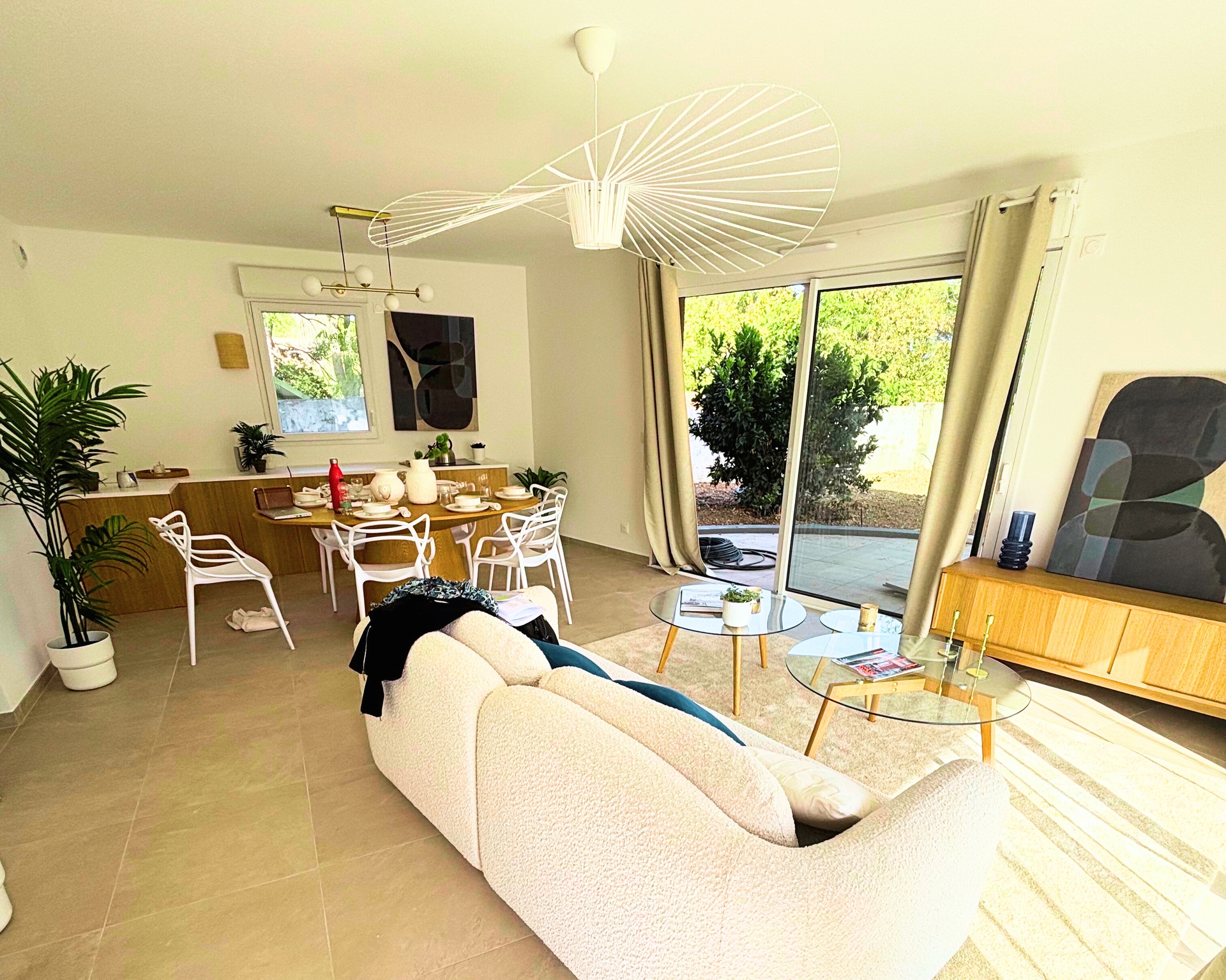 Son immense terrasse de 64 m2 et son jardin privatif de 284 m2 entourant l’appartement créent une atmosphère unique, parfaite pour recevoir ou profiter de la douceur méditerranéenne.