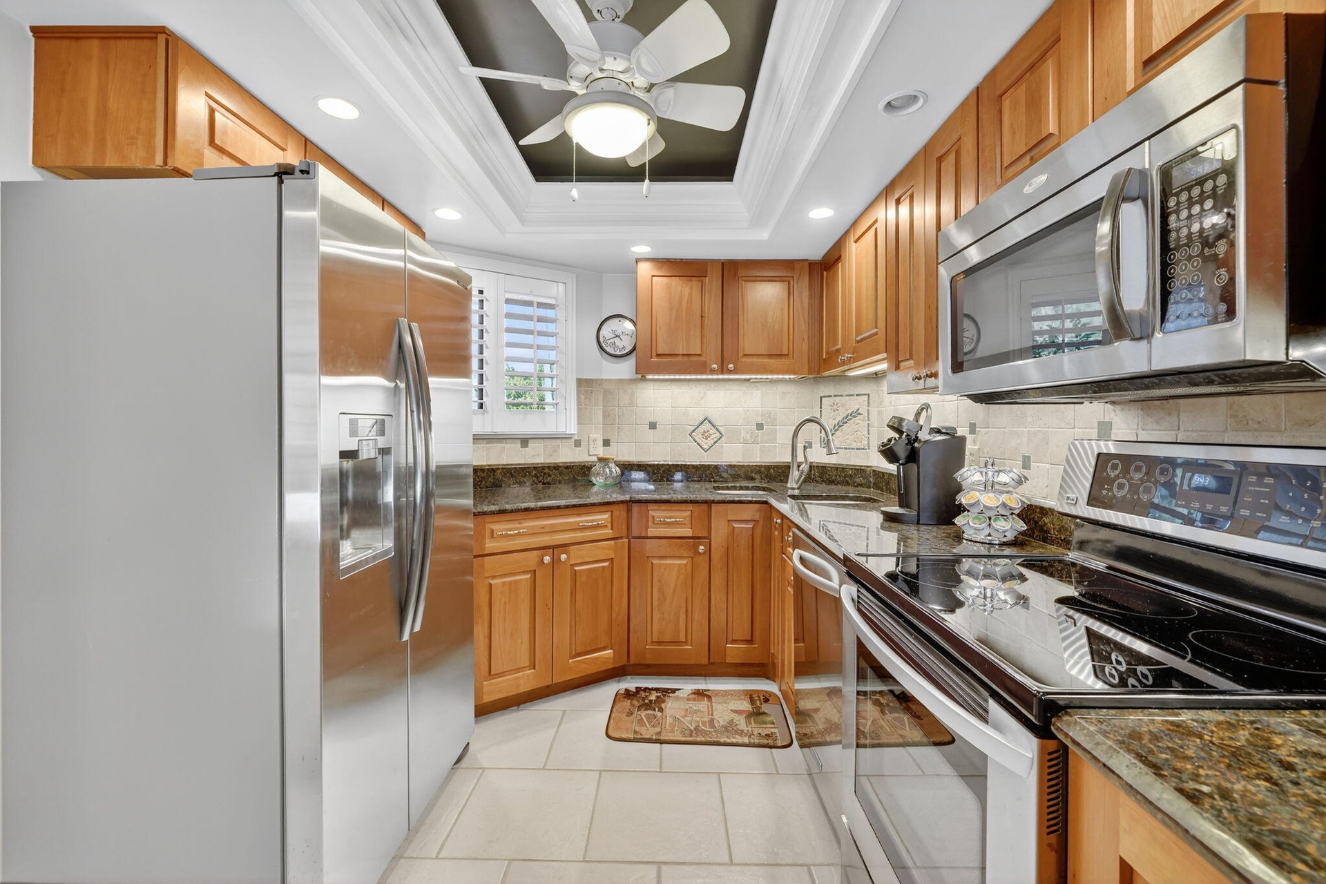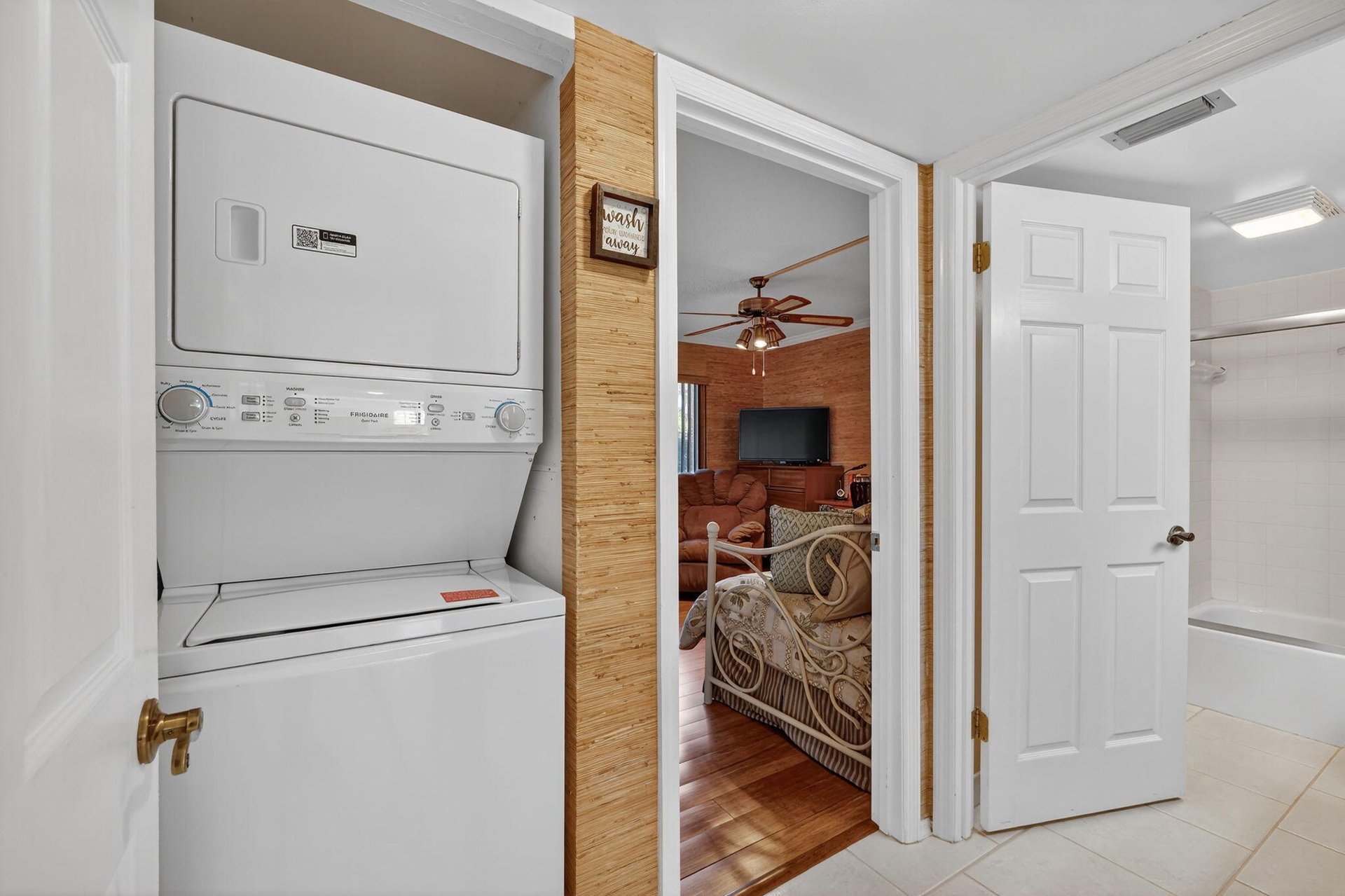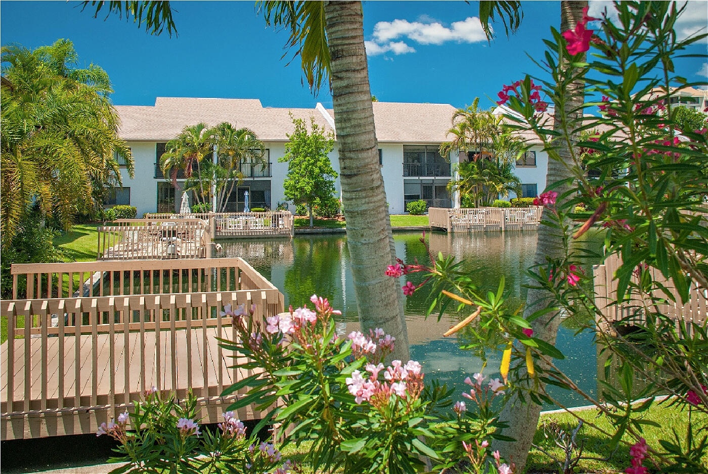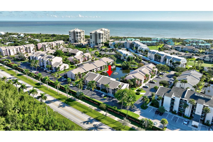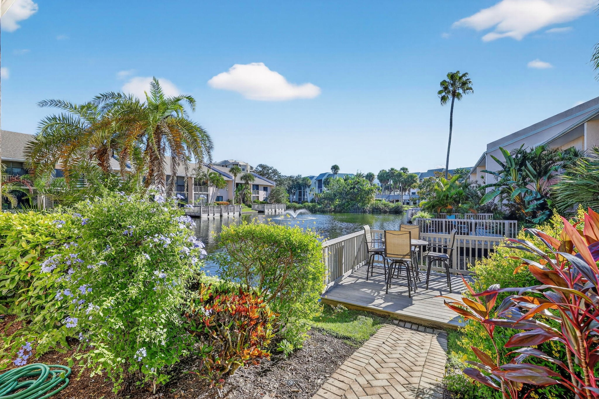 Beautiful 2 bedroom 2 bath ''Beachtree'' condo with a private deck on the pond! 1st floor unit, no stairs! Upgrades include granite kitchen & bath countertops, soft close drawers in kitchen, new washer/dryer, under cabinet lights, crown molding, impact windows! Beautiful deck on the pond great for sunbathing, dining & entertainment. Excellent location in Ocean Village near all amenities. Enjoy the best of Florida living at this beautiful oceanfront community offering 24 hr gated entry, 9 hole par 3 golf, tennis, pickleball, bocce ball, lush tropical landscaping, ocean front restaurant & tiki bar & 3500 feet oceanfront! This condo may be rented if owner so desires! Located on beautiful South Hutchisnon Island with 21 miles of uncrowded & unspoiled beaches. Measurements approximate.