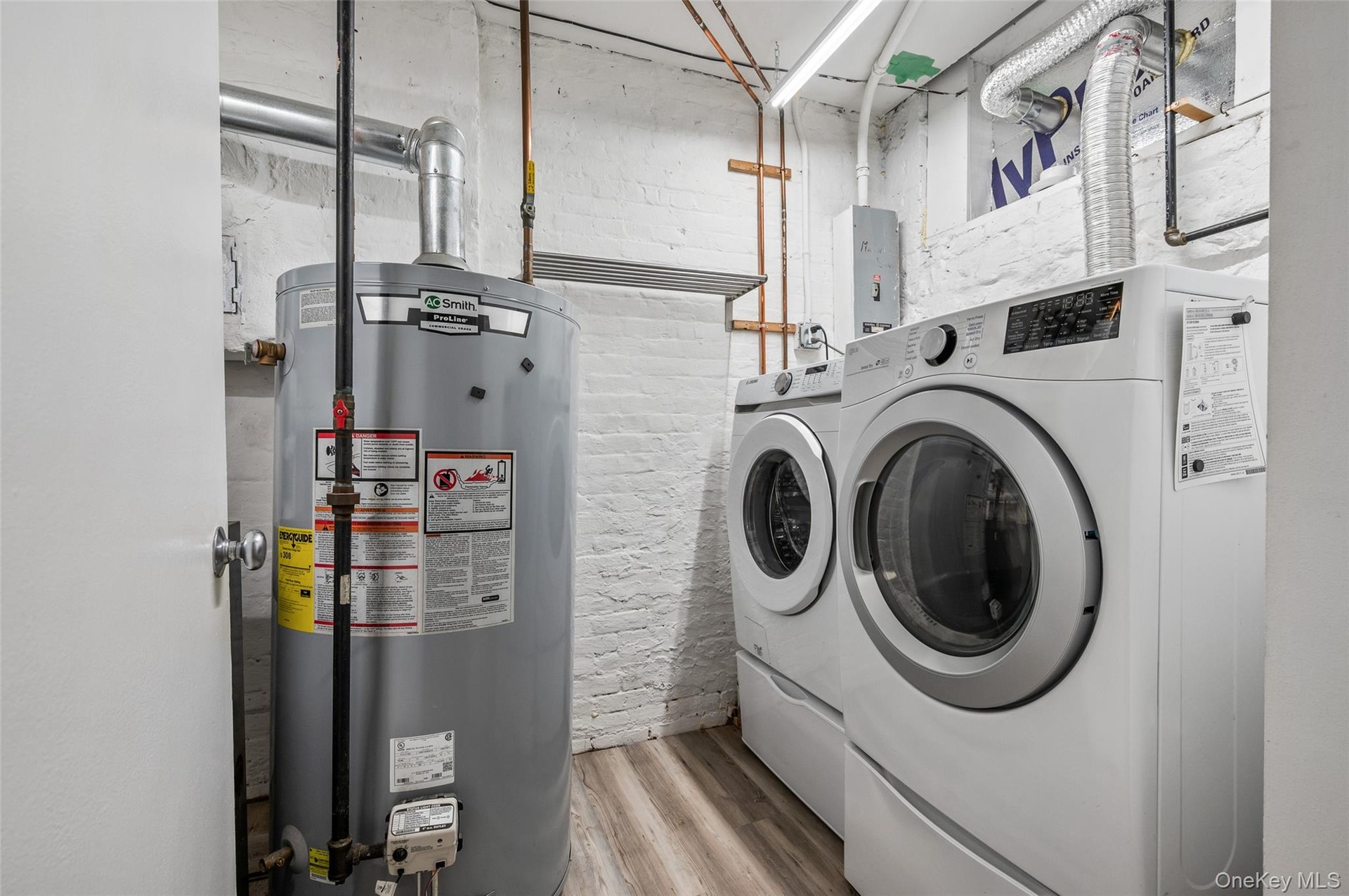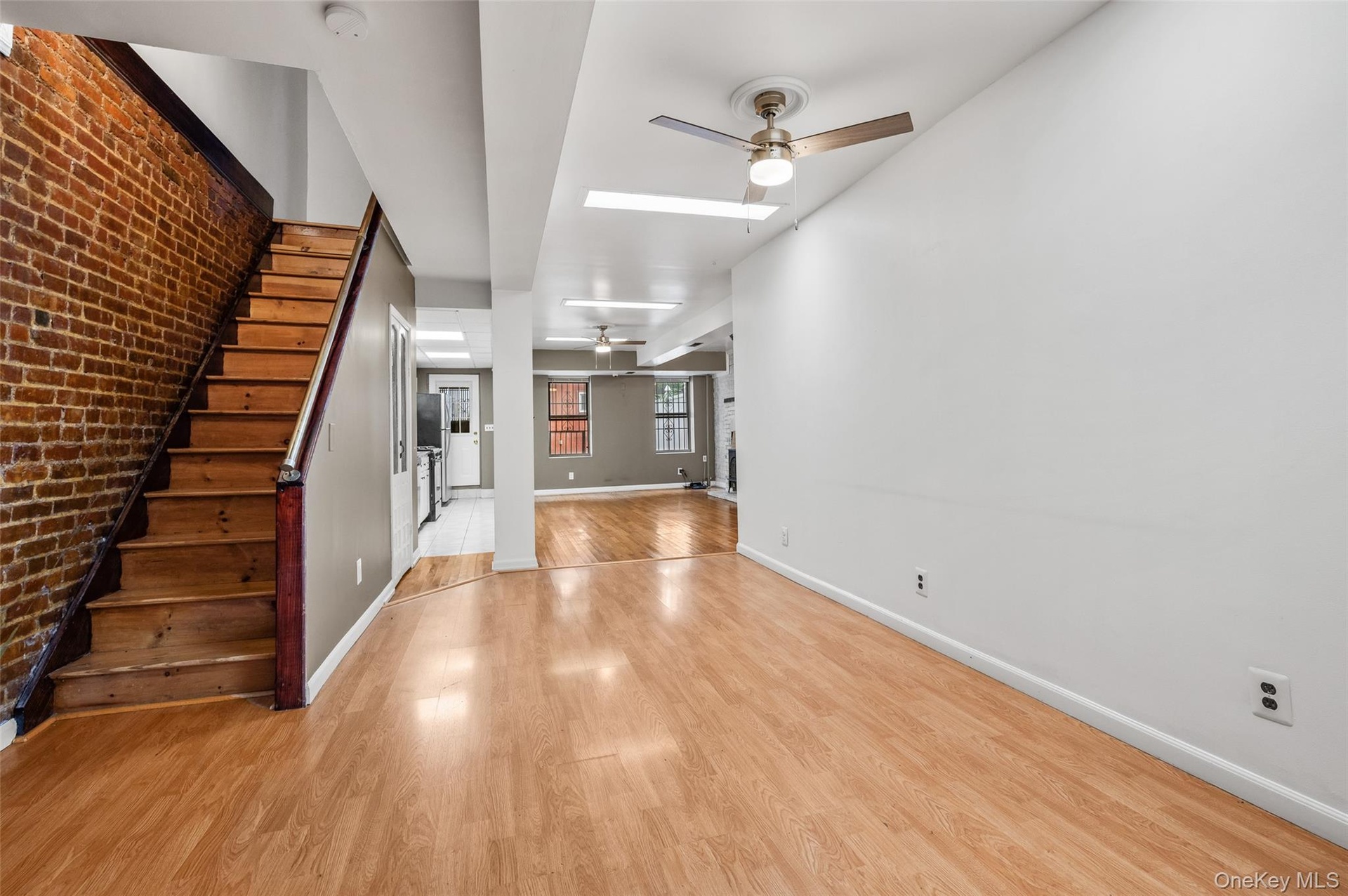 The owner’s duplex spans the garden and parlor levels, offering a spacious, open-plan layout that balances original character with everyday functionality. The garden level includes a renovated kitchen with stainless-steel appliances, tiled backsplash, and abundant cabinetry, seamlessly flowing into a large living and dining area with exposed brick and a decorative fireplace. This level also features a newly renovated full bath and a dedicated laundry room with new washer/dryer and updated mechanicals. Upstairs, three well-proportioned bedrooms and another full bath provide comfort and flexibility for everyday use — whether as sleeping quarters, a home office, or guest space.