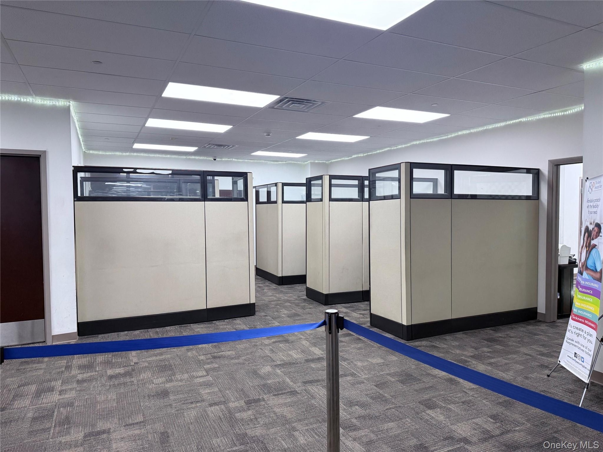Designed with a masonry and glass façade that projects strength and professionalism, the building features a flexible single-story layout perfectly suited for financial, medical, or professional use. The interior currently includes a welcoming lobby and teller area, multiple private offices, a conference room, IT center, secure vault, and administrative workspace — all easily adaptable for single-tenant or multi-tenant occupancy. Exterior features include an asphalt parking lot with 20 spots, providing ample customer and staff parking, high-impact signage, and excellent curb appeal along Route 59.