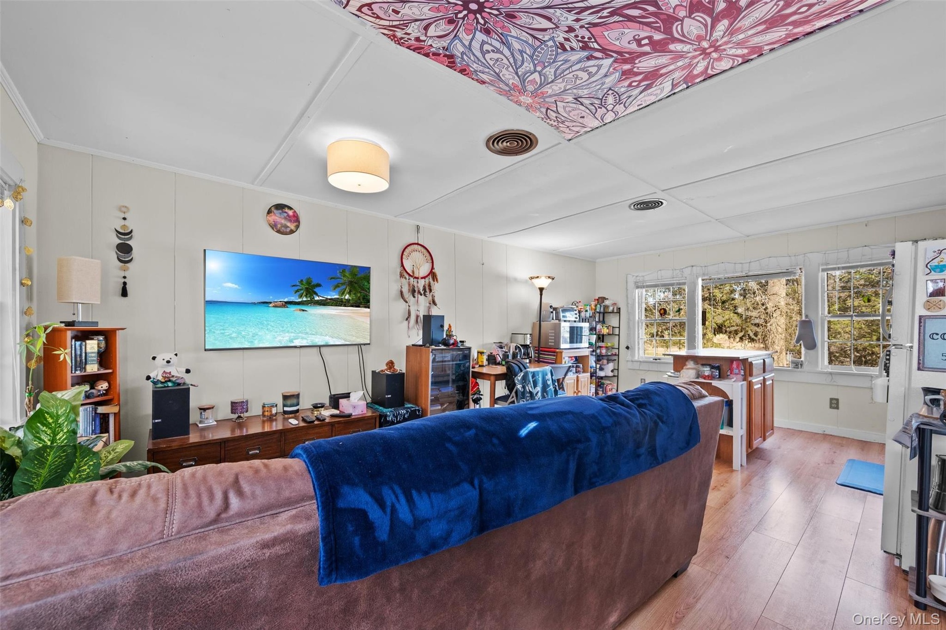 - Living area with visible vents and light wood-style floors