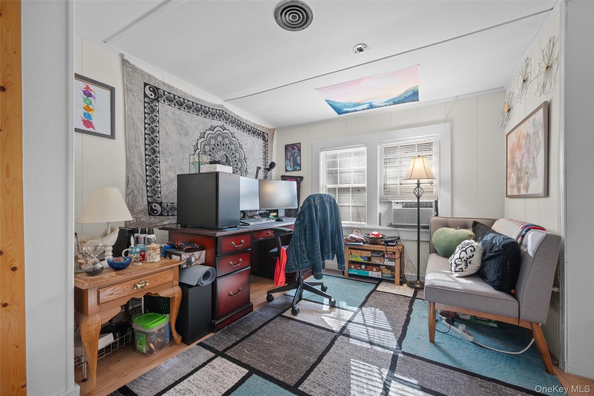 - Office with wood finished floors and visible vents